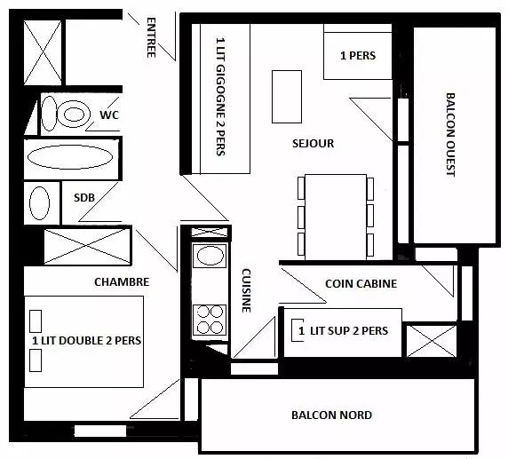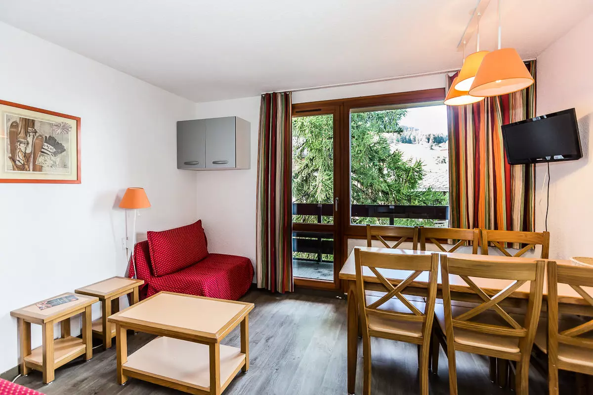 2-room apartment + cabin for 6 people of approximately 36 m², double exposure north and west with 2 balconies, resort and valley side on the 3rd floor, unobstructed view, recently renovated and classified 2 stars at the prefectural level and 4 "Paradiski crystals".