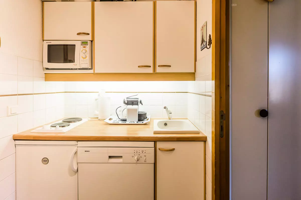 Kitchen in the entrance: 2 electric hotplates, dishwasher, refrigerator, microwave, NESPRESSO coffee machine, toaster, kettle.