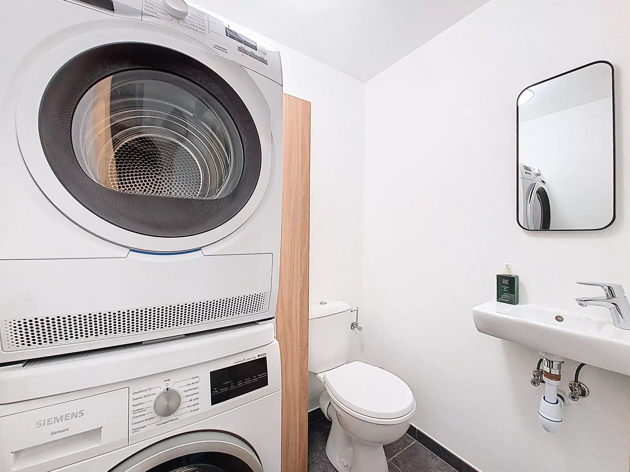 - A separate toilet with washbasin and serving as a laundry area with washing machine and dryer.