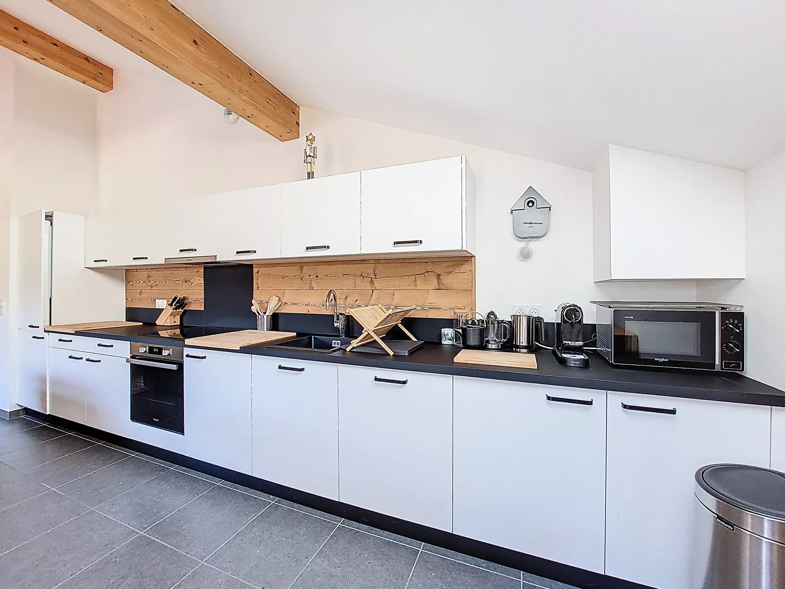 - A fully equipped kitchen with induction hob, dishwasher, fridge and freezer, single sink, extractor fan, oven,