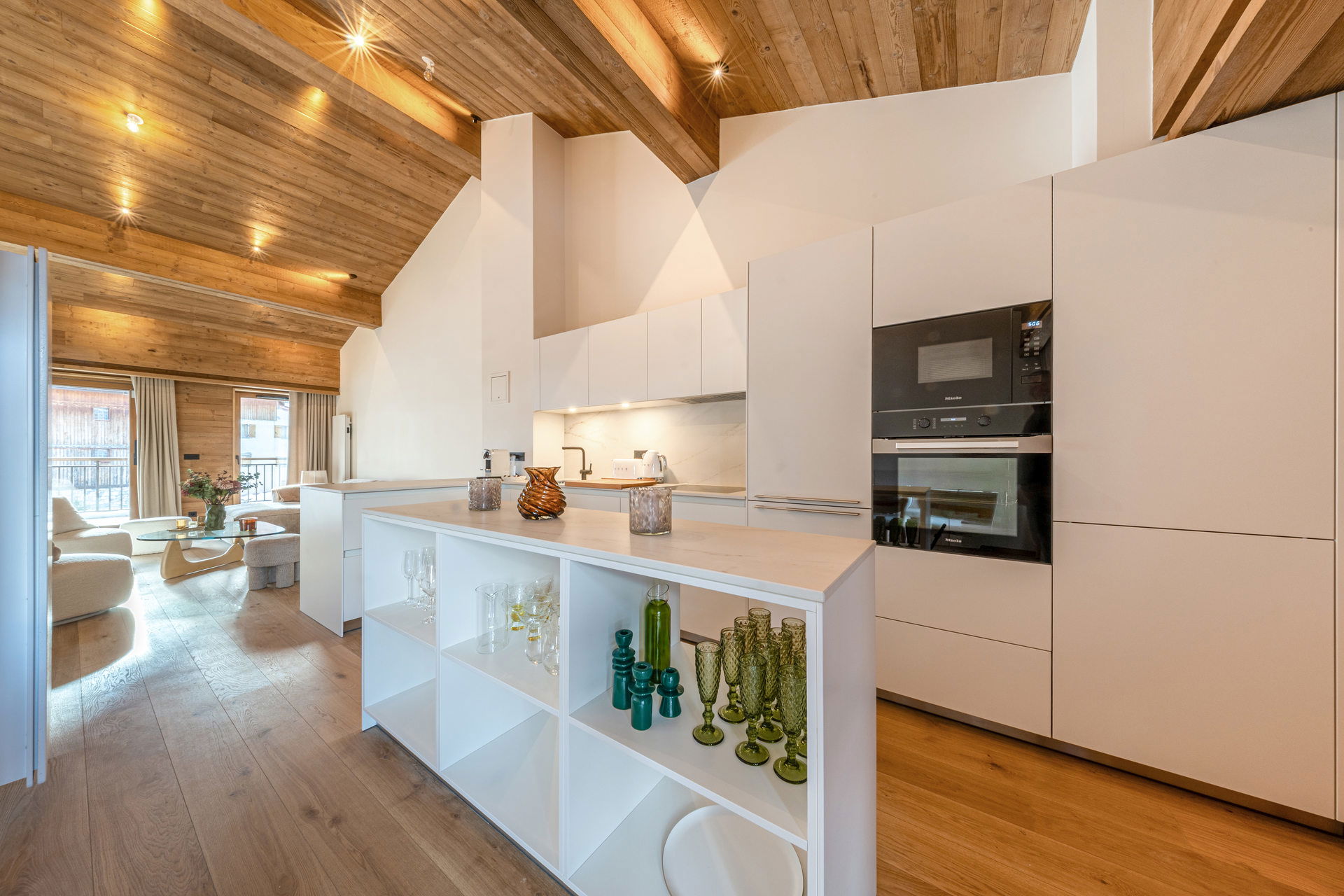 Equipped with dishwasher, oven, induction hob ,hood, microwave oven, fridge with freezer