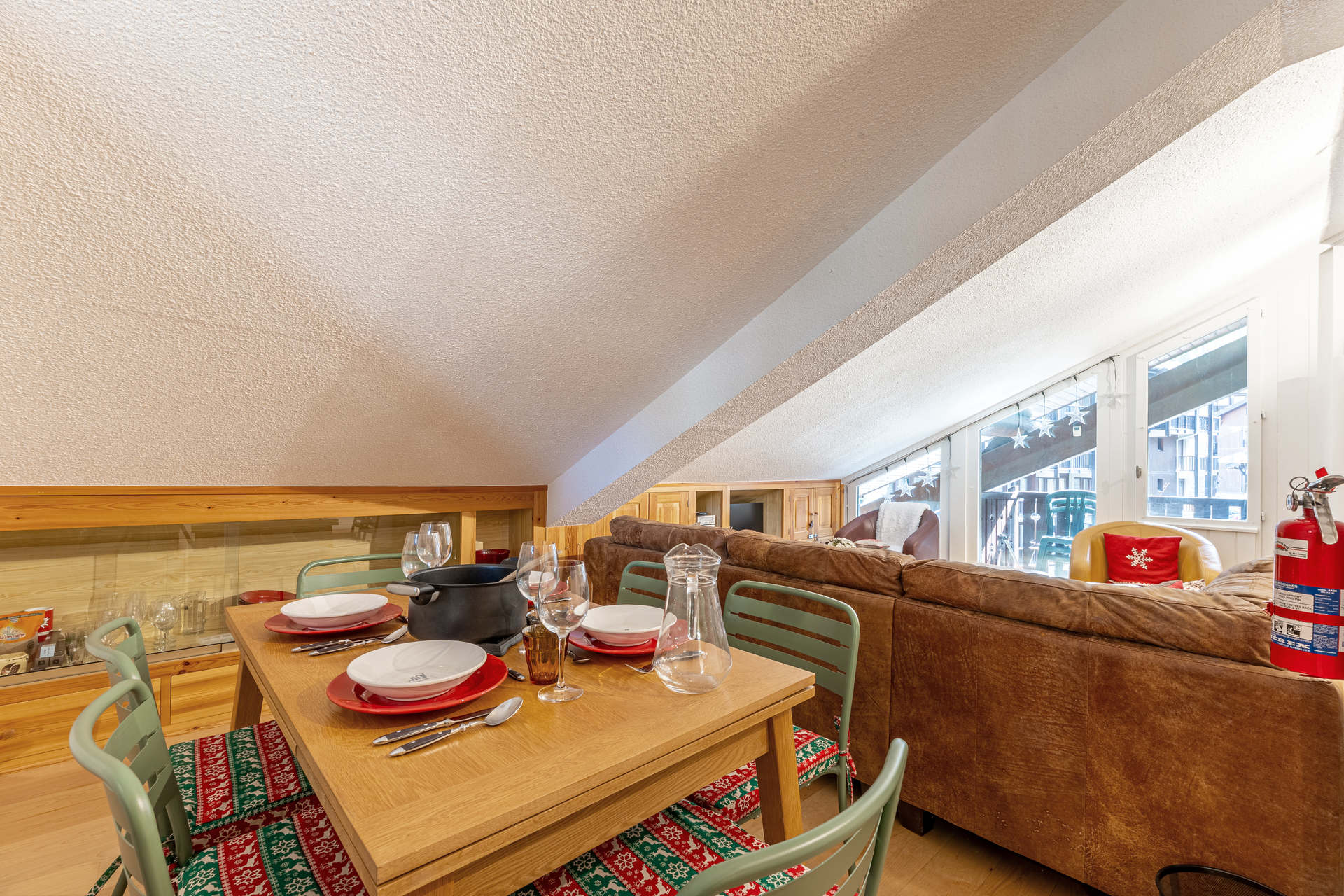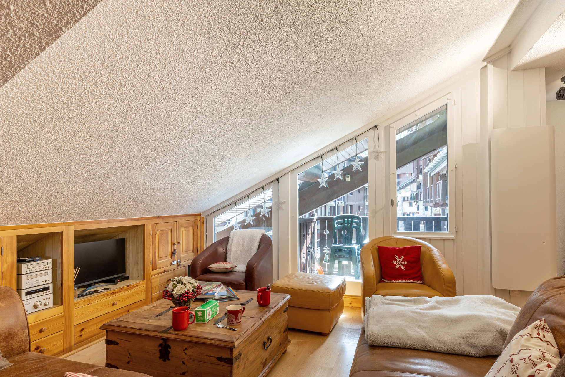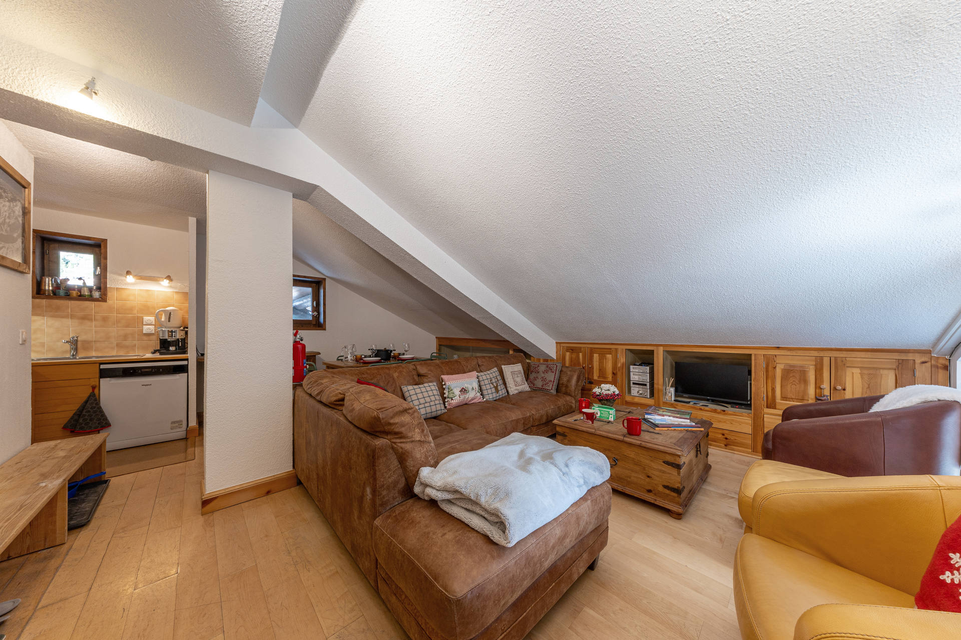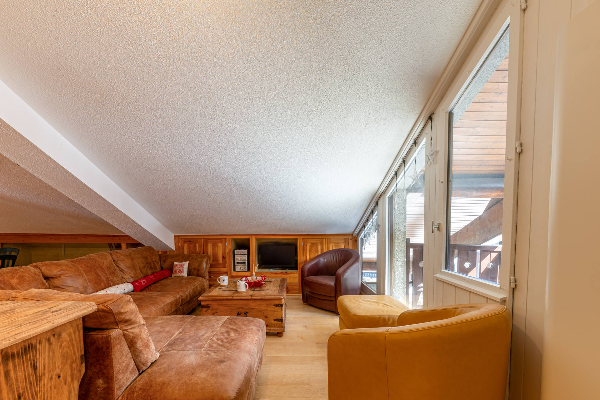 Living-room under roof with chalet atmosphere