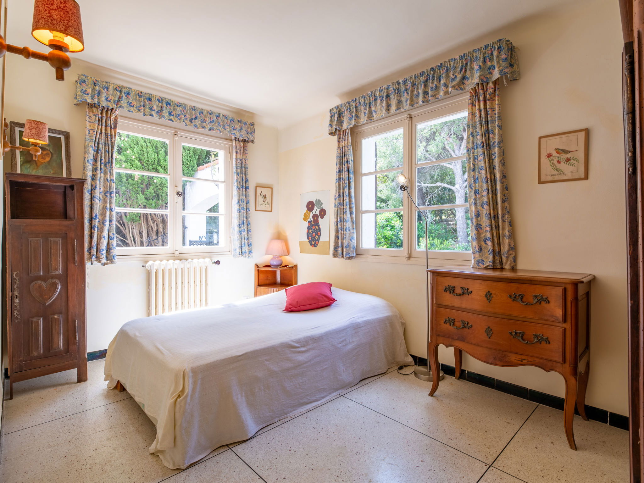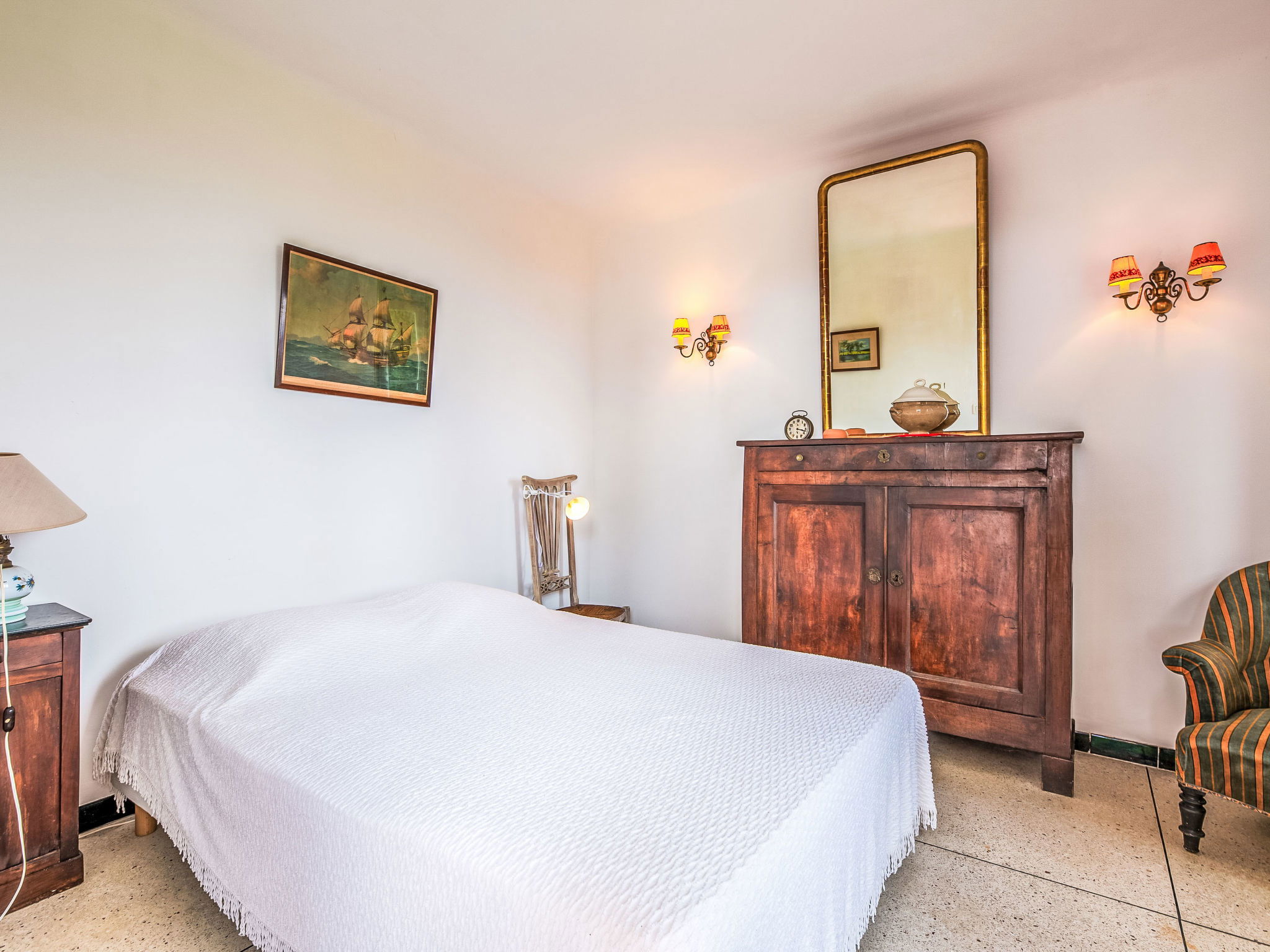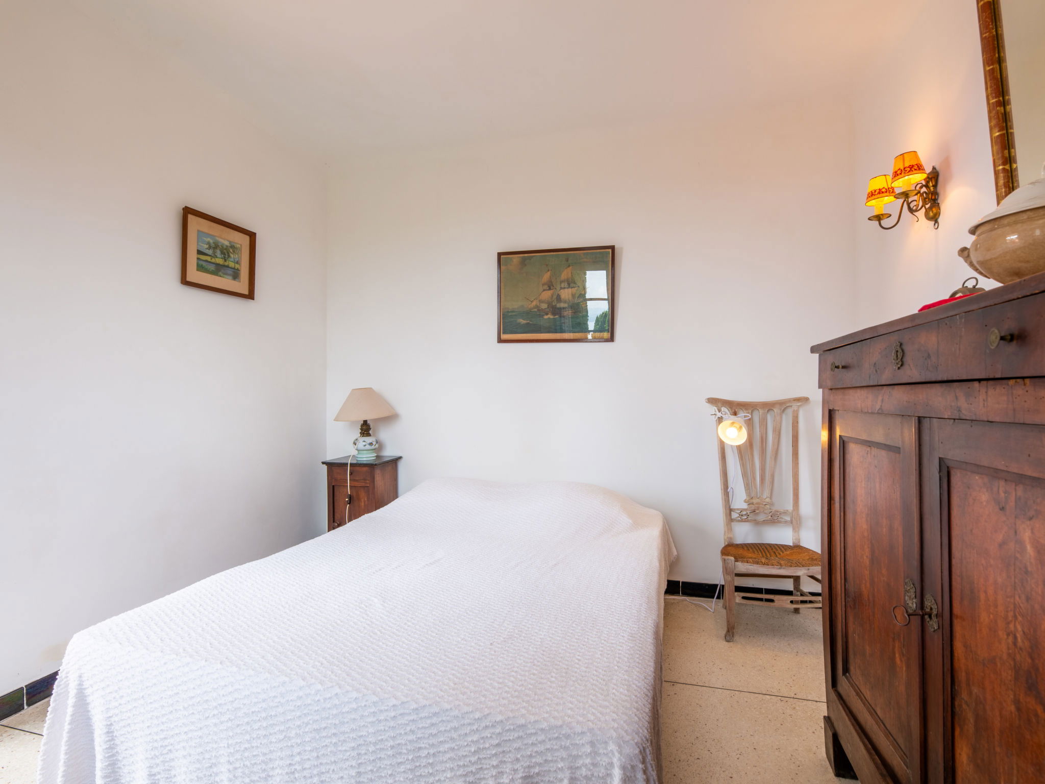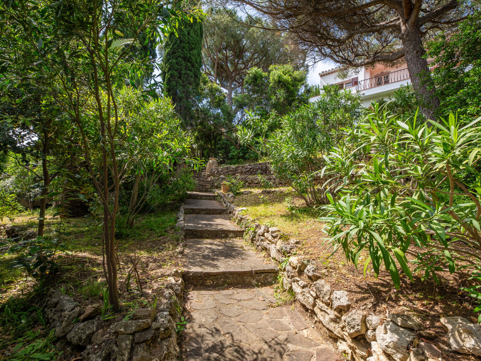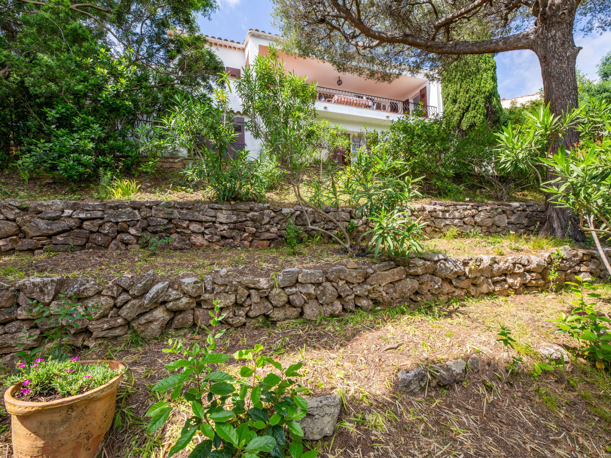 Single-family house "Maïca", built in 1958. On the outskirts, 4 km from the centre of St Aygulf, in a sunny, elevated position, 400 m from the sea, 400 m from the beach. Private: natural state property 698 m2 (fenced), terraced garden (fenced), parking on the premises. Grocery 1 km, shopping centre 8.8 km, restaurant 300 m, bakery 500 m, 15 minute walk to the centre, bus stop "Le Corsaire" 2.8 km, railway station "Fréjus" 9 km, sandy beach "la Gaillarde" 2.6 km, rocky beach 300 m, park "Areca" 4 km, diving center 4 km, thermal baths "Thalasso des Issambres" 4 km, lake St Cassien 46 km. Sports harbour 300 m, golf course (18 hole) 14 km, sailing school 8 km, tennis 3 km, minigolf 13 km, riding stable 7 km, sports centre 4 km, walking paths from the house 3 km. Nearby attractions: Aqualand, Luna Park 8 km, Fréjus 8 km, Saint Raphaël 10 km, Saint Tropez 30 km, Cannes 50 km. Well-known ski regions can easily be reached: Auron 150 km, Isola 2000 150 km. Well-known lakes can easily be reached: Lac de St Cassien 45 km, Lac du Du Verdon 90 km. Hiking paths: Petites Maures 2 km, Estérel 20 km, Sentier du Litoral 1 km. Please note: car recommended. Part of the house is closed and unoccupied. The keys‘ handover takes place by the agency in Saint Aygulf, 4 km.
