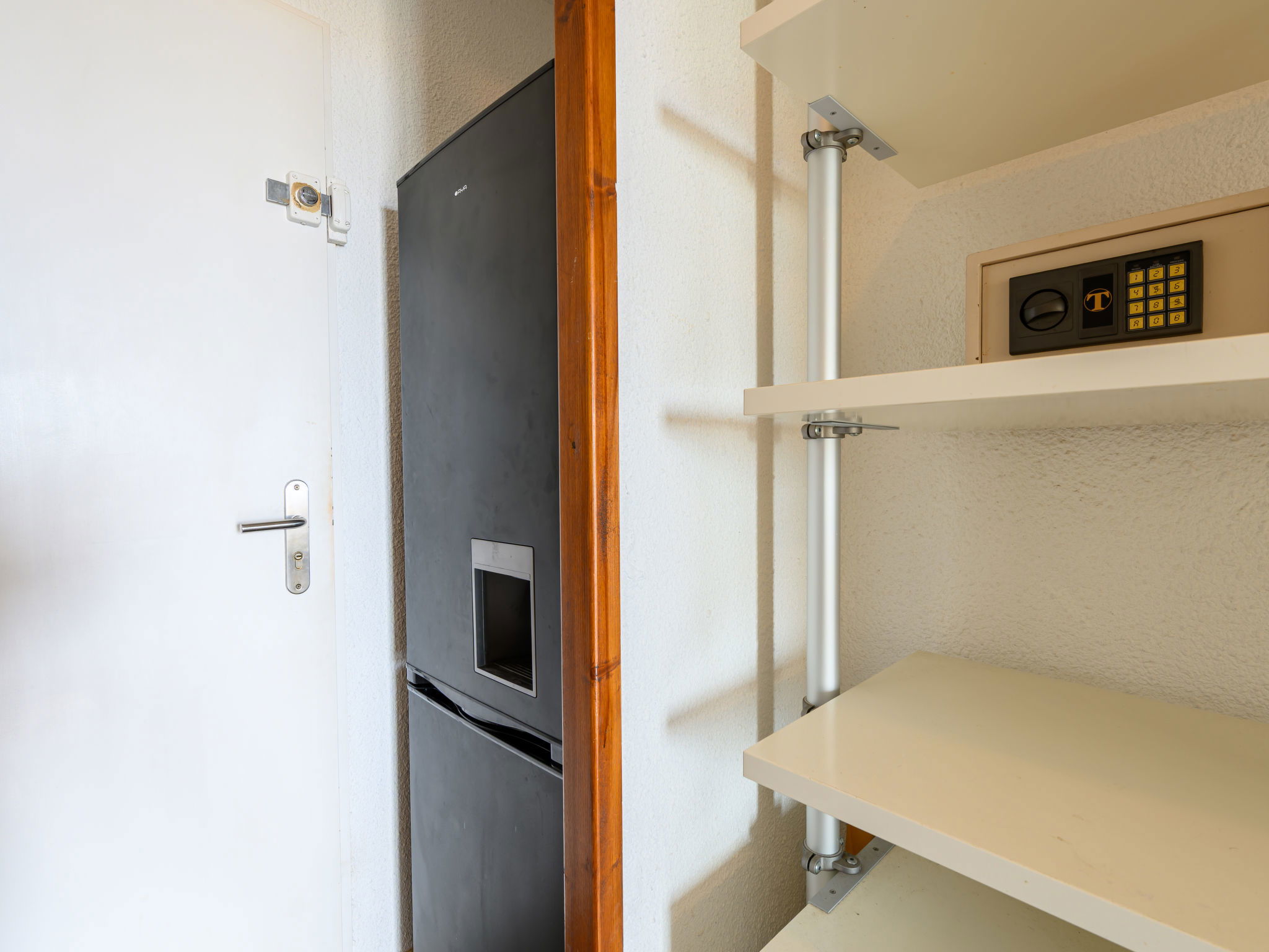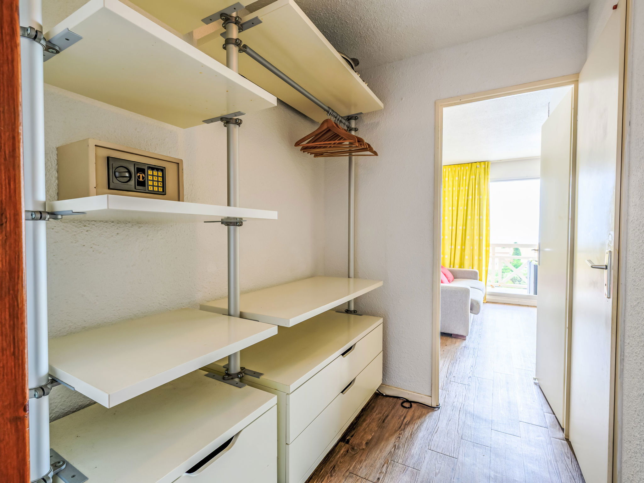 2-room apartment 24 m2 on 2nd floor. Comfortable and beautiful furnishings: living/dining room with 1 double sofabed (1 x 140 cm, length 190 cm), TV (flat screen). Exit to the balcony. 1 room with 1 french bed (1 x 140 cm, length 190 cm). Kitchenette (2 hot plates, toaster, kettle, freezer, electric coffee machine, Capsules for coffee machine (SENSEO) extra, combination microwave). Shower/WC. Electric heating. Balcony 7 m2, south facing position. Balcony furniture. Very beautiful view of the sea and the swimming pool. Facilities: washing machine. Internet (WiFi, extra). Parking space n 241. Please note: maximum 1 pet/ dog allowed. Smoke alarm. Offer by a private individual according to Art. 155, IV of CGI.