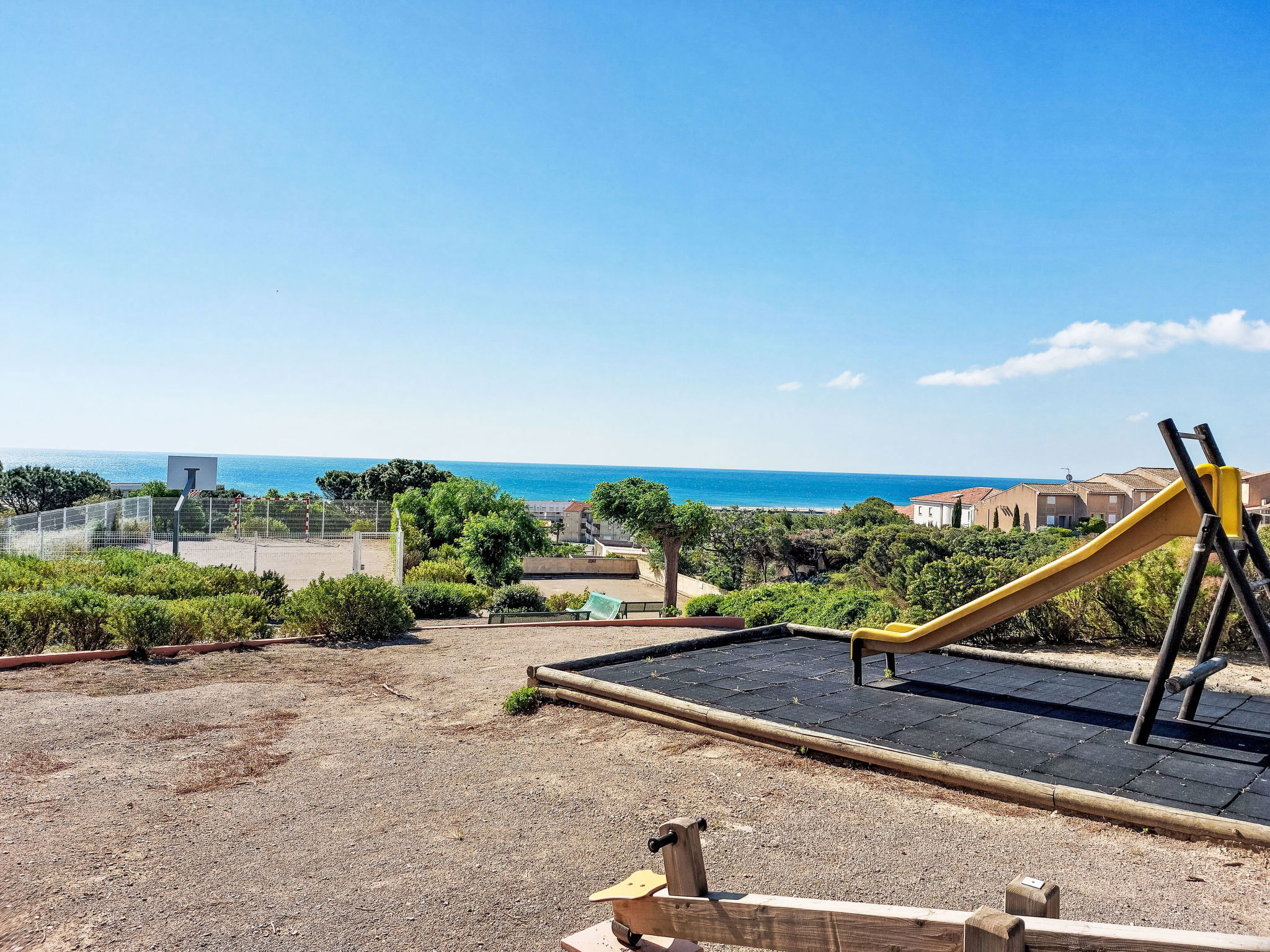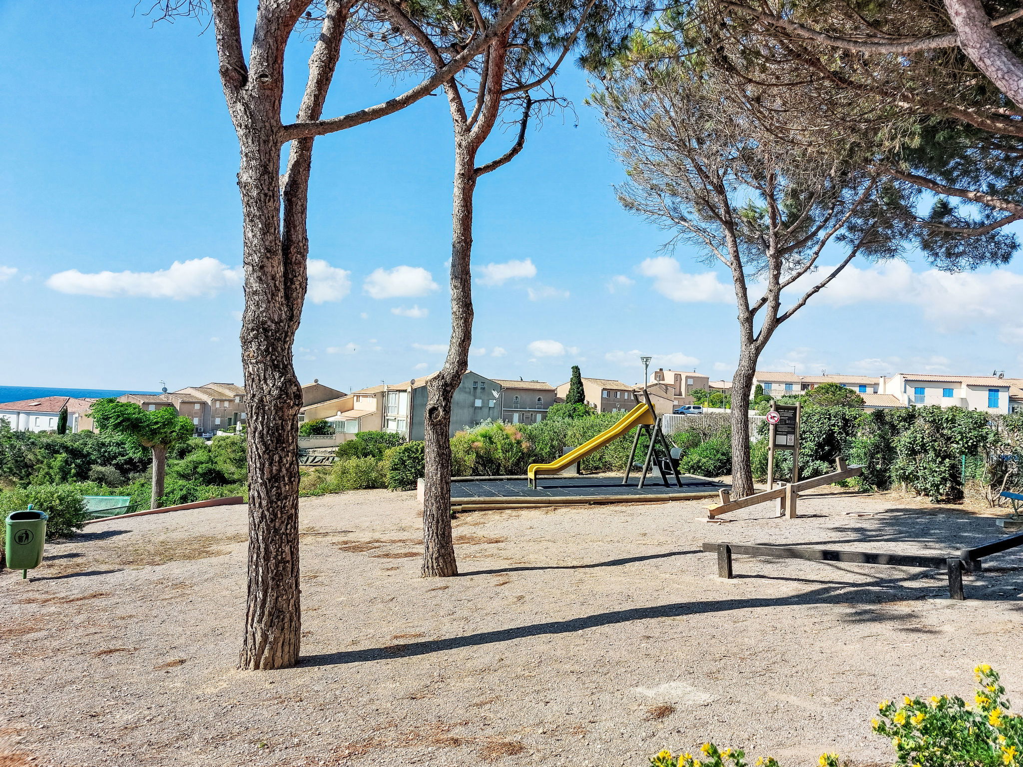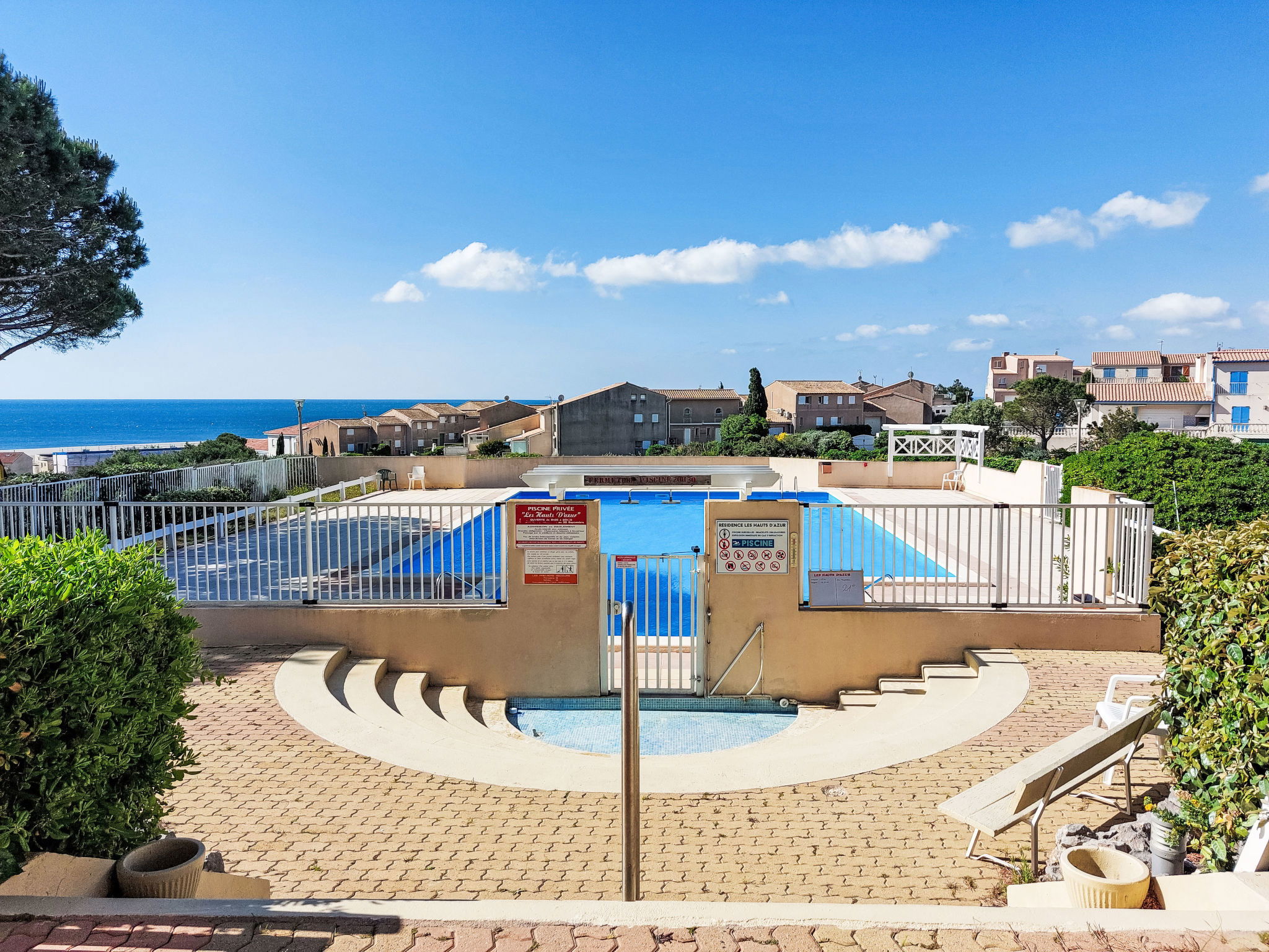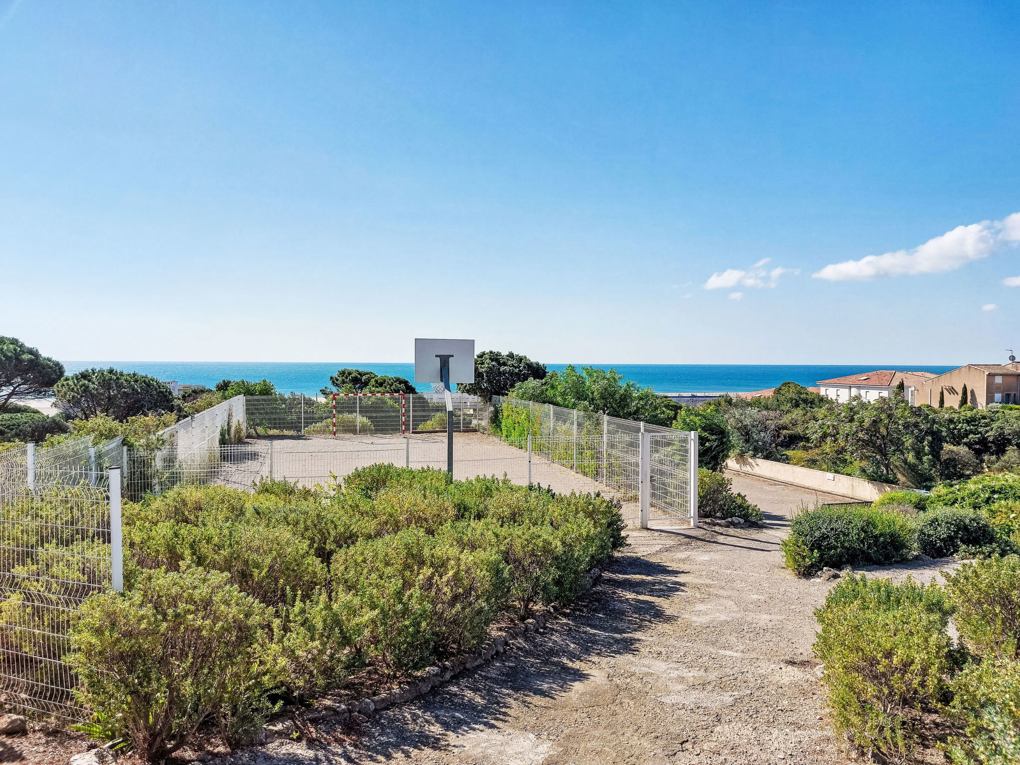 Residence "Les Hauts d'Azur". Above St Pierre Sur Mer, 800 m from the centre, 900 m from the sea, 800 m from the beach. For shared use: swimming pool (14 x 10 m, depth 120 - 150 cm, seasonal availability: 01.Jun. - 30.Sep.). Basketball, boccia, children's playground. Shop, grocery, restaurant 800 m, bus stop 200 m, sandy beach "St Pierre La Mer" 900 m, diving center 2 km. Sports harbour 2 km, sailing school 2 km. Nearby attractions: Cité de Carcassonne 77 km, Réserve Africaine de Sigean 37 km, Espace Balnéoludique de Gruissan 11 km.