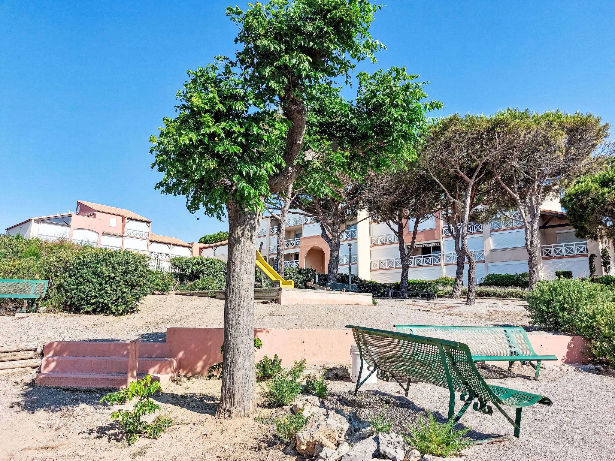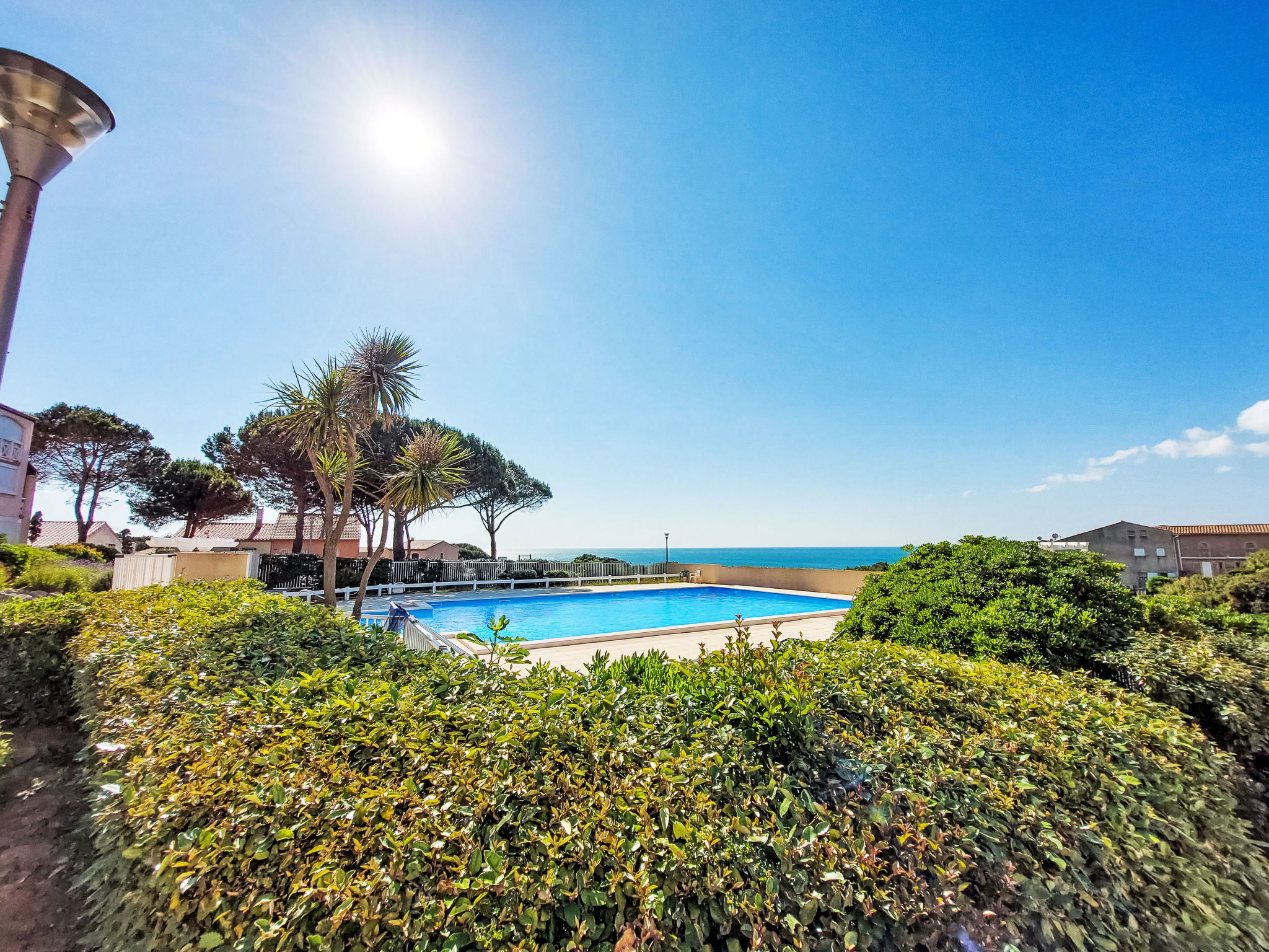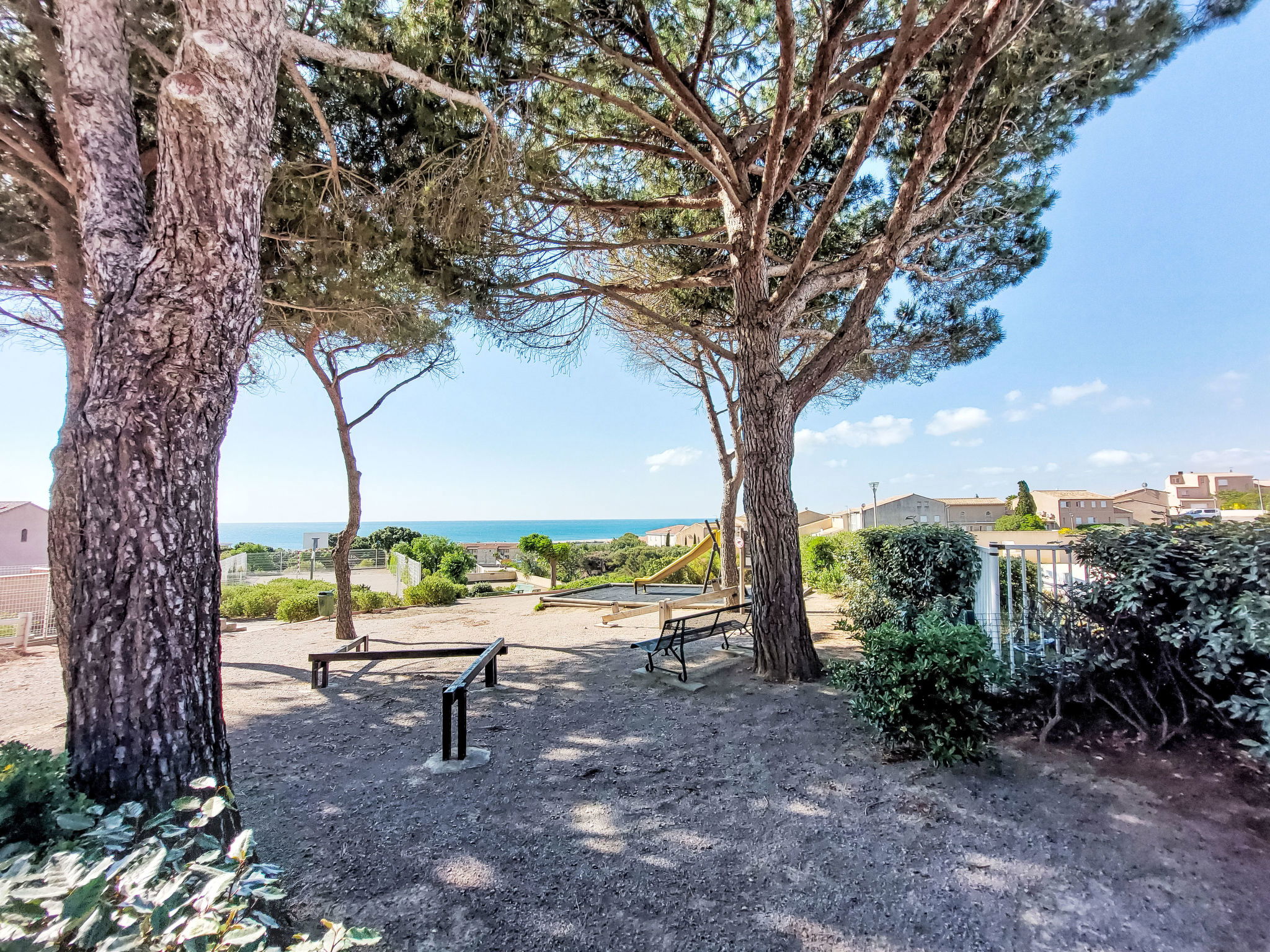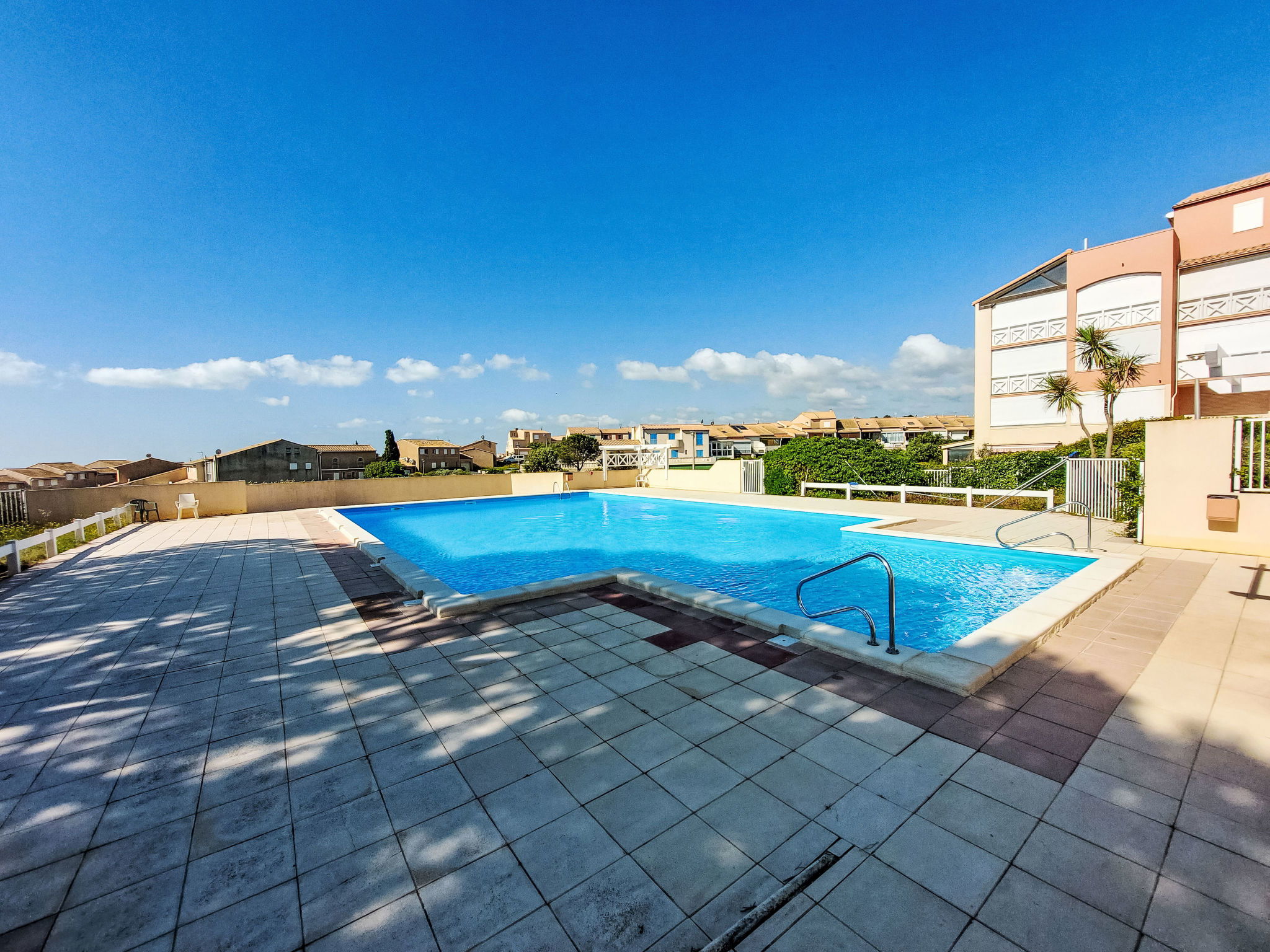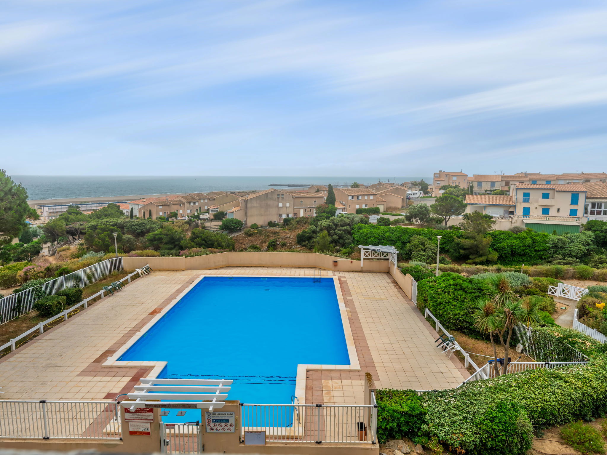 Residence "Les Hauts d'Azur". Above St Pierre Sur Mer, 800 m from the centre, 900 m from the sea, 800 m from the beach. For shared use: swimming pool (14 x 10 m, depth 120 - 150 cm, seasonal availability: 01.Jun. - 30.Sep.). Basketball, boccia, children's playground. Shop, grocery, restaurant 800 m, bus stop 200 m, sandy beach "St Pierre La Mer" 900 m, diving center 2 km. Sports harbour 2 km, sailing school 2 km. Nearby attractions: Cité de Carcassonne 77 km, Réserve Africaine de Sigean 37 km, Espace Balnéoludique de Gruissan 11 km.