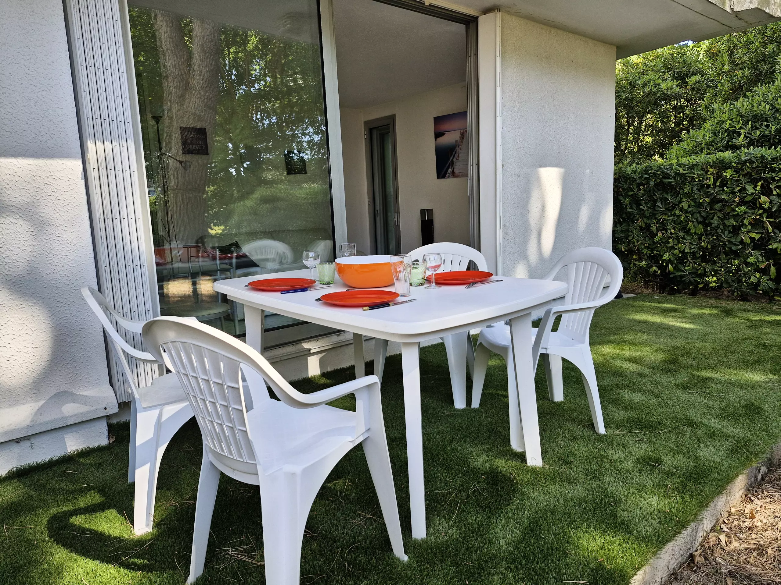 Discover this pleasant garden level apartment with terrace in a green setting, close to shops and beaches in the popular Couchant district. This modern, tastefully renovated accommodation has everything you need for a successful family vacation; the spacious living room with its kitchenette opens onto the terrace and garden; in the corner, a large master bedroom with en-suite bathroom and shower and separate toilet. Private parking space.
