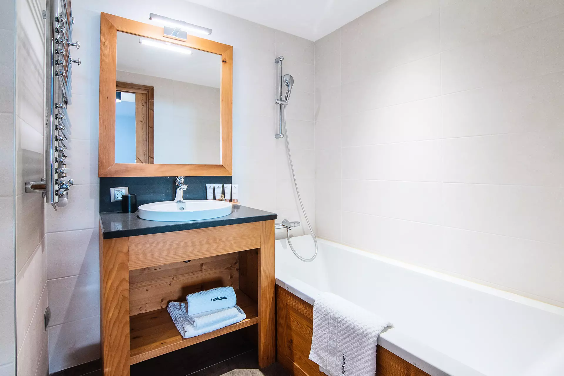 Chalet LANDENOIRE will charm you with its proximity to the slopes (50m from the cable car) and its luxury. Ideal for your get-togethers with friends, the chalet can accommodate 8 people in its 110 m² (1,170 sq ft) and offers après-ski wellness with its private sauna and jacuzzi on the terrace. Arrivals are on Sundays.