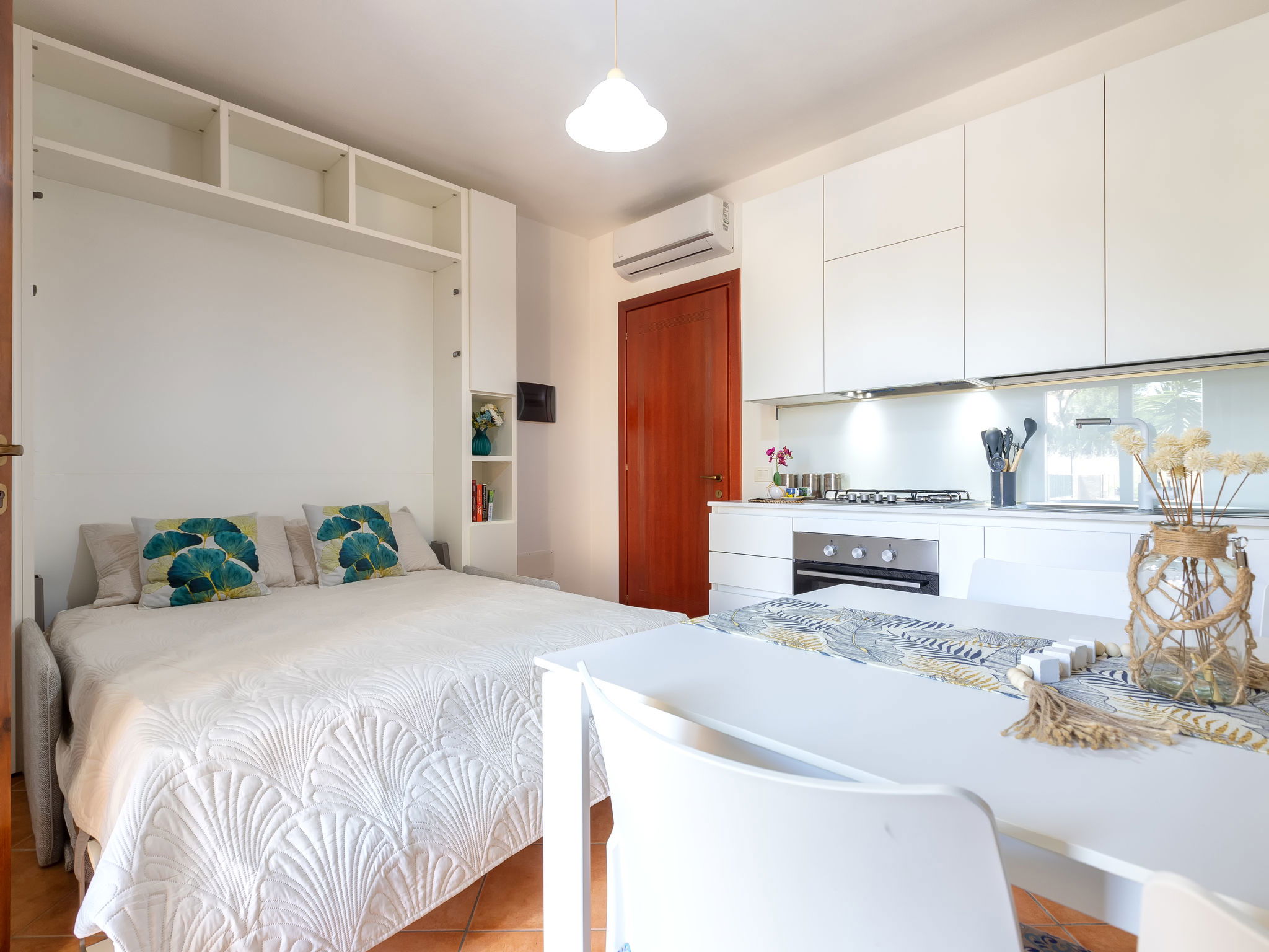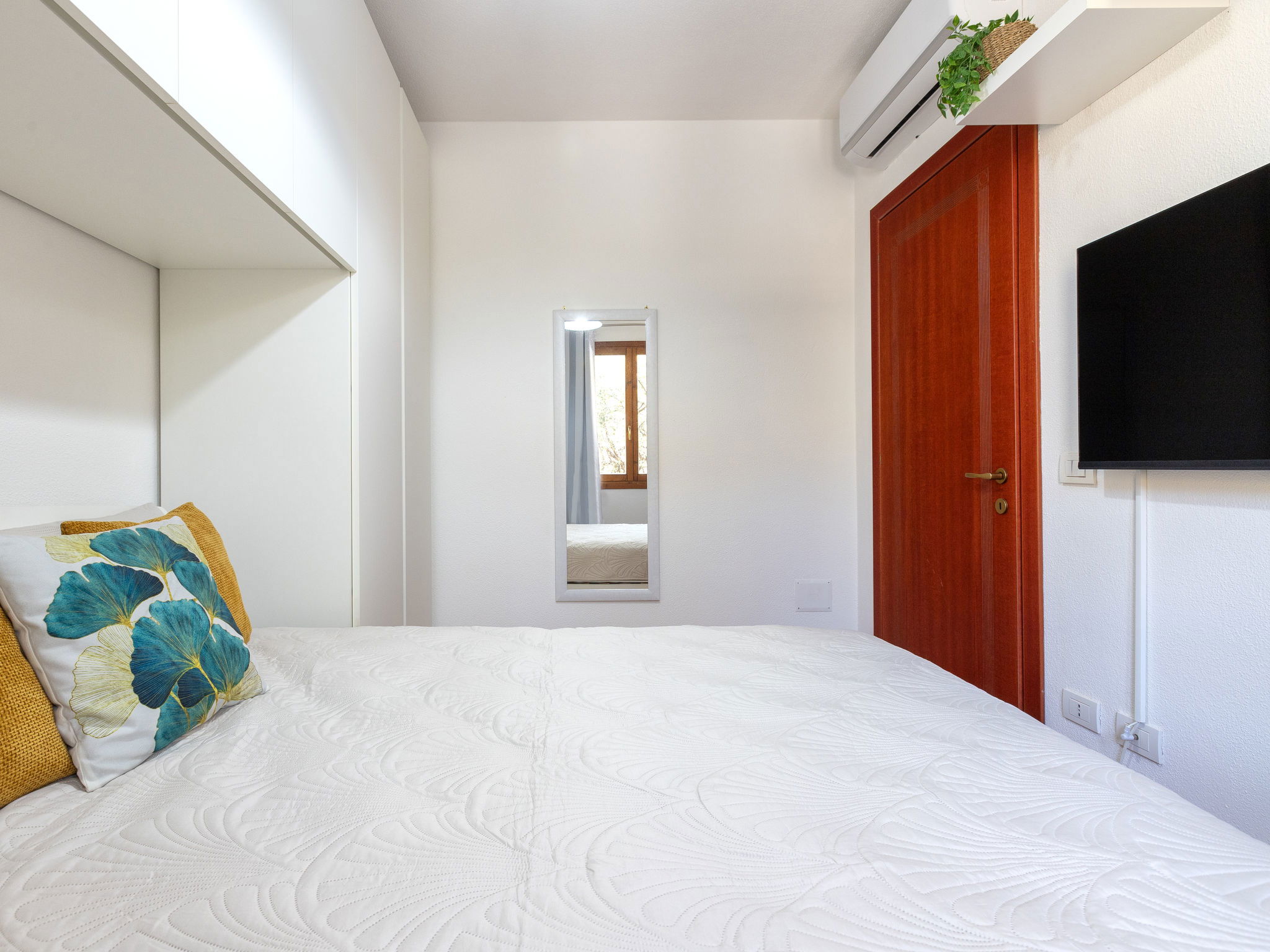"Sa Domu De Tara", 2-room apartment 47 m2, on the upper ground floor. Bright, beautiful and modern furnishings: living/dining room with 1 double wall-trunk bed and TV (flat screen). Exit to the garden. 1 double bedroom. Kitchenette (oven, 4 gas rings, toaster, kettle, microwave). Bath/shower/bidet/WC. Gas heating, air-conditioning. Large garden 50 m2. Terrace furniture. Beautiful view of the town. Facilities: washing machine, iron, hair dryer. Parking (1 car). Please note: suitable for families. Non-smokers only. Maximum 1 pet/ dog allowed. IT090047C2000T7166
