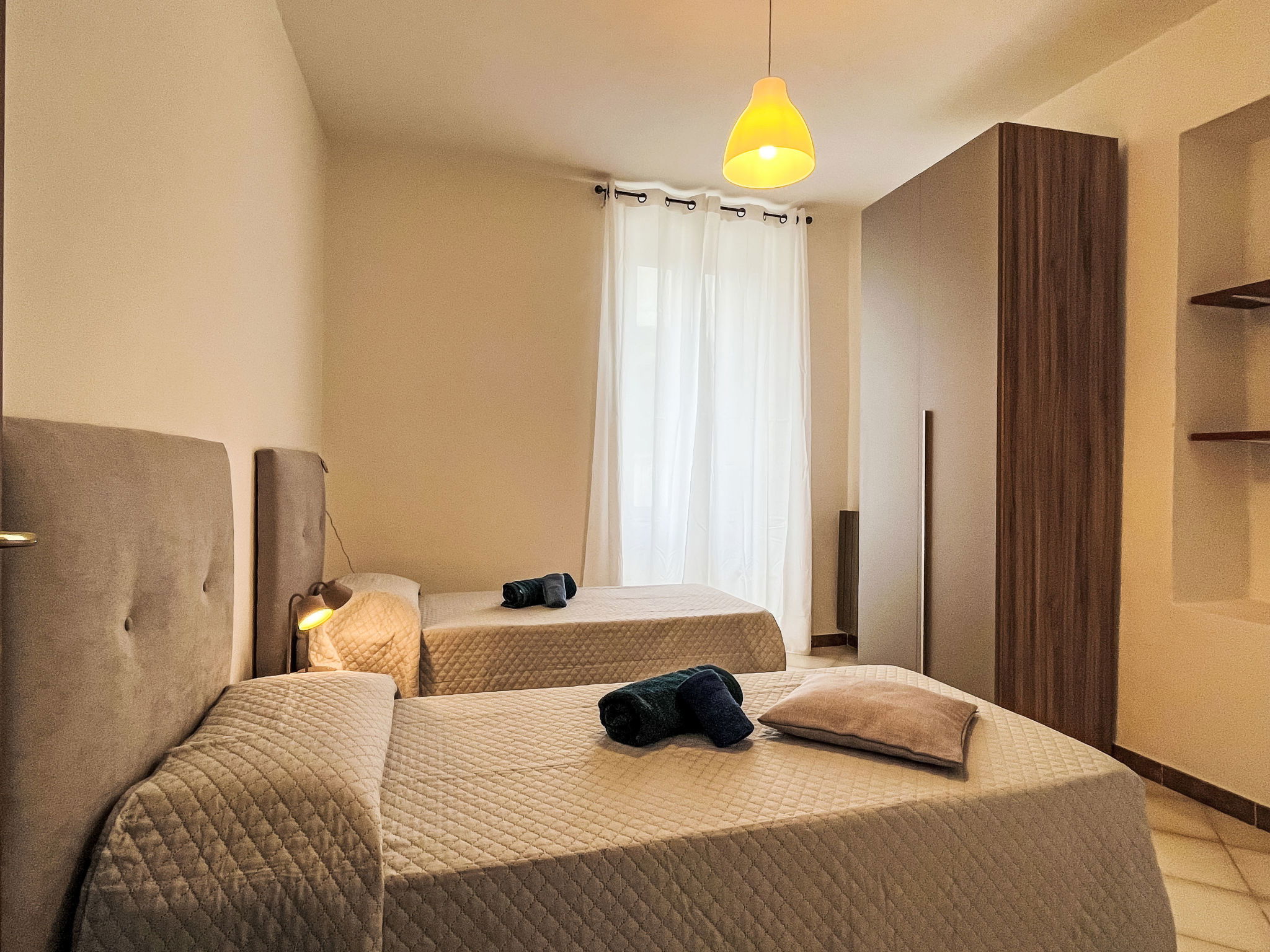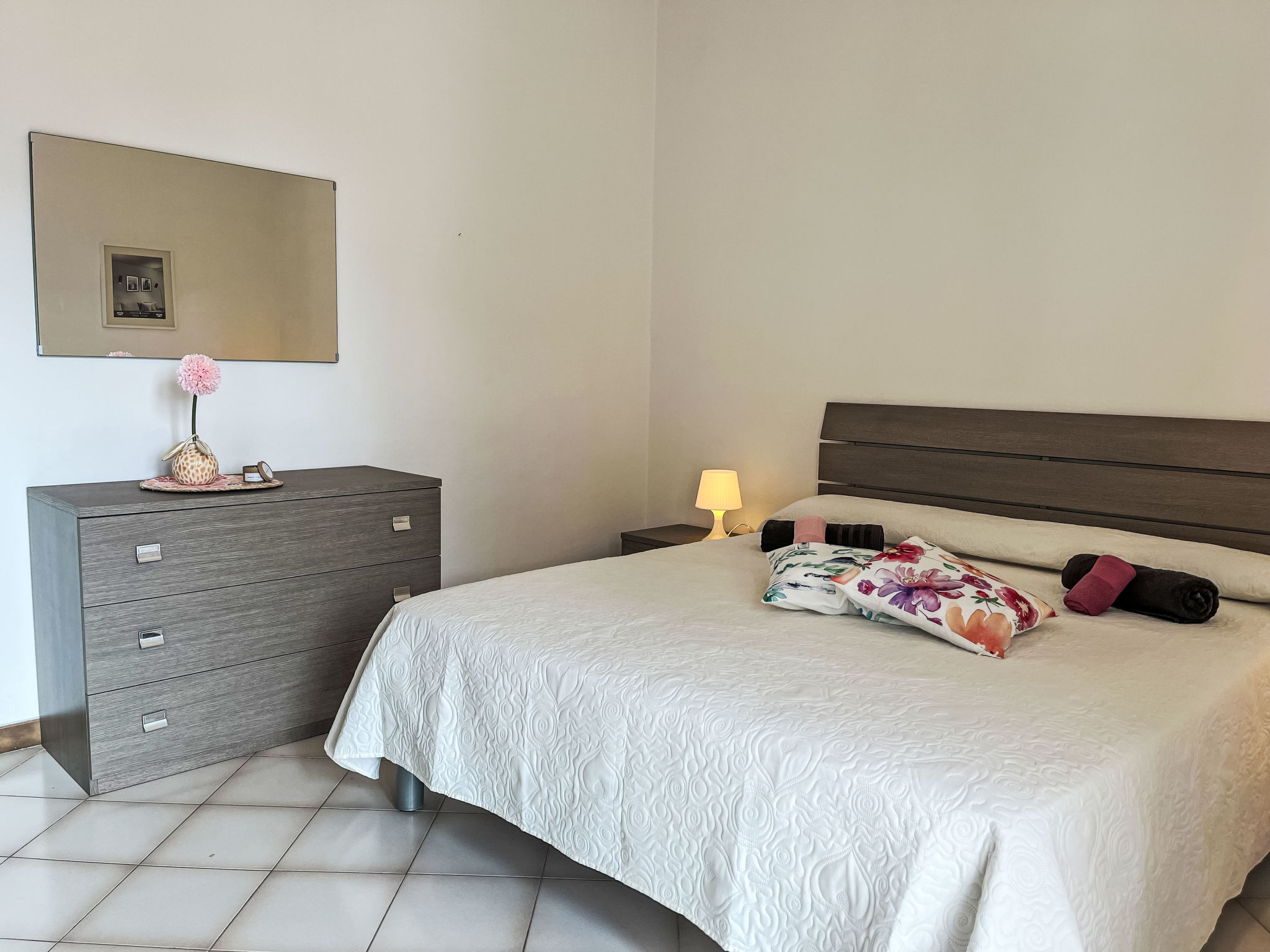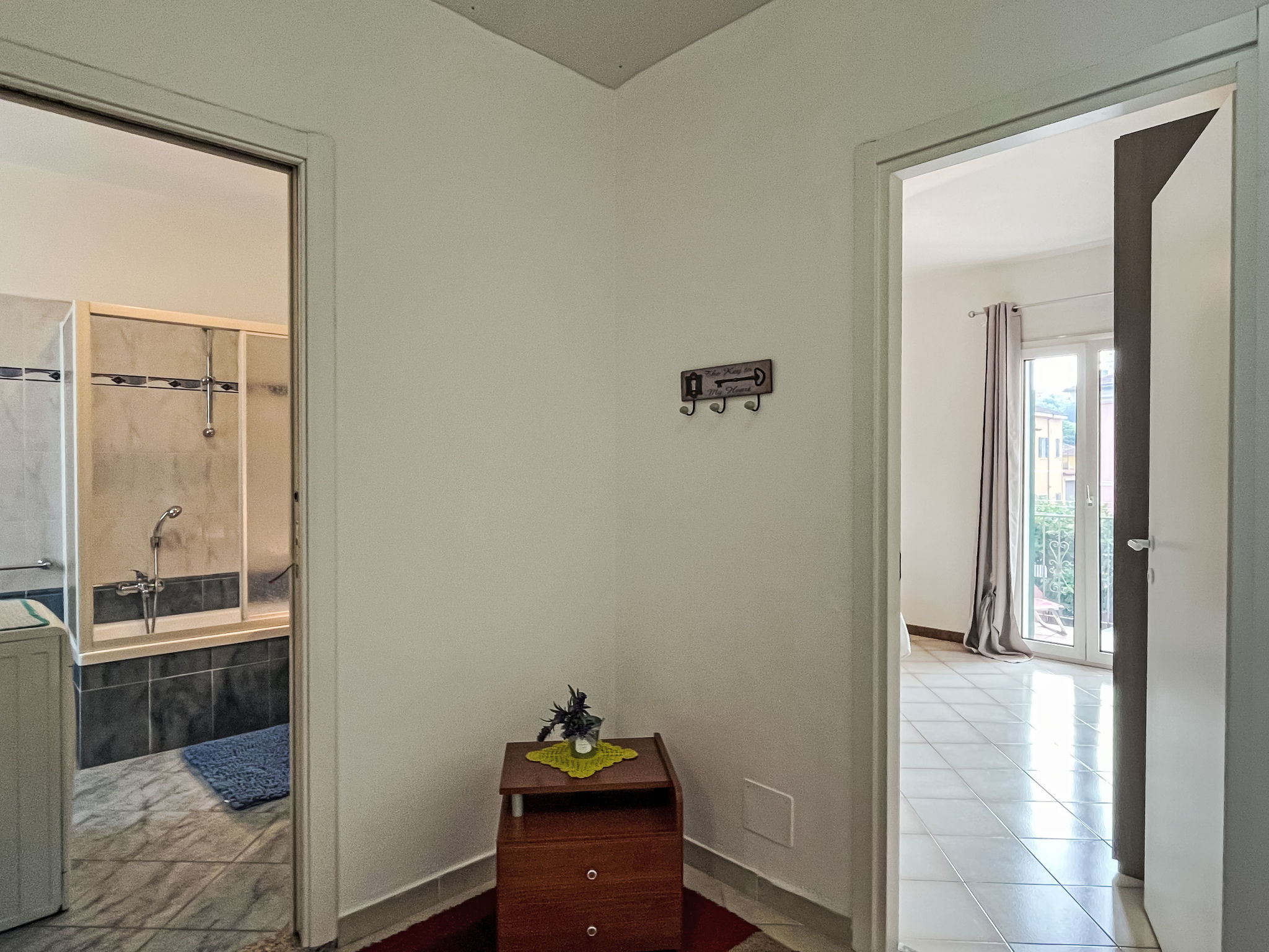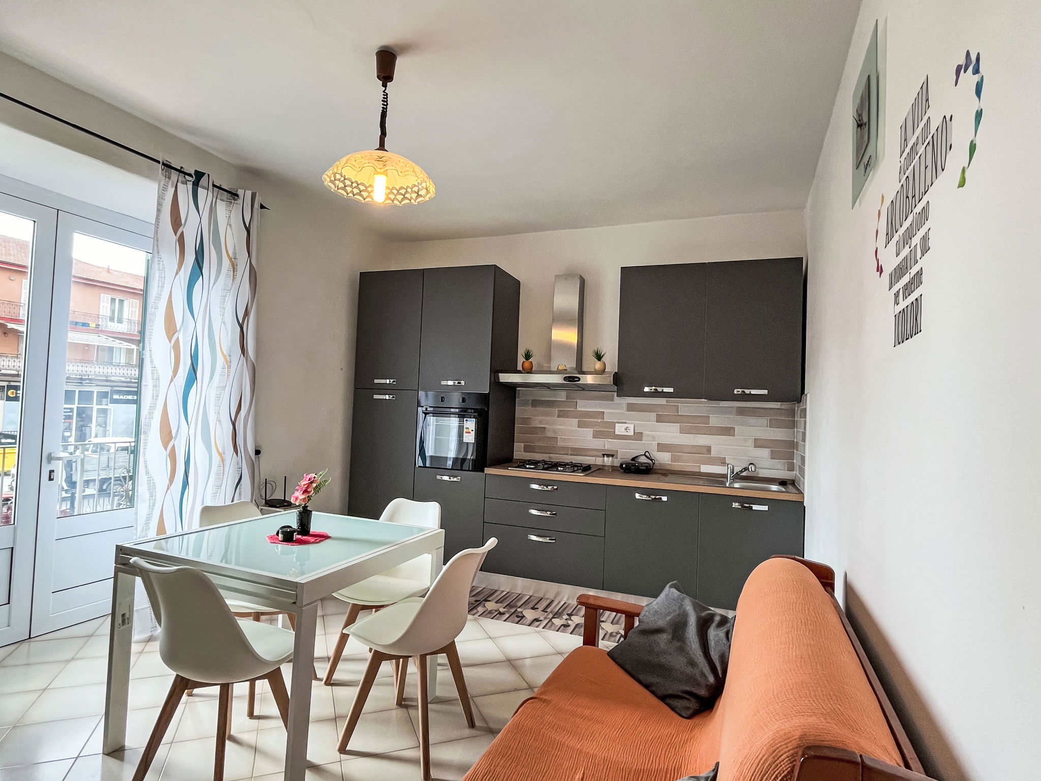 "Collina", 3-room apartment 80 m2 on 1st floor. Bright, renovated in 2025, beautiful and cosy furnishings: living/sleeping room. 1 room with 2 beds (80 cm, length 200 cm). 1 room with 1 double bed (1 x 160 cm, length 200 cm). Open kitchen (oven, dishwasher, 4 gas rings, toaster, kettle, freezer, electric coffee machine) with dining table. Exit to the balcony. Shower/WC. Heating available only from 01.11. to 12.04. Terrace. Terrace furniture, barbecue. Facilities: washing machine, iron, children's high chair, baby cot, hair dryer. Internet (WiFi, free). Parking space n 1. Please note: maximum 1 pet/ dog allowed. Smoke alarm, fire extinguisher. IT008031C2X7RAYMO