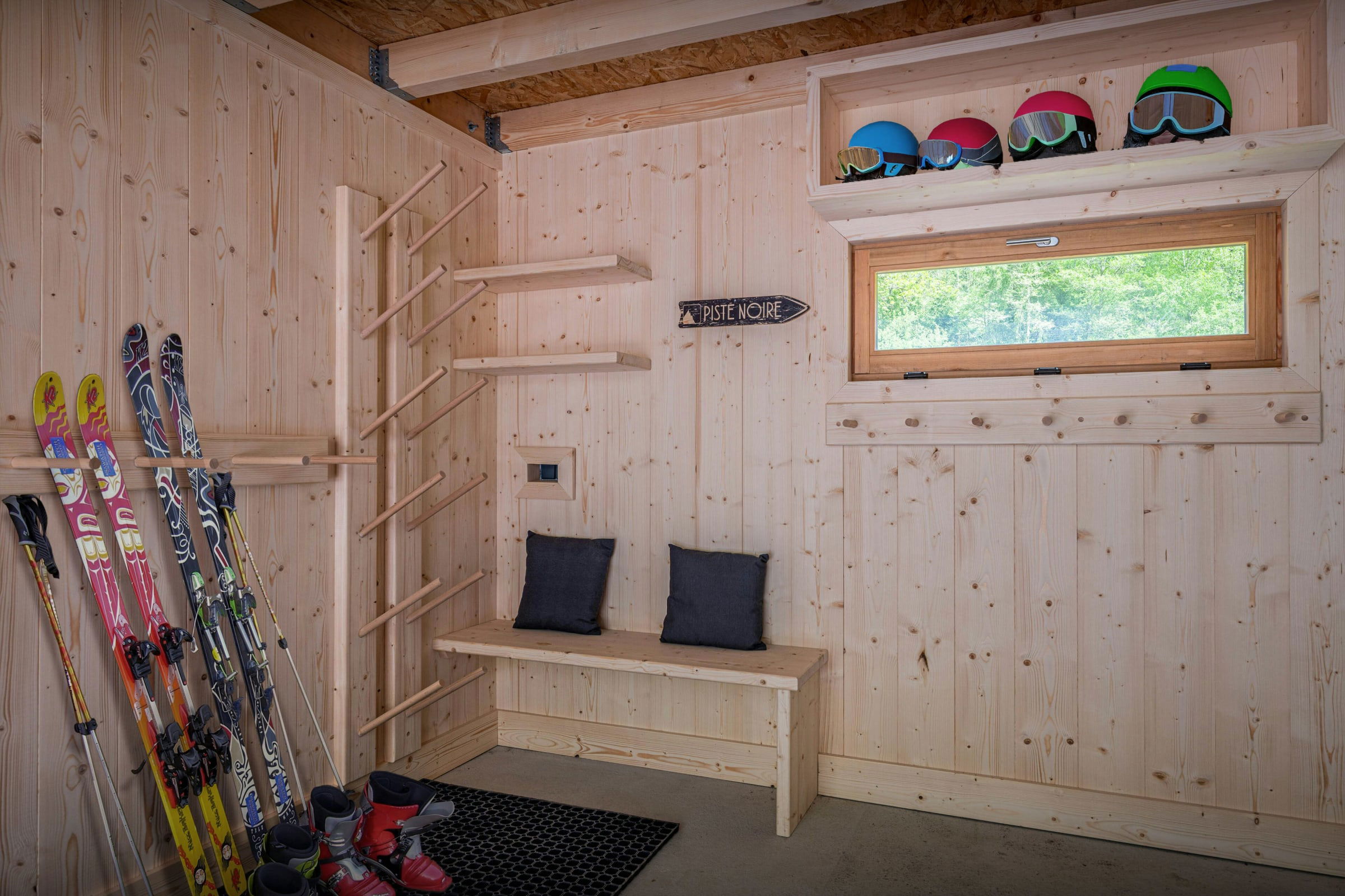 On the practical side, a garage with ski storage is available, and there are several outdoor parking spaces.