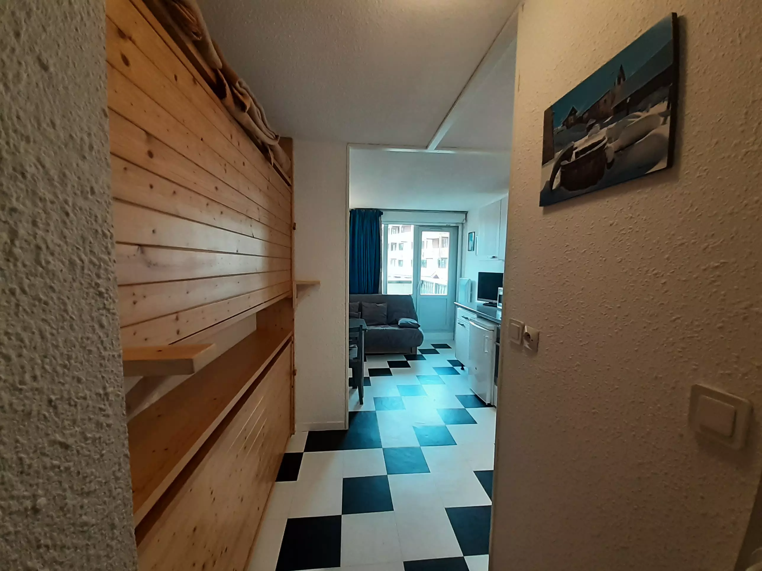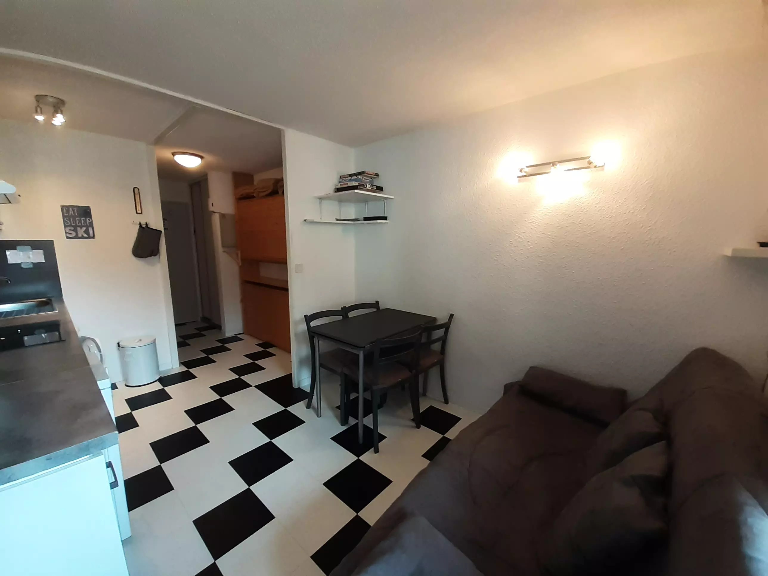 STUDIO for 2/3 people, 19m², located in Valfréjus, Résidence Thabor, entrance A, 20m from the Arrondaz cable car, shops and 50m from the ski schools.
