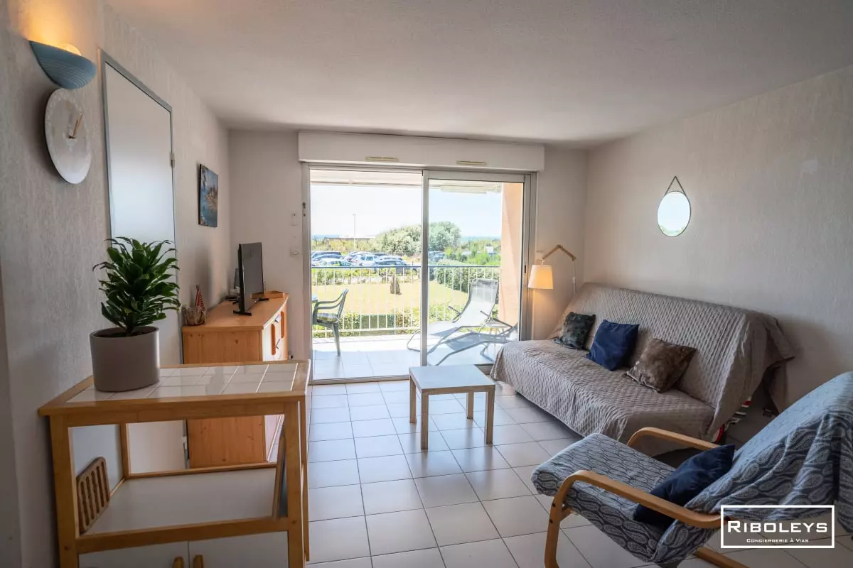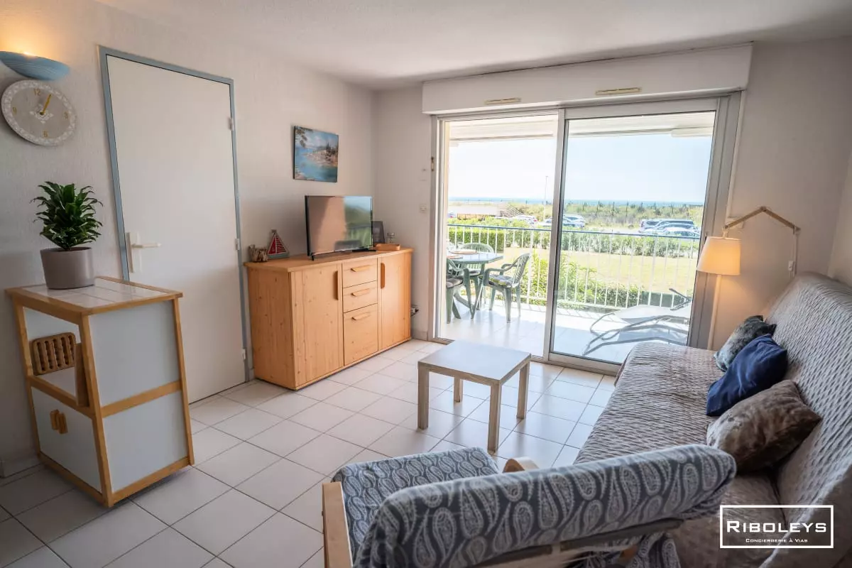 RP02 - This pleasant sea-facing apartment is located in a gated community with a shared seasonal swimming pool and pétanque courts.
