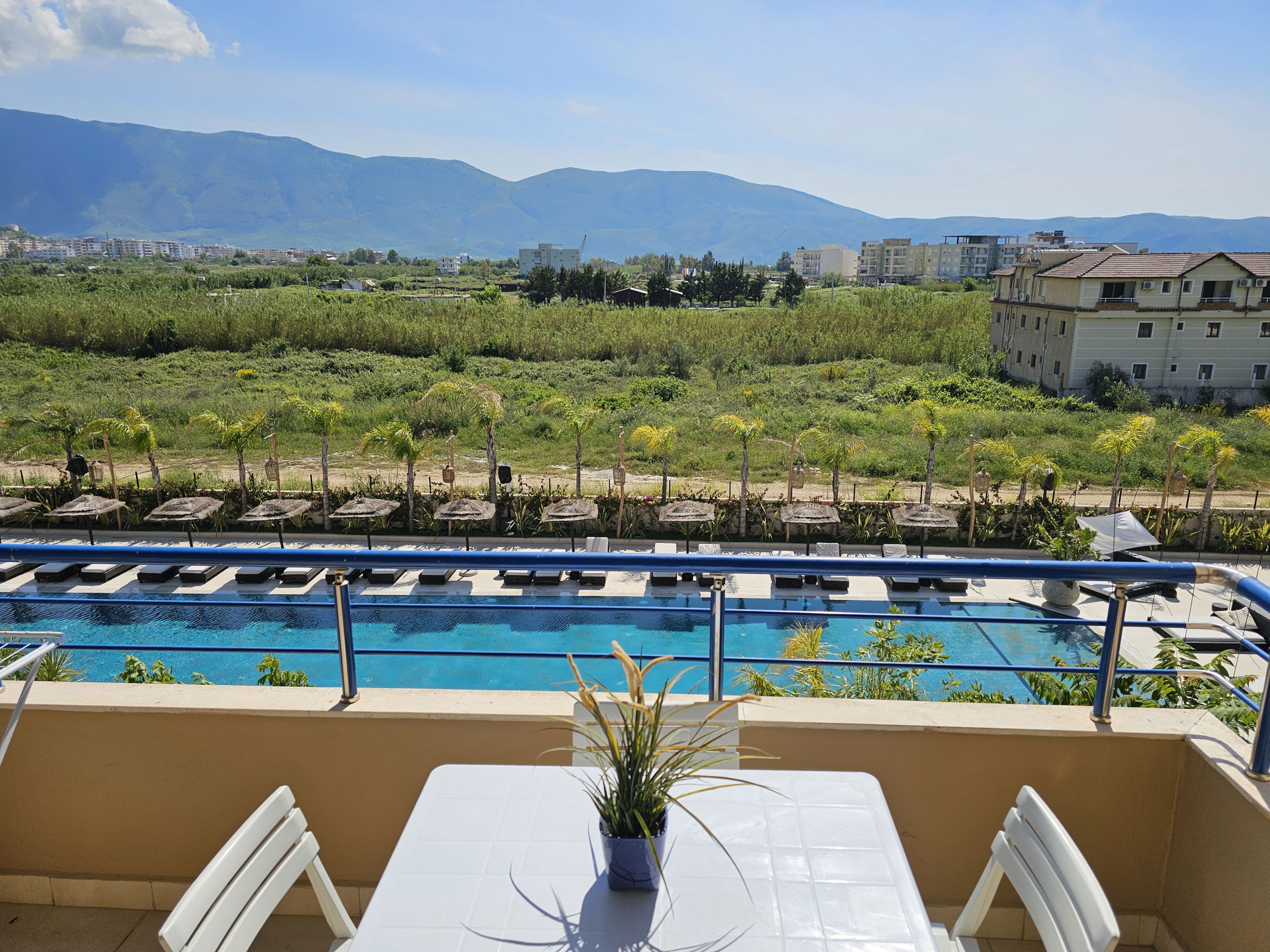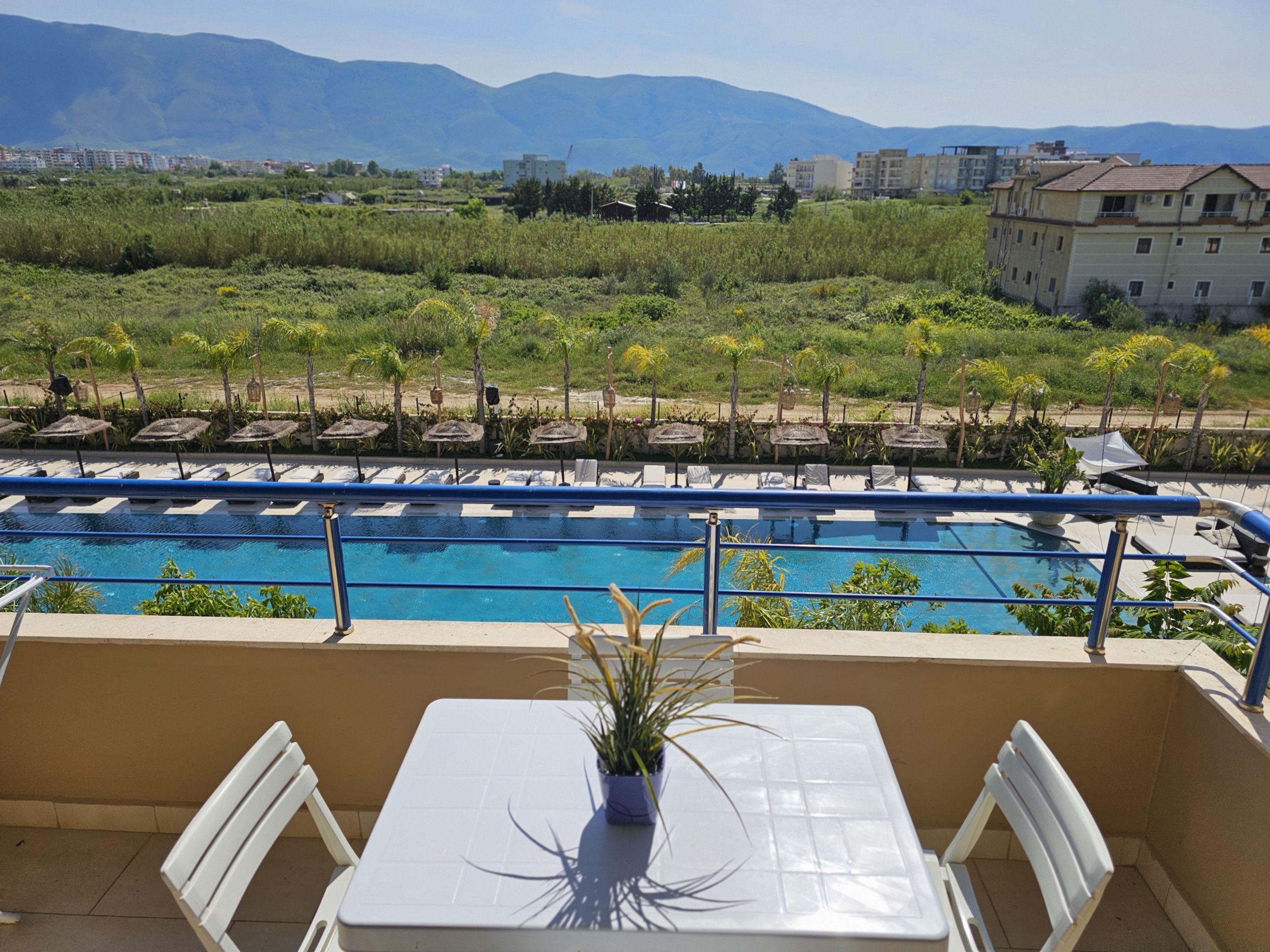 Discover a charming 1+1 apartment nestled in the picturesque coastal area of Vlorë, perfectly situated next to the sea and ideal for families, couples, and small groups. This recently constructed comfortable accommodation offers a delightful pool view and stunning mountain, garden, and river panoramas.