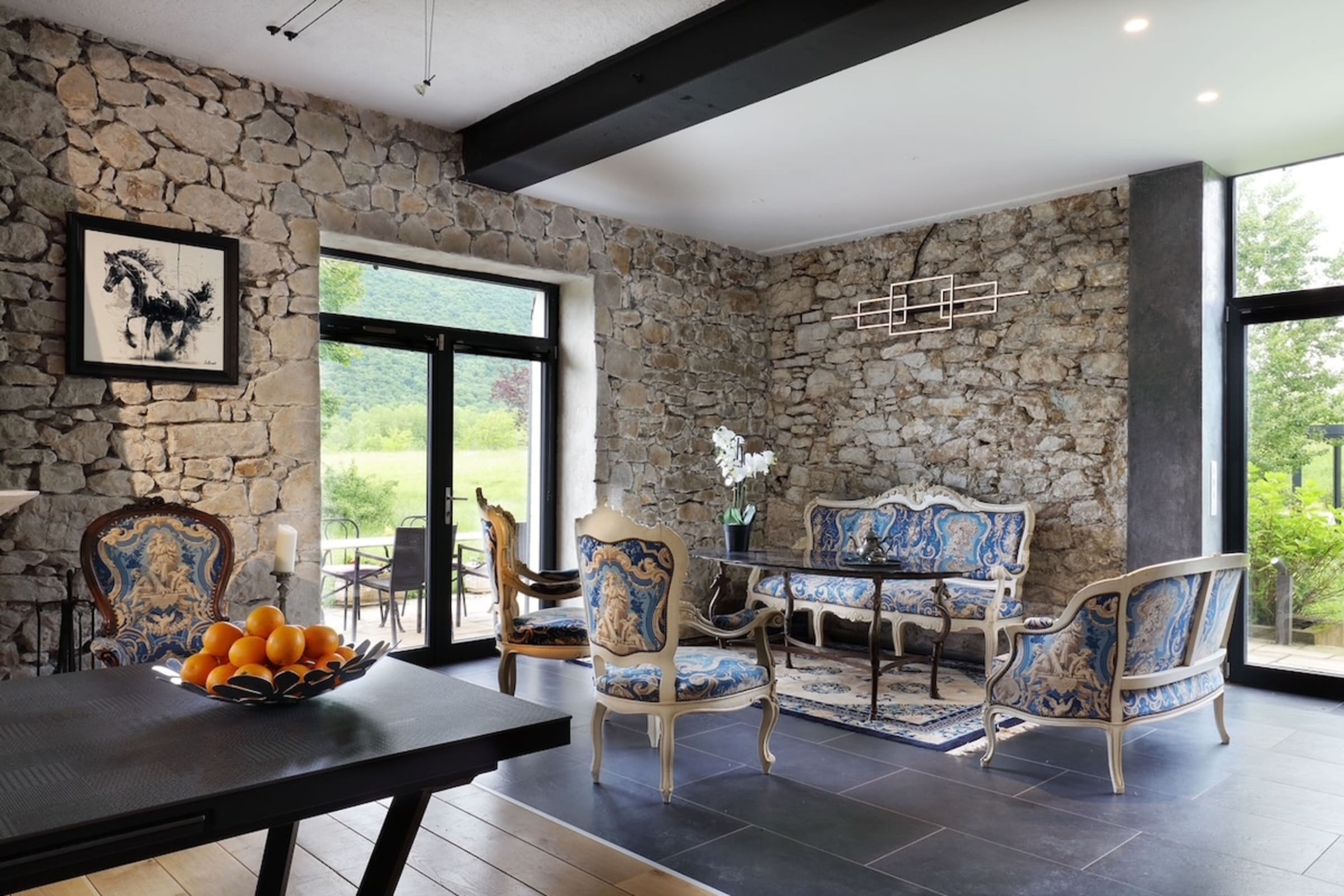 Welcome to Le Temps Suspendu, a 230 m² house designed as a true break from time. Nestled in a lovingly renovated former farmhouse, this home combines noble materials, warm decor and modern comforts.