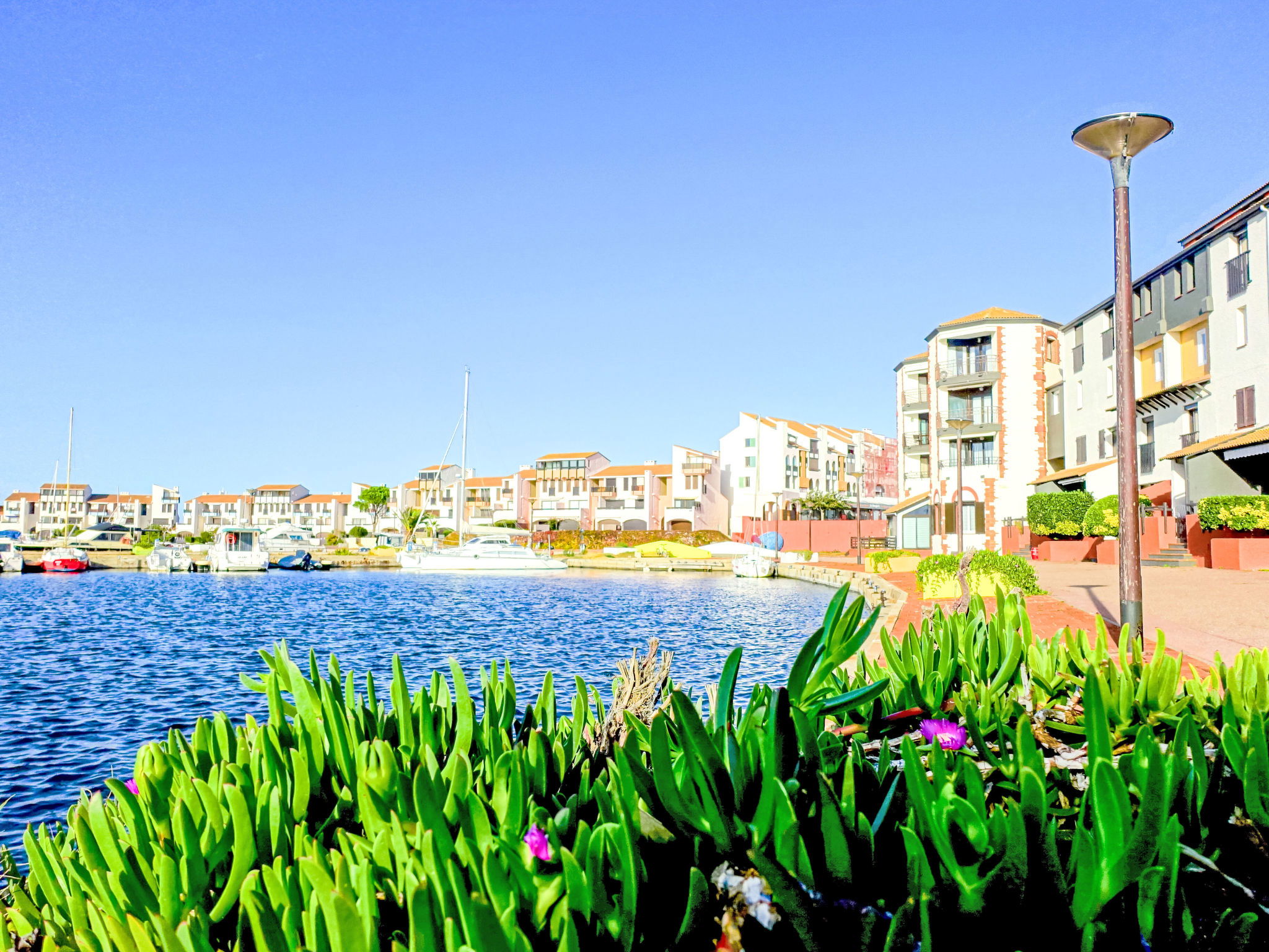 Coudalère 5 km from Barcarès centre: As part of the water restriction measures linked to the drought in some of our departments, please note that the rental swimming pool may be closed by prefectural decree. Set of residences with 3 heated swimming pools including 1 children's pool, 1 10m/15m pool and a 25m/15m pool (open from 15.04 to 15.10) free of charge and 5 paying tennis courts. Residence "Sombrero", 3 storeys. In the district of de la Coudalère, 2.5 km from the sea, 50 m from the lake, 2.5 km from the beach. For shared use: natural pond, 2 swimming pools (10 x 15 m, seasonal availability: 15.Apr. - 15.Oct.). Children's pool, tennis (extra), basketball (extra), children's playground (slide), public parking. Shop, grocery 100 m, supermarket 6 km, restaurant, bar, bakery, café 100 m, bus stop "La Coudalère" 950 m, railway station "Perpignan" 22 km, sandy beach 2.5 km. Sailing school 50 m, minigolf 1.3 km, riding stable 12 km. Nearby attractions: Réserve Africaine de Sigean 41 km, Aqualand Port Leucate 7 km, parcours aventure 7 km, cinéma 5 km, Téleski nautique site des dosses 5 km, Spot de windsurf 50 m. Well-known lakes can easily be reached: Lac de villeneuve de la Raho 34 km. Hiking paths: Sentier du guetteur 8 km, la forteresse de salses 15 km, Sentier du littoral Collioure 40 km. Please note: car recommended, no lift. Entertainment in the season. The keys‘ handover takes place by the agency Barcares 3 km. The apartment is located in a zone with limited traffic. The photograph shows a typical example. Additional accommodations can be booked.