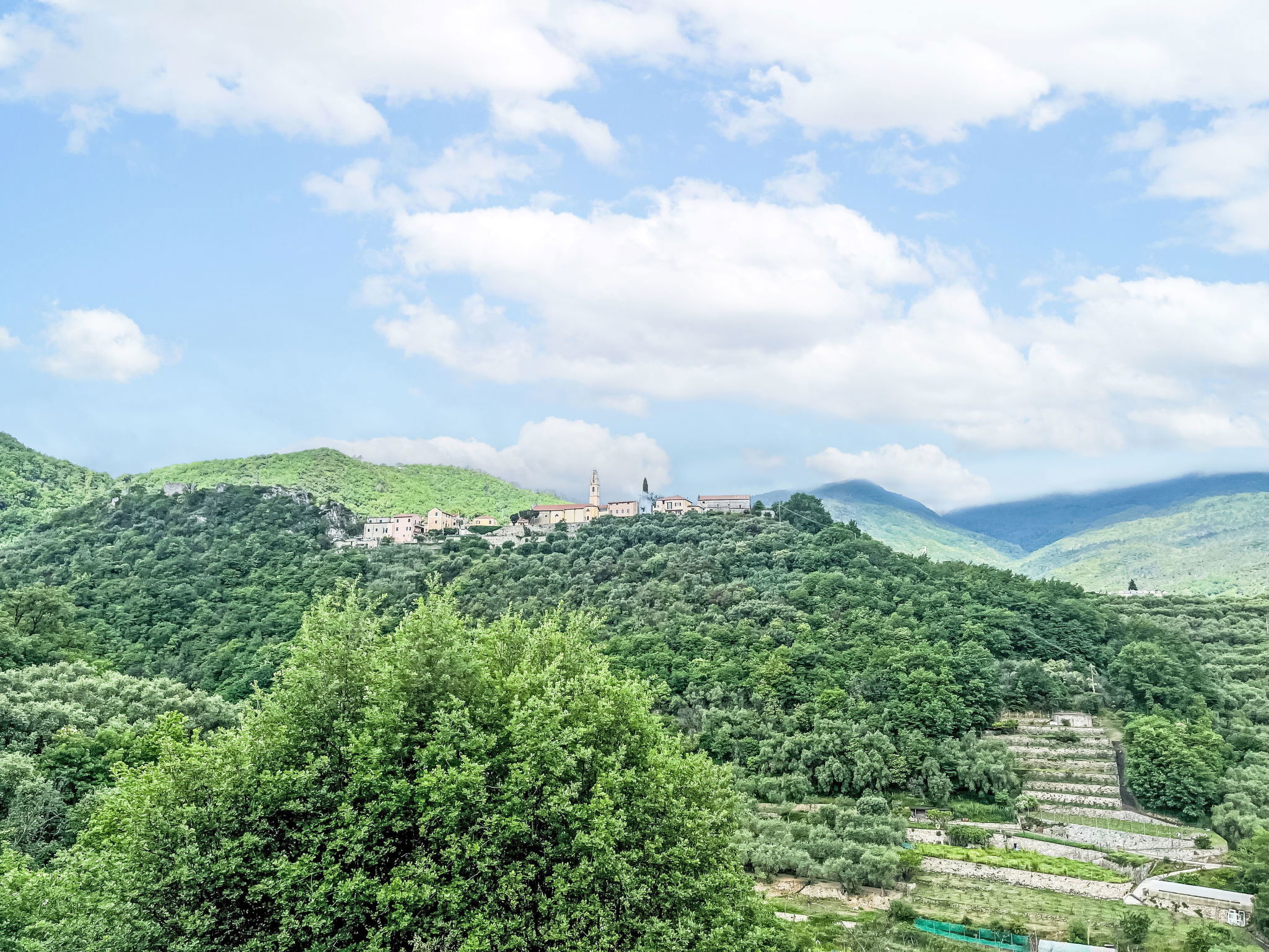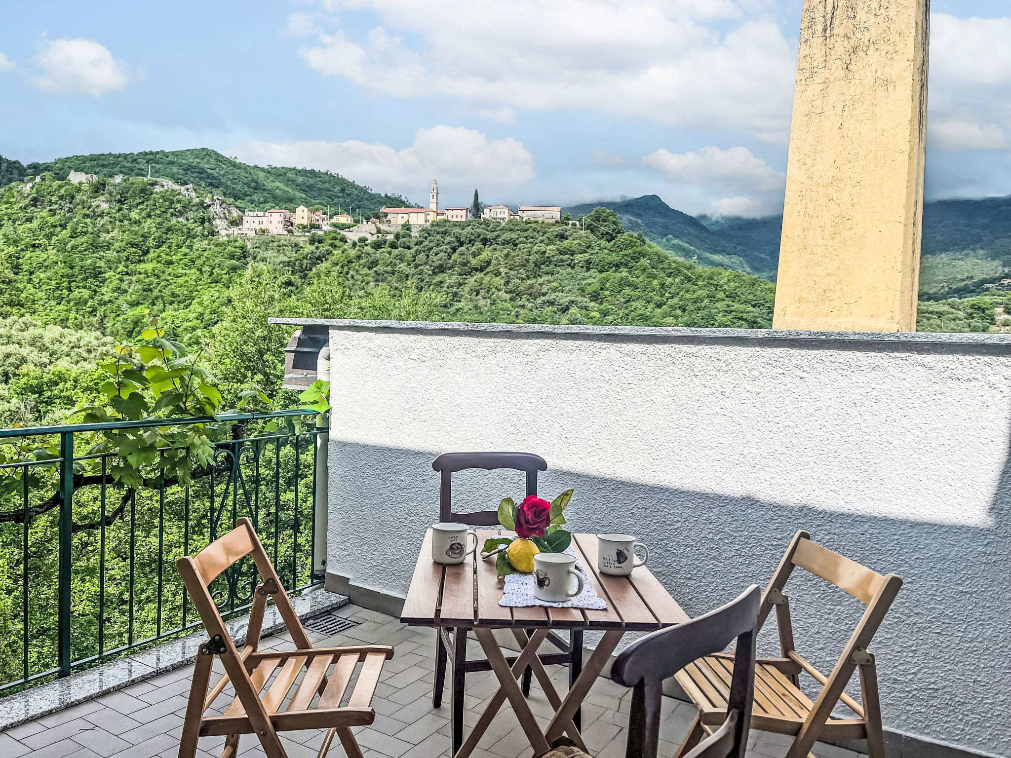 Rustic house "Virginia", renovated in 2024, surrounded by trees and meadows. In the resort Giustenice, 12 km from the centre of Finale Ligure, 6.4 km from the centre of Pietra Ligure, in a quiet, sunny position on top of a hill, 6 km from the sea. For shared use: terraced garden. Private: property 100 m2, natural garden. In the house: storage room for bicycles. Parking (for 2 cars) at the house. Grocery 3 km, supermarket 3 km, restaurant 1 km, bar 1 km, bakery 3 km, bicycle rental 3 km, bus stop 200 m, railway station "Finale Ligure" 12 km, sandy beach "Finale Ligure" 12 km pebble beach "Pietra Ligure" 6 km. Walking paths from the house 20 m. Nearby attractions: Farmacia 300 m. Please note: car recommended.