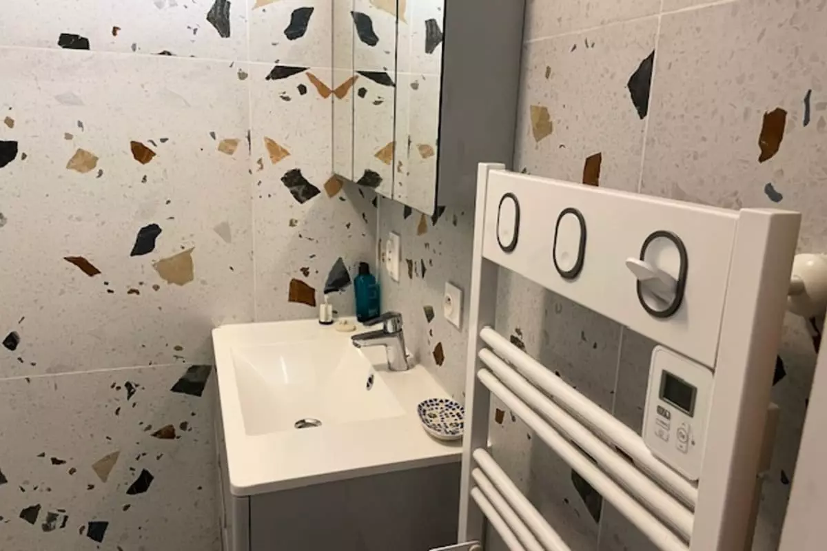 - the bathroom is equipped with an electric radiator/heated towel rail independent of the heating. It can be programmed.