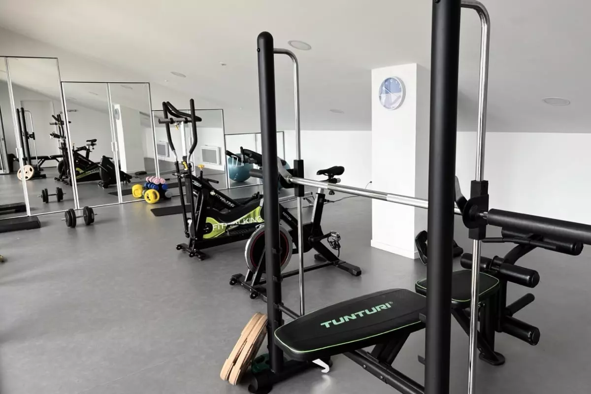 - in a residence with gym and shared swimming pool (open from June to October, from 9 a.m. to 8 p.m.);