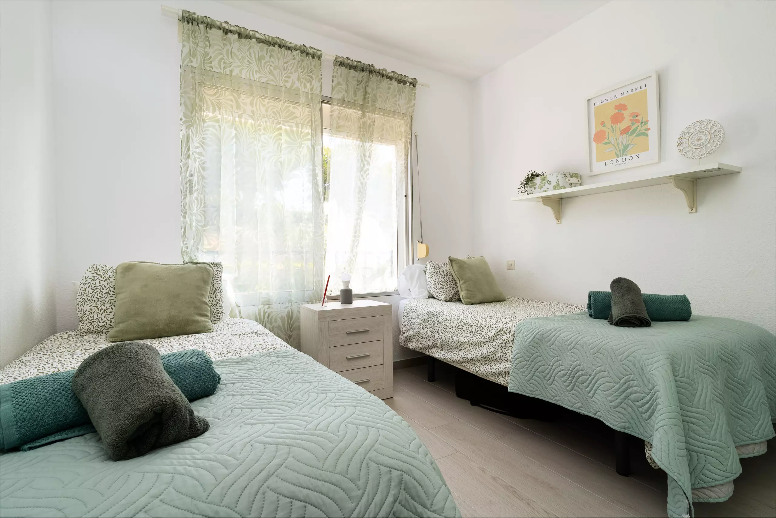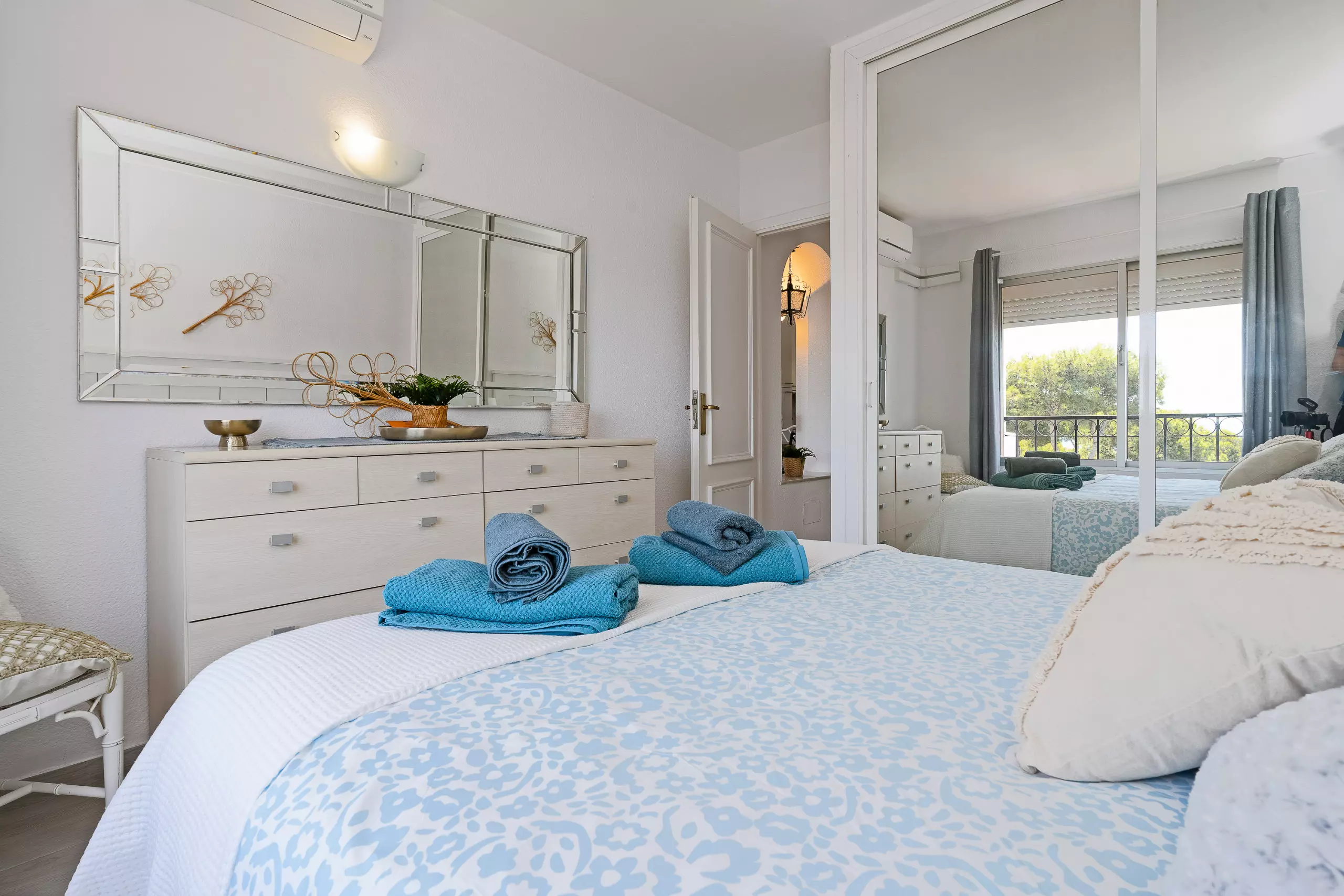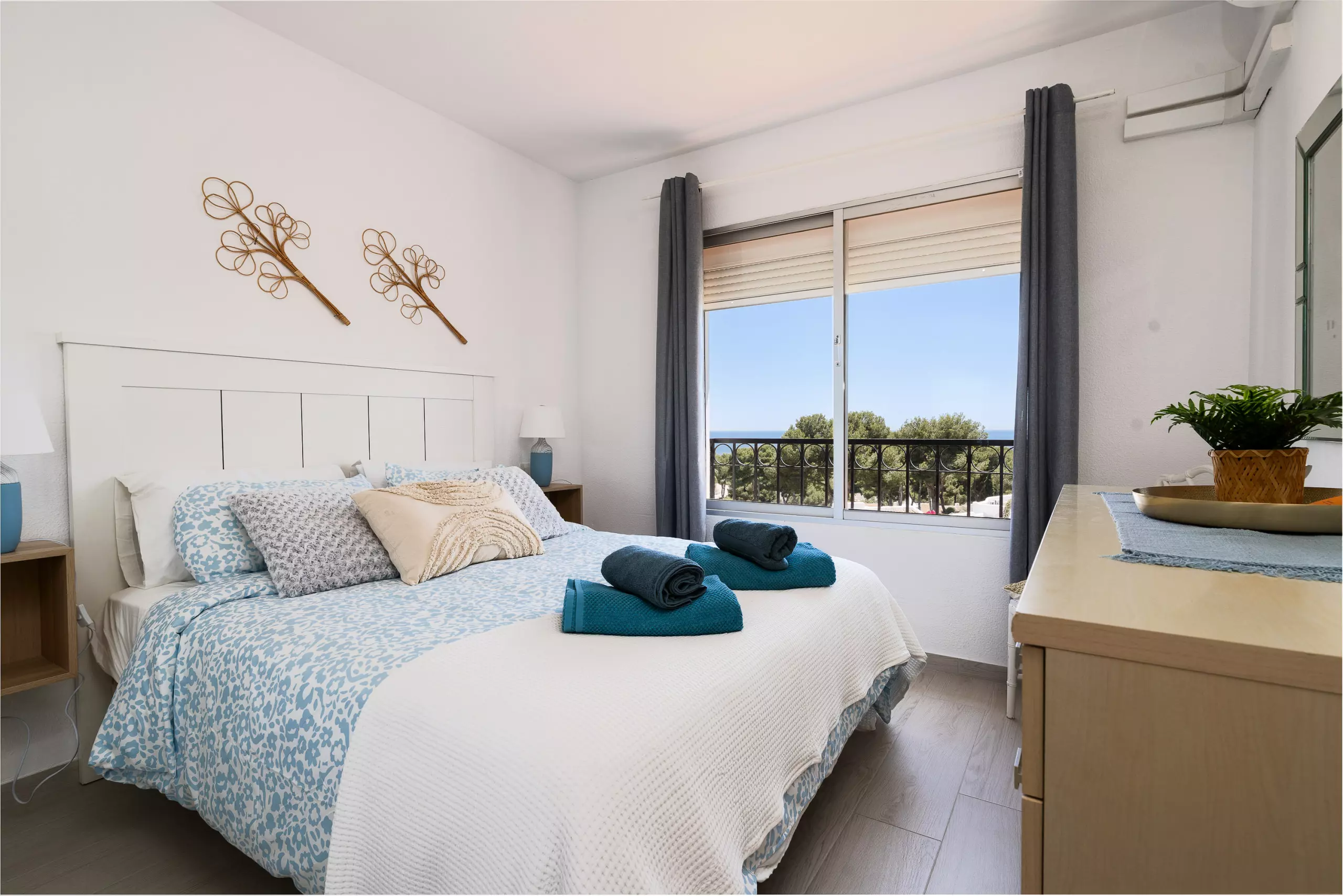 Wake up to breathtaking ocean views from your private terrace in this stunning two-bedroom apartment. Perfect for families or friends, this elegant retreat features a master bedroom with a cozy double bed and a second bedroom with two comfortable twin beds.
