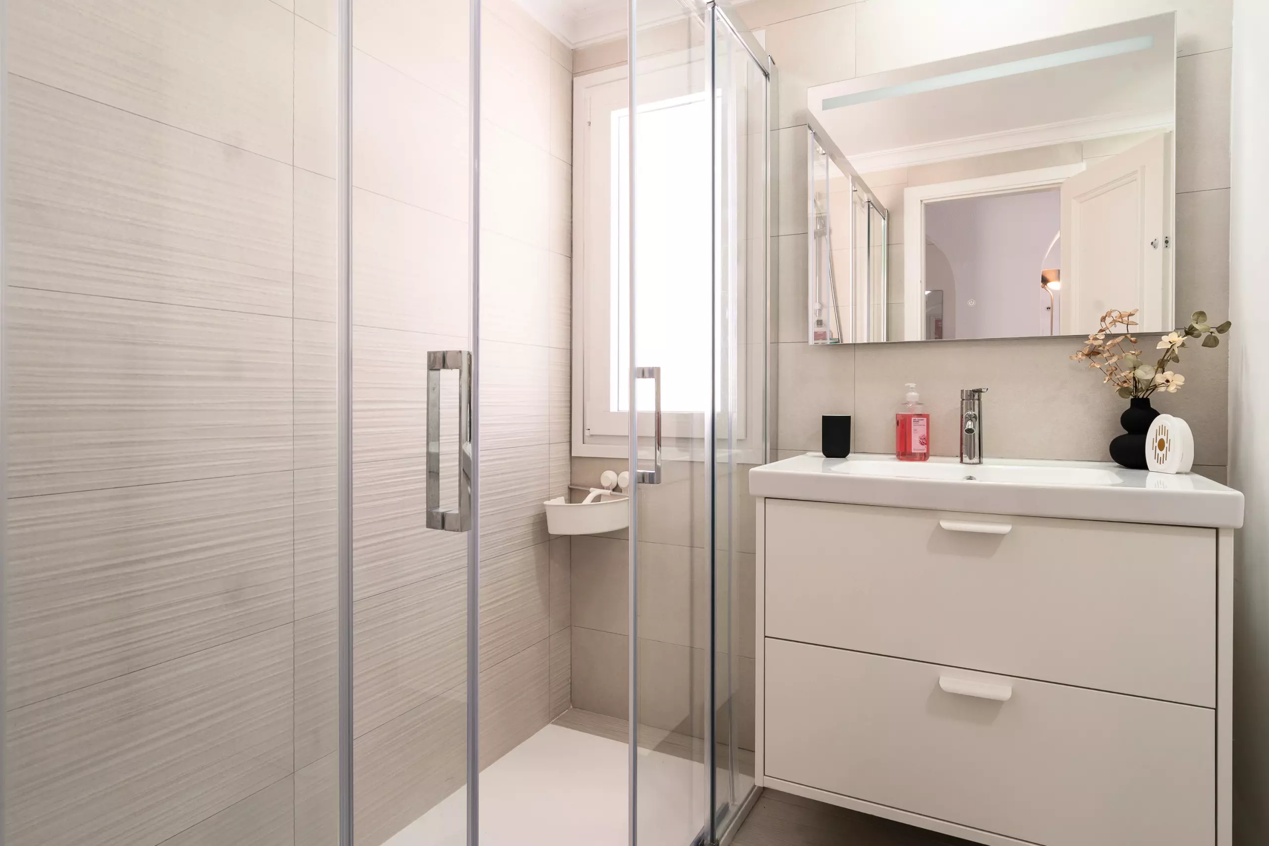 Enjoy a refreshing shower in the modern bathroom and relax in the cool comfort of air conditioning in the living/dining area and both bedrooms.