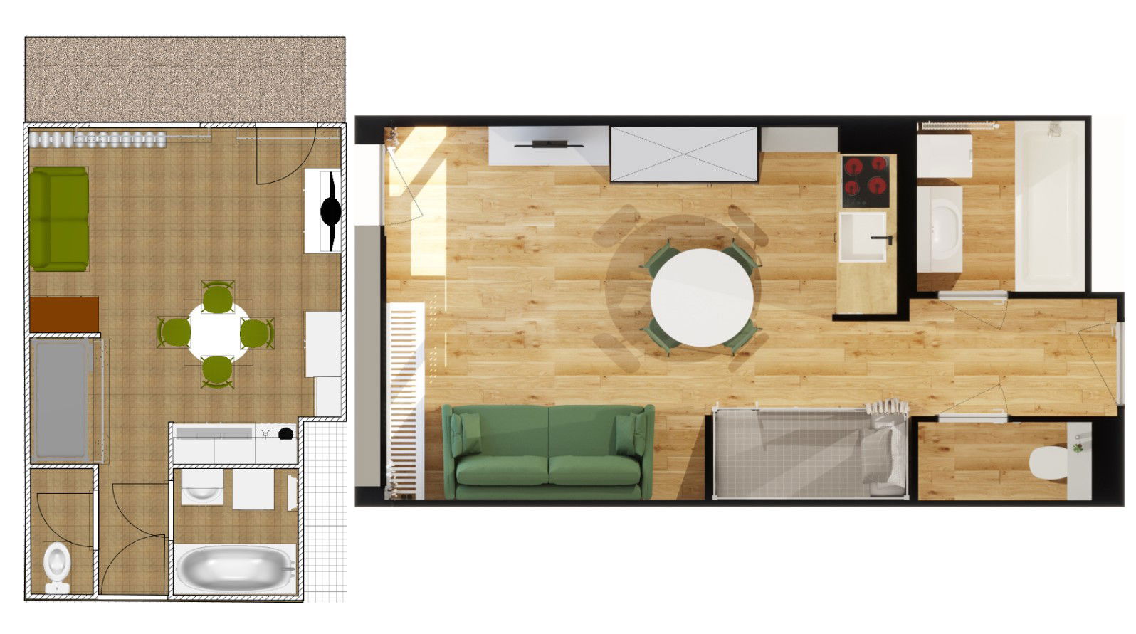 27m2 studio that can accommodate 4 people On the 2nd floor of the residence,...