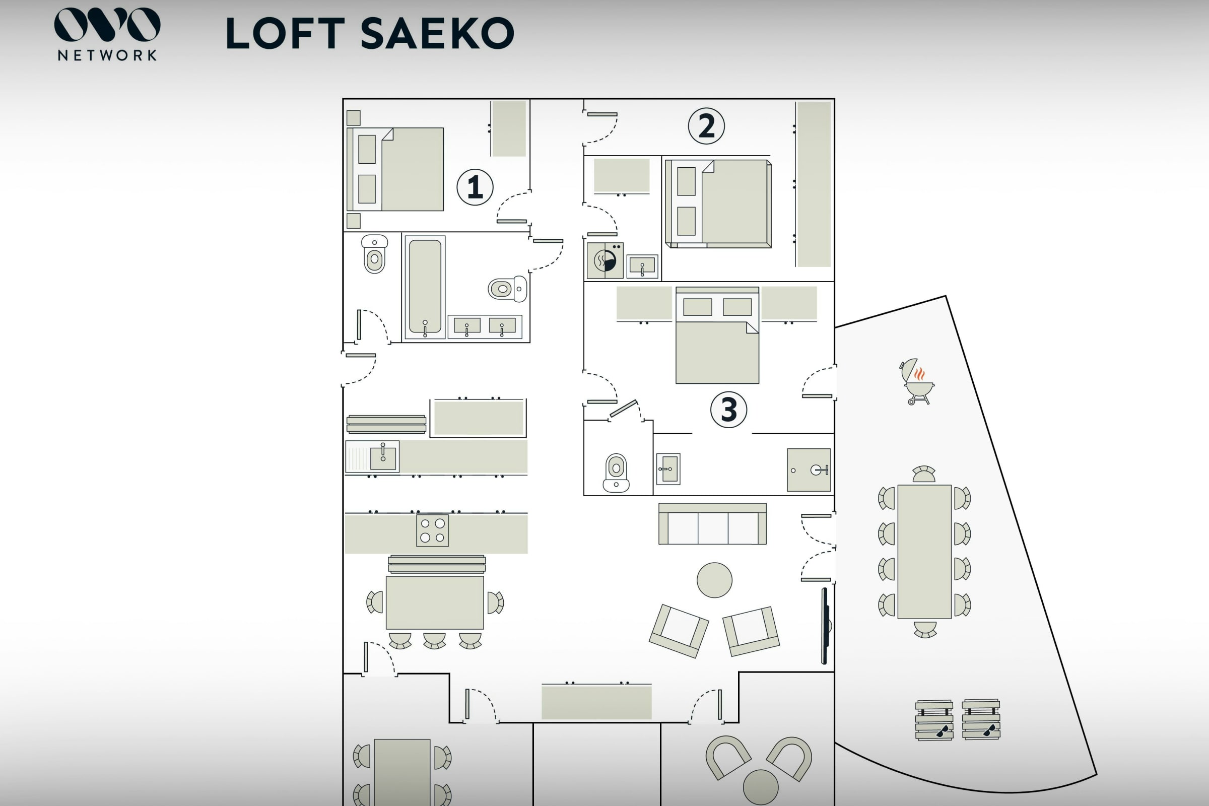 Loft Saeko is a cosy apartment for up to eight people (including six adults), with three comfortable bedrooms and two bathrooms.