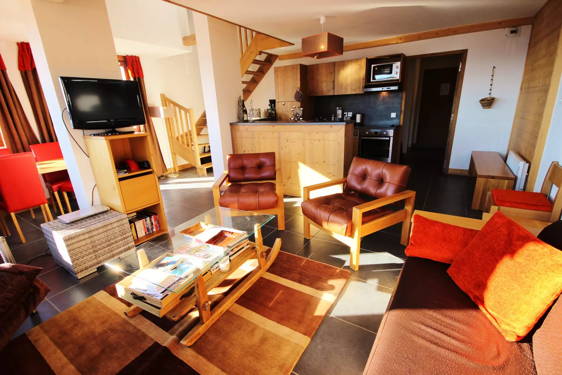 For your skiing holiday or summer vacation in the Arc 1600 resort, book this 4-room duplex which benefits from a panoramic south-facing terrace with an exceptional view of the mountain and the slopes.
