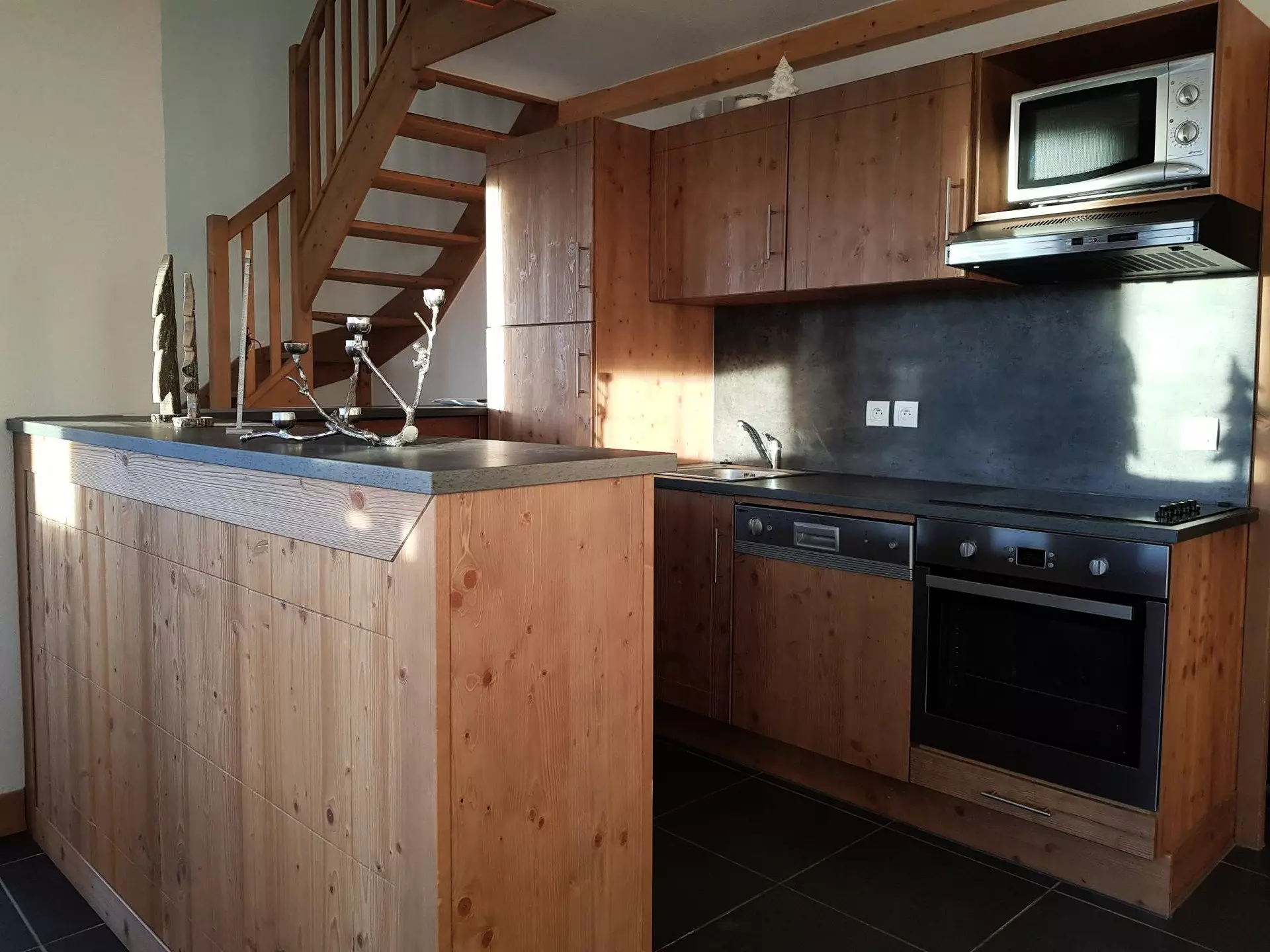 It is fully equipped with ceramic hobs, an oven, a microwave, a dishwasher and a refrigerator.