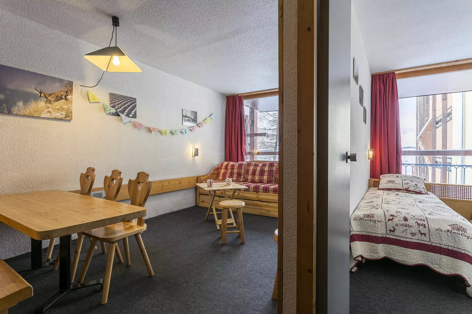 Two-room cabin for 6 people, 40m², located in the center of the resort, on the ground floor of the Nova 5 residence, with south-west facing balcony.