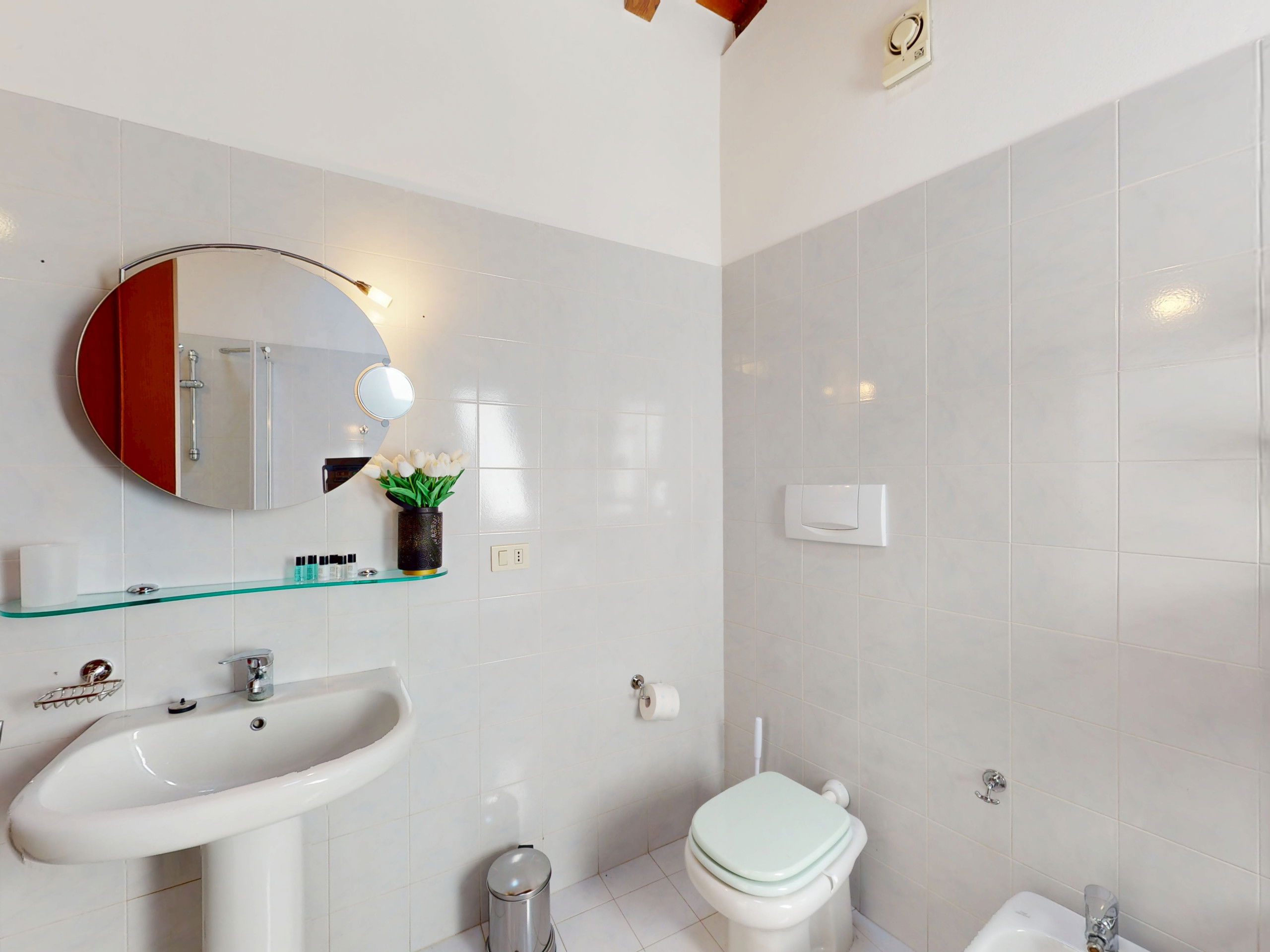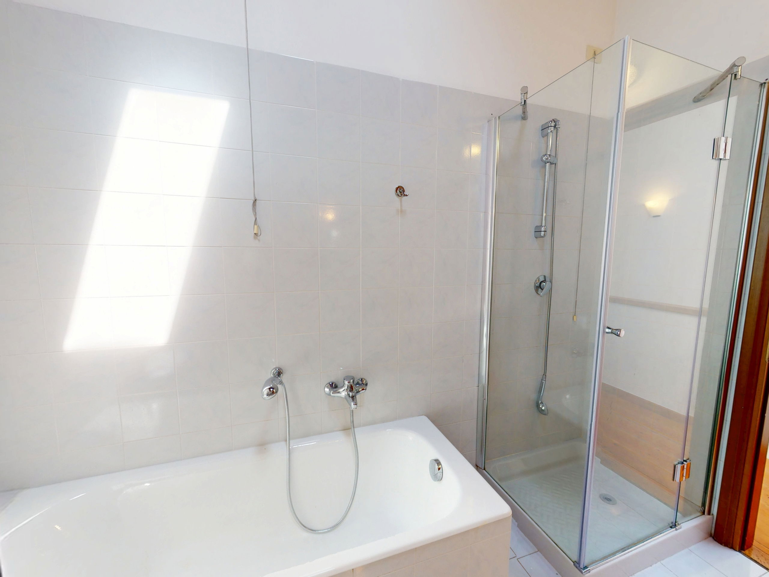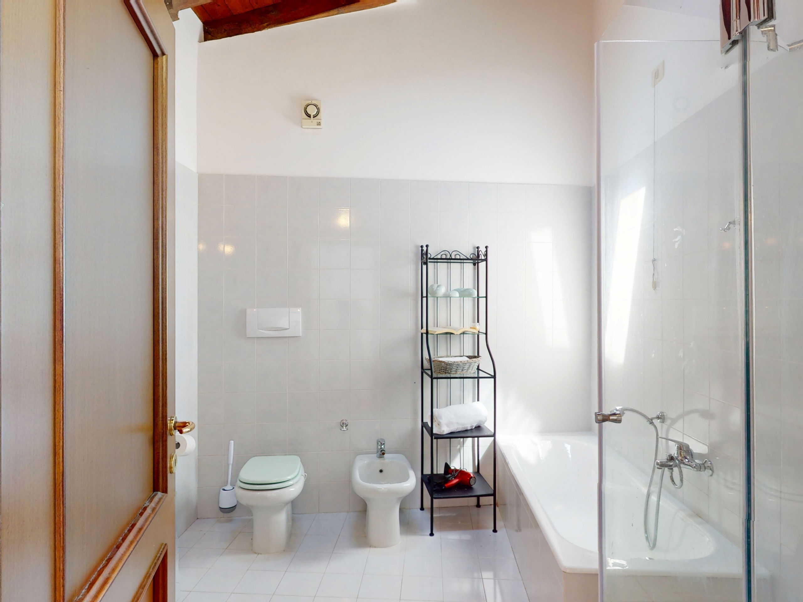 The upstairs bathroom, elegant and well-finished, features both a bathtub and a shower, to enjoy a regenerating break.
