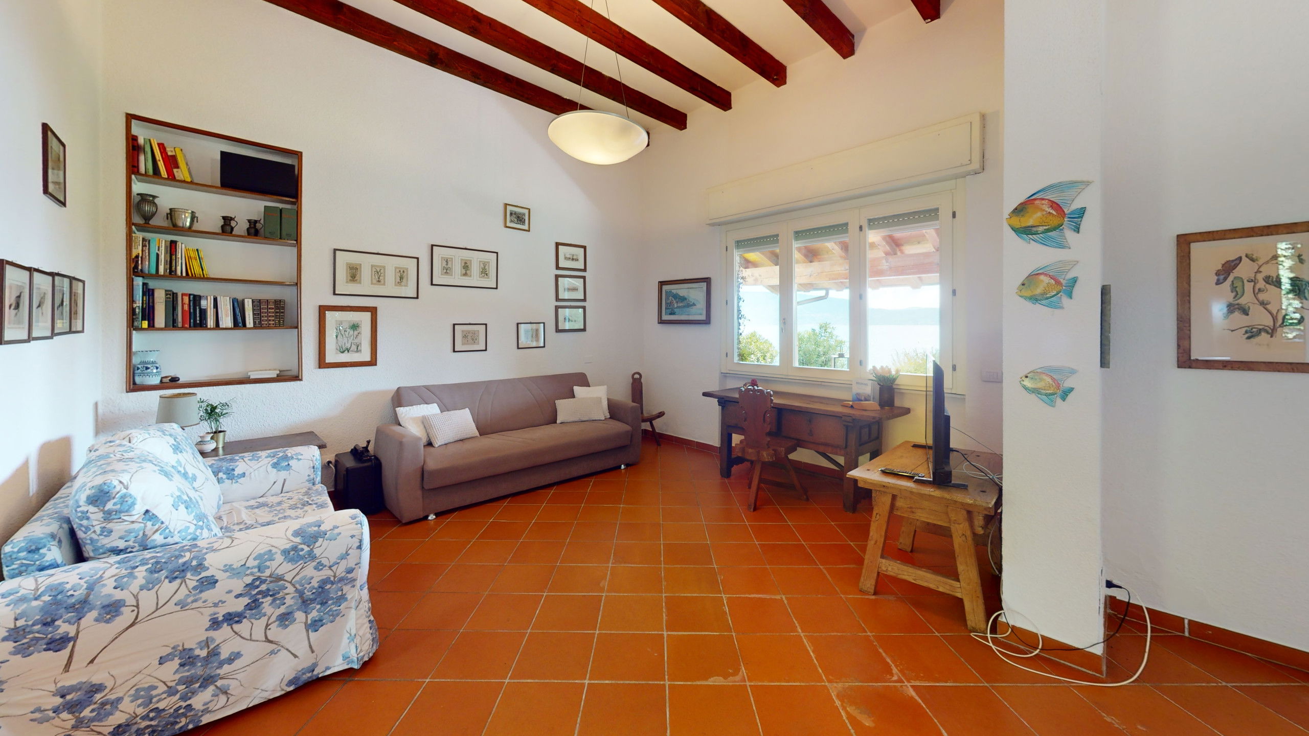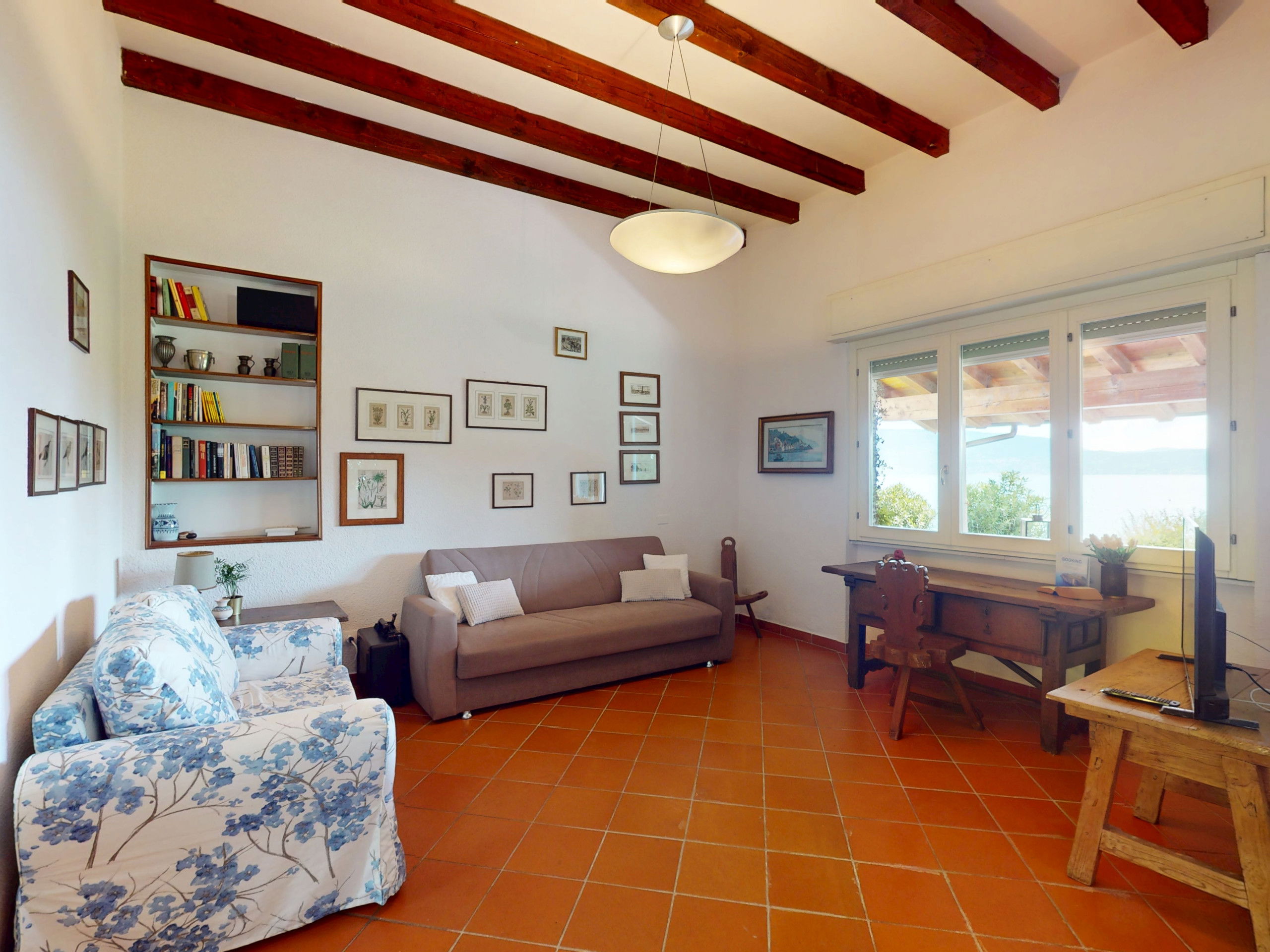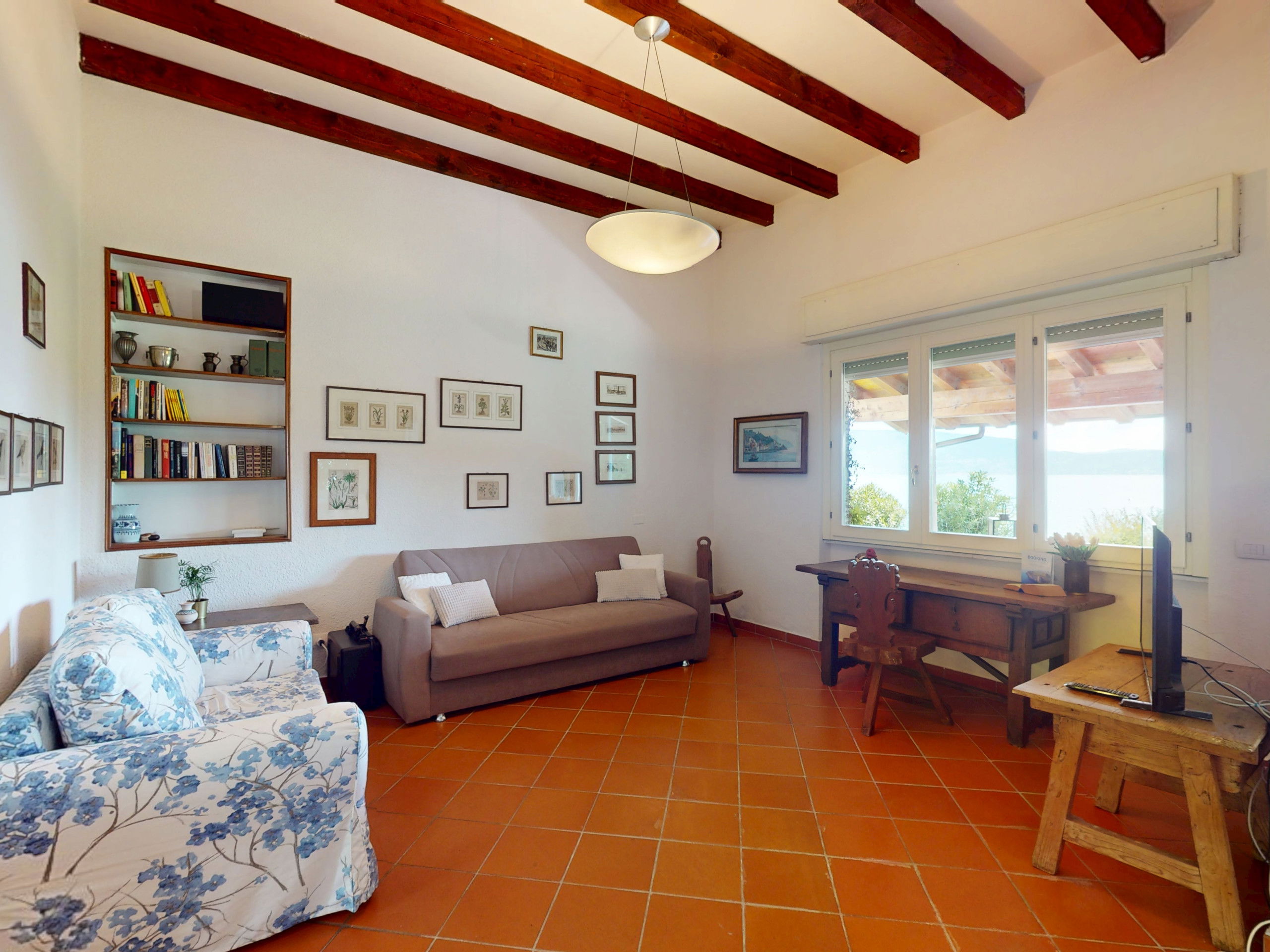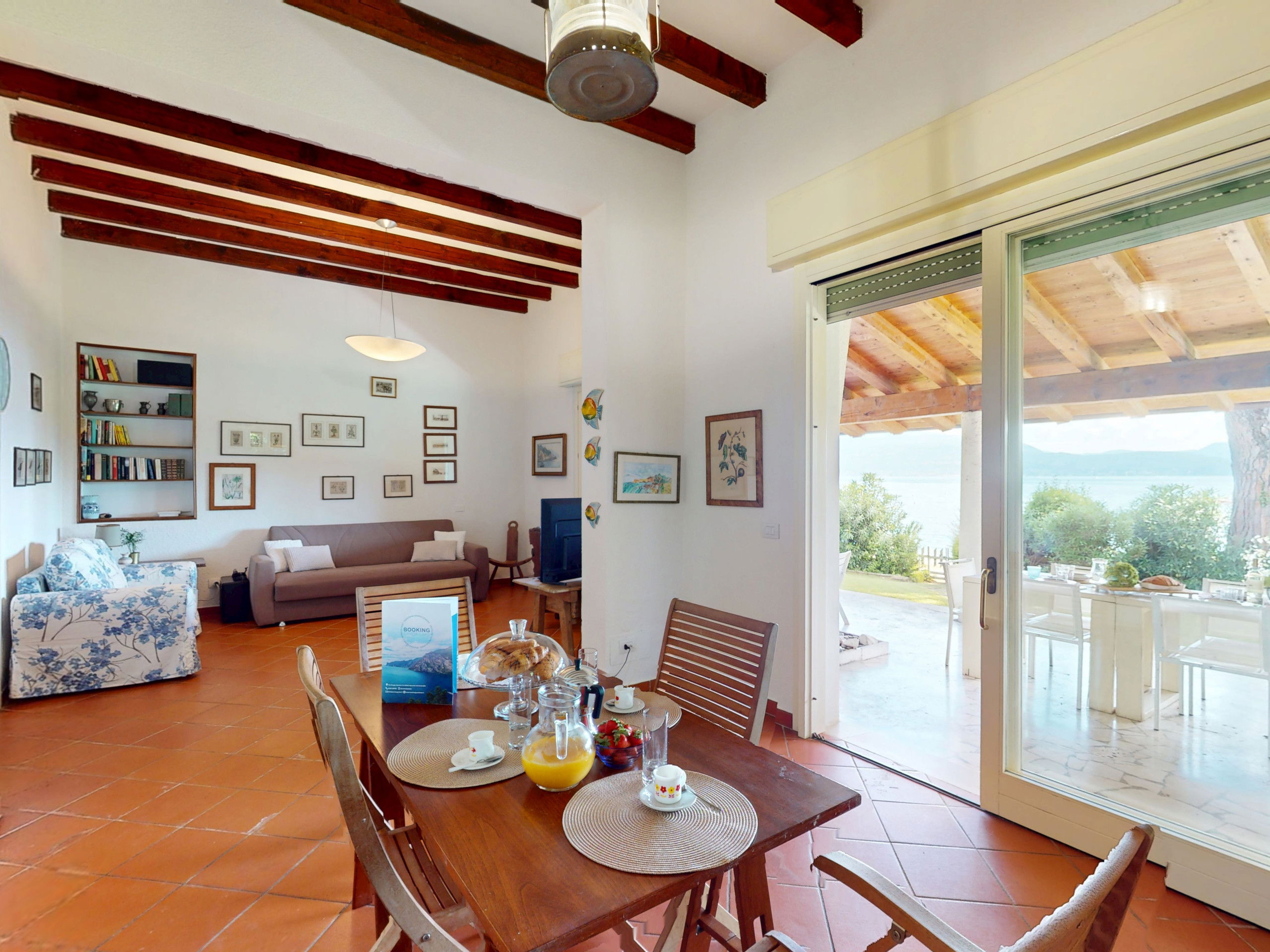The spacious and bright living area with a typical Italian style welcomes your moments of relaxation, the large window offers a continuous view of the garden and the lake.