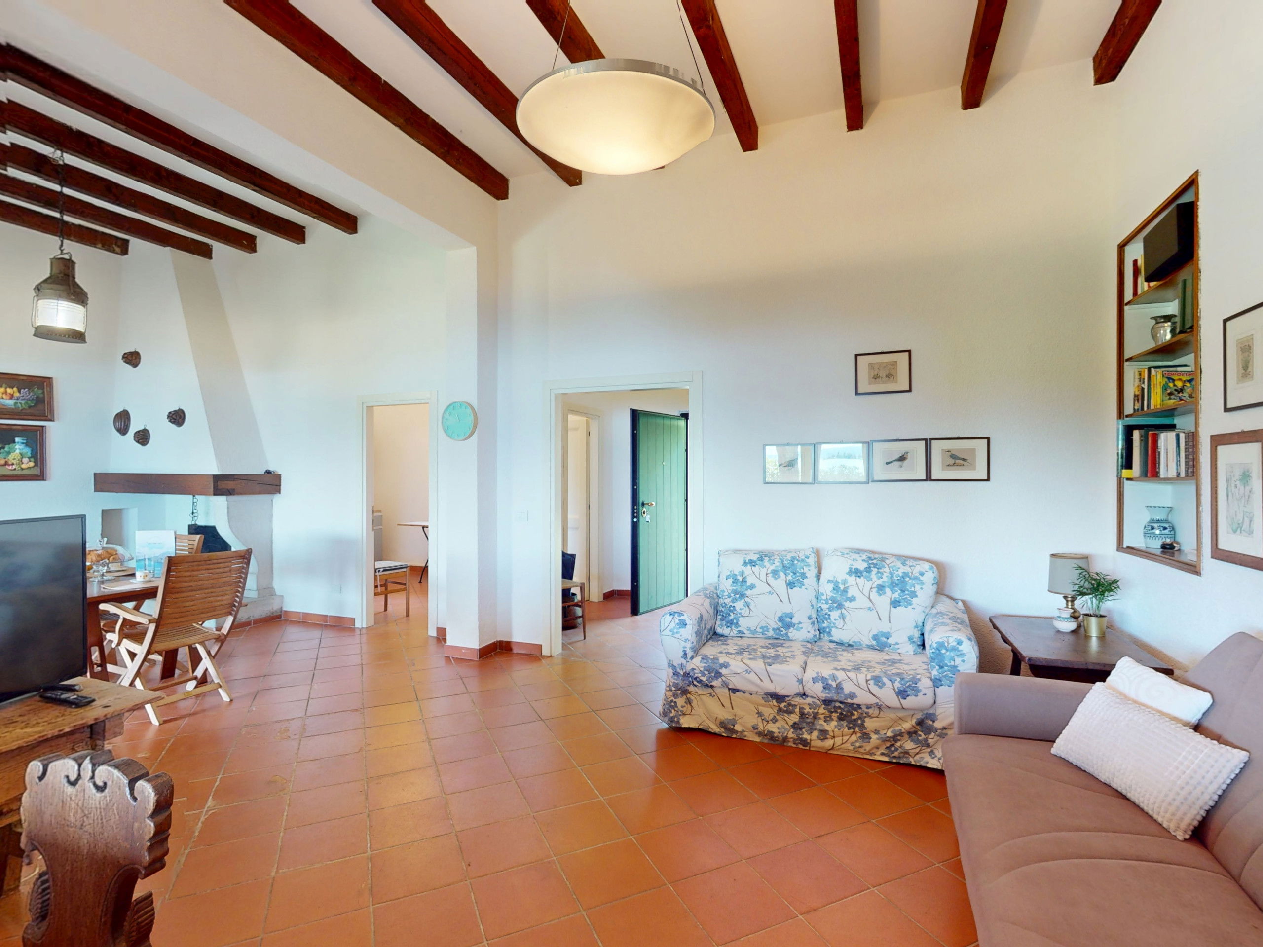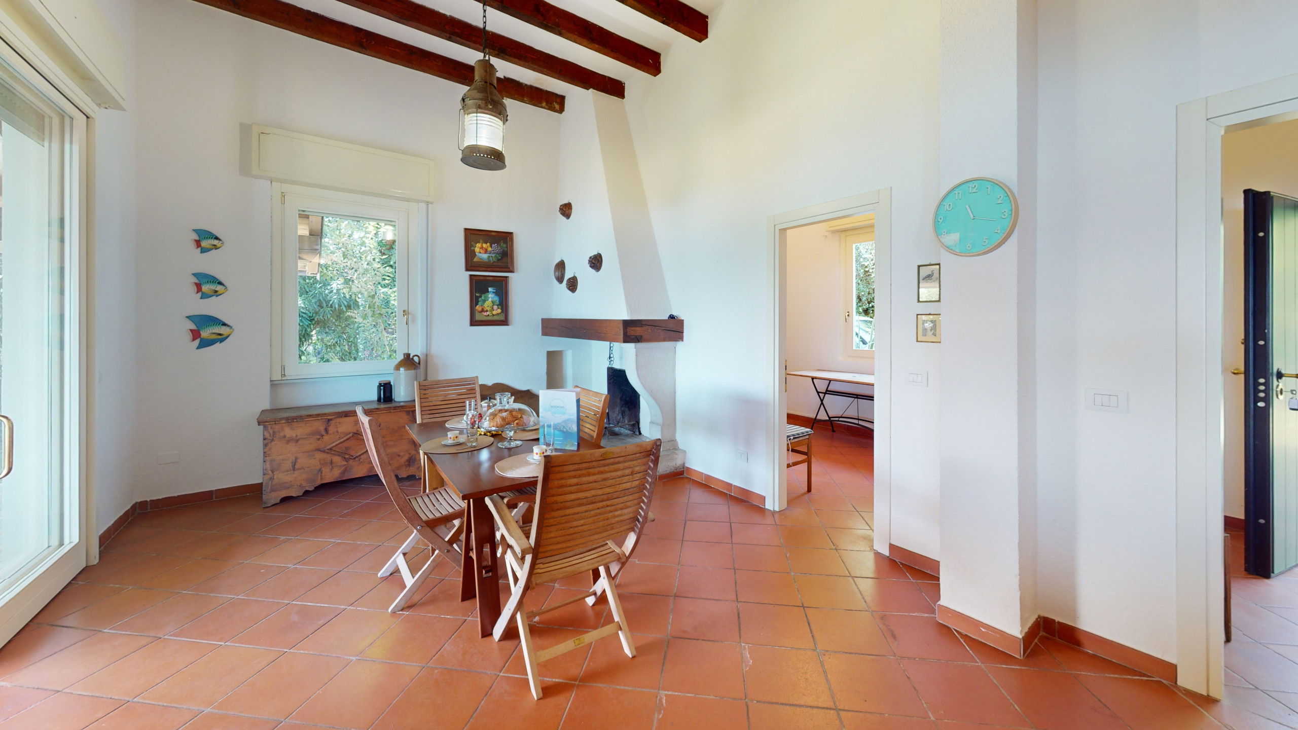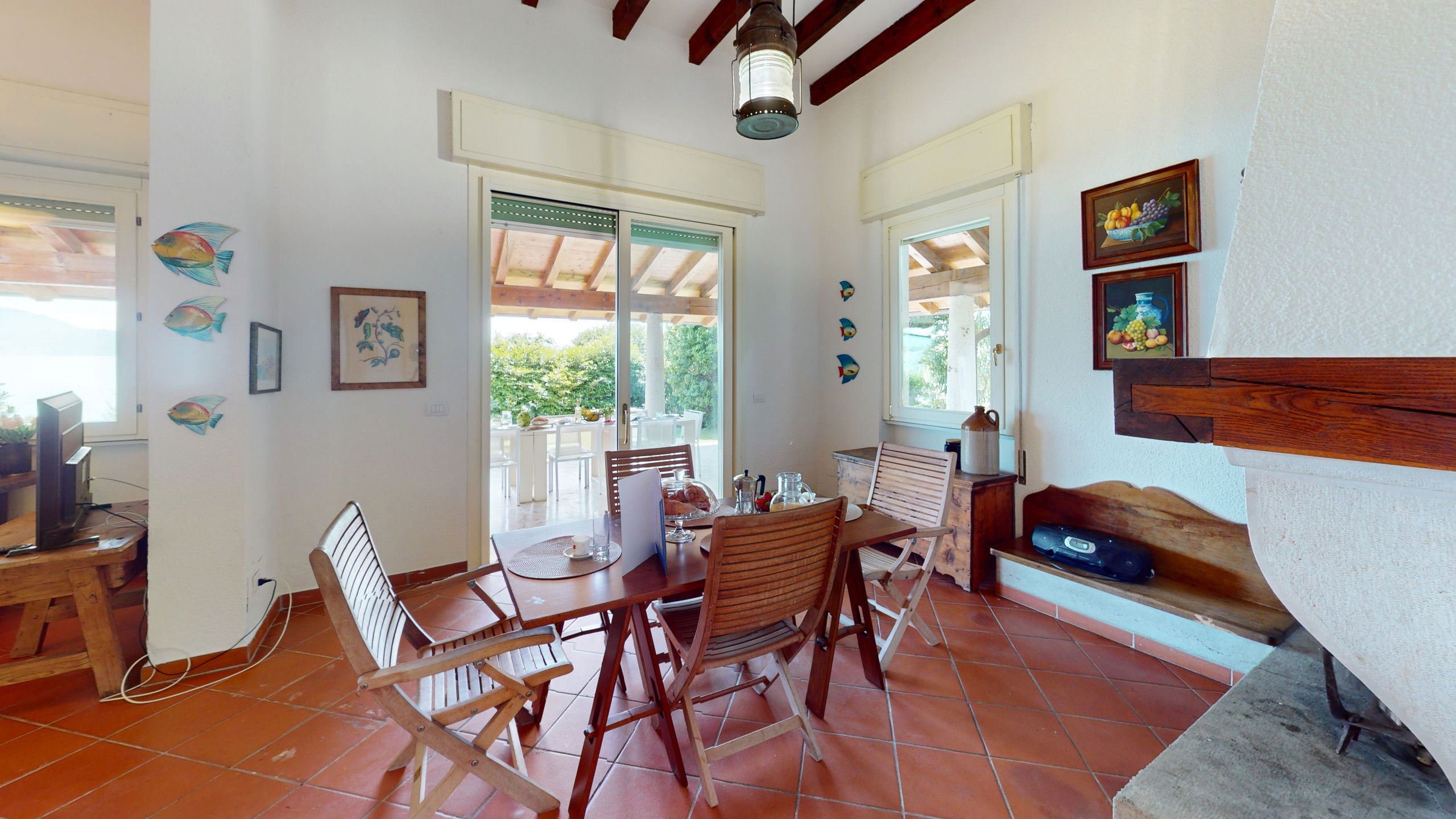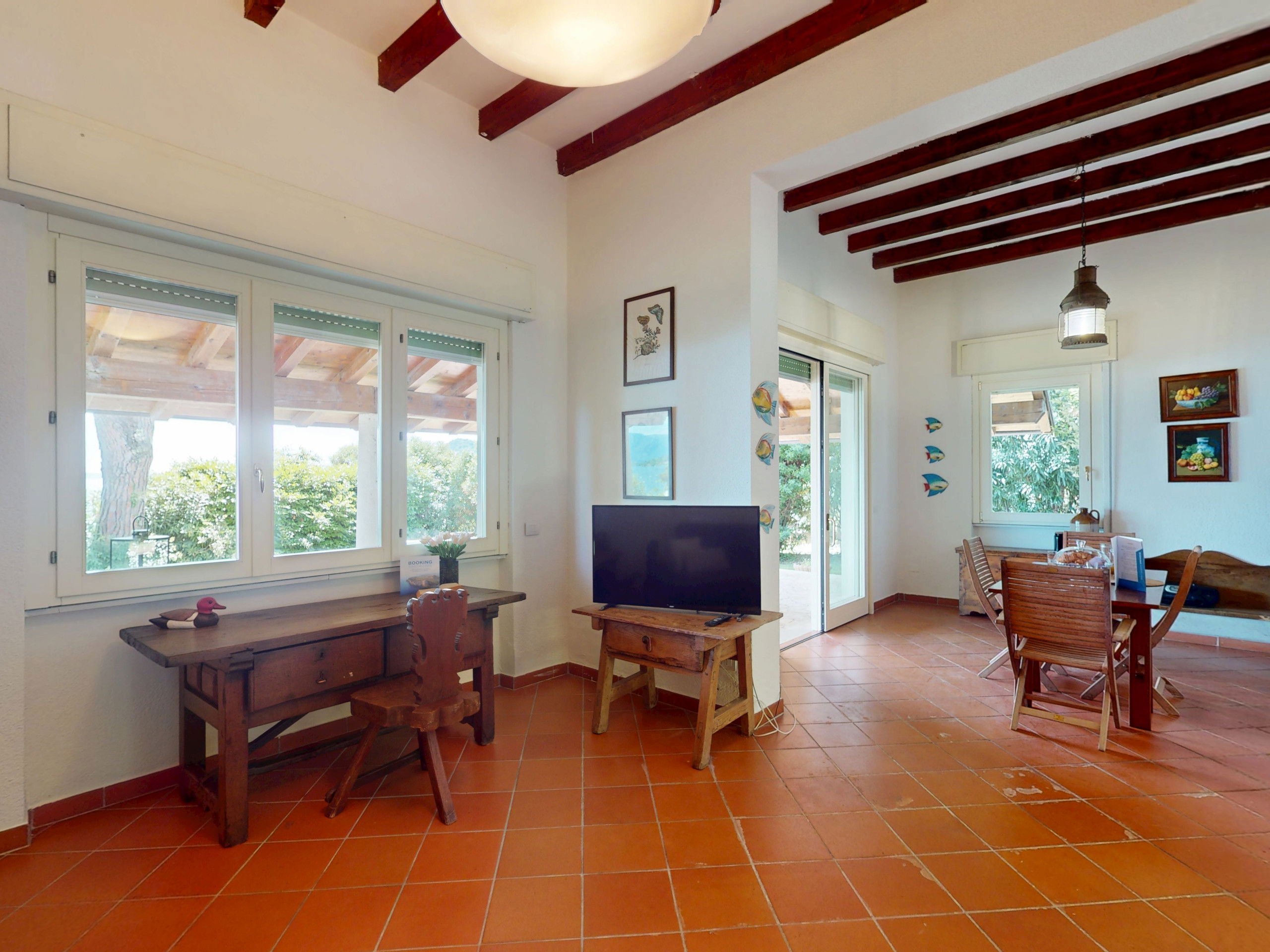 The spacious and bright living area with a typical Italian style welcomes your moments of relaxation, the large window offers a continuous view of the garden and the lake.