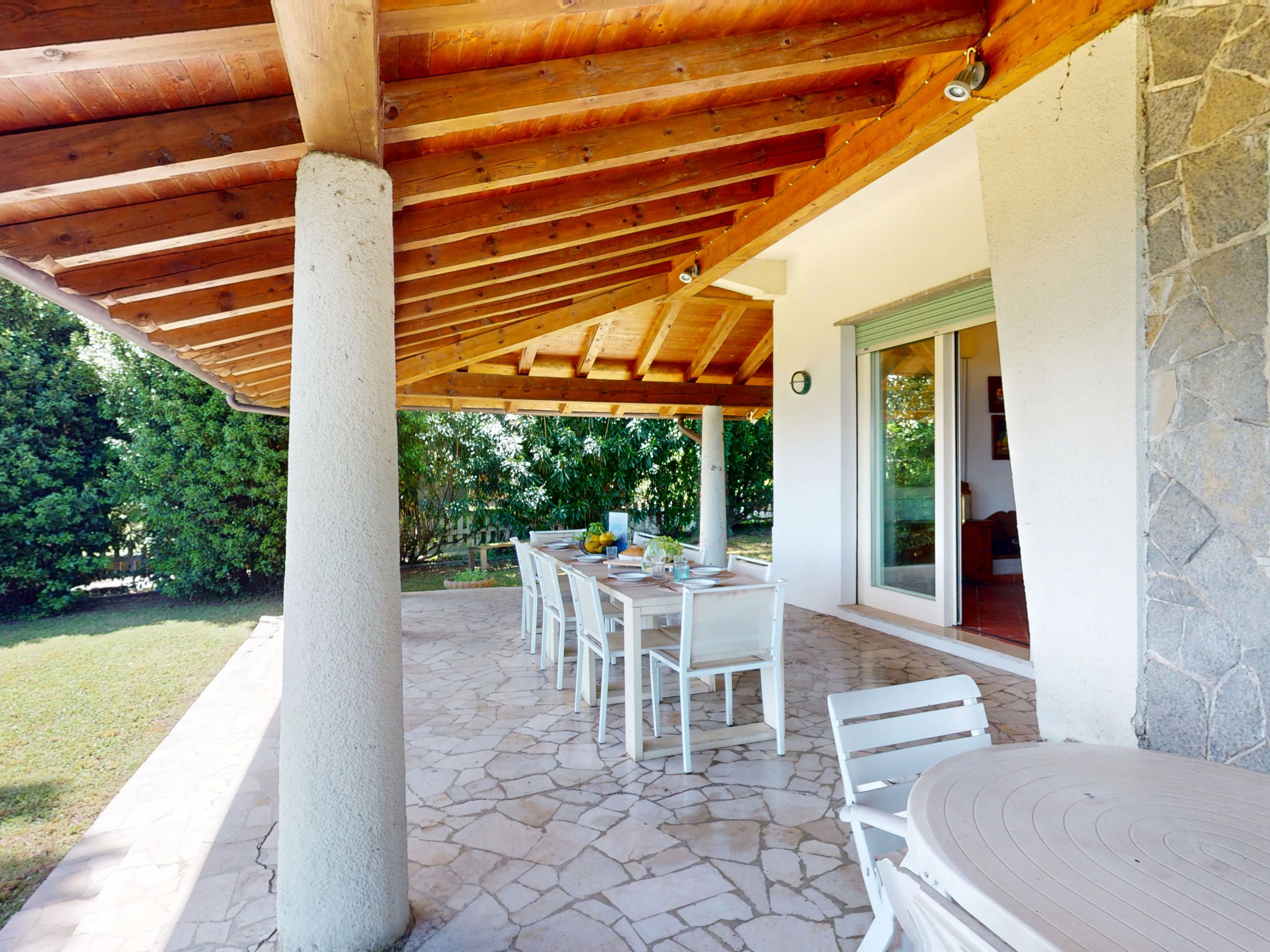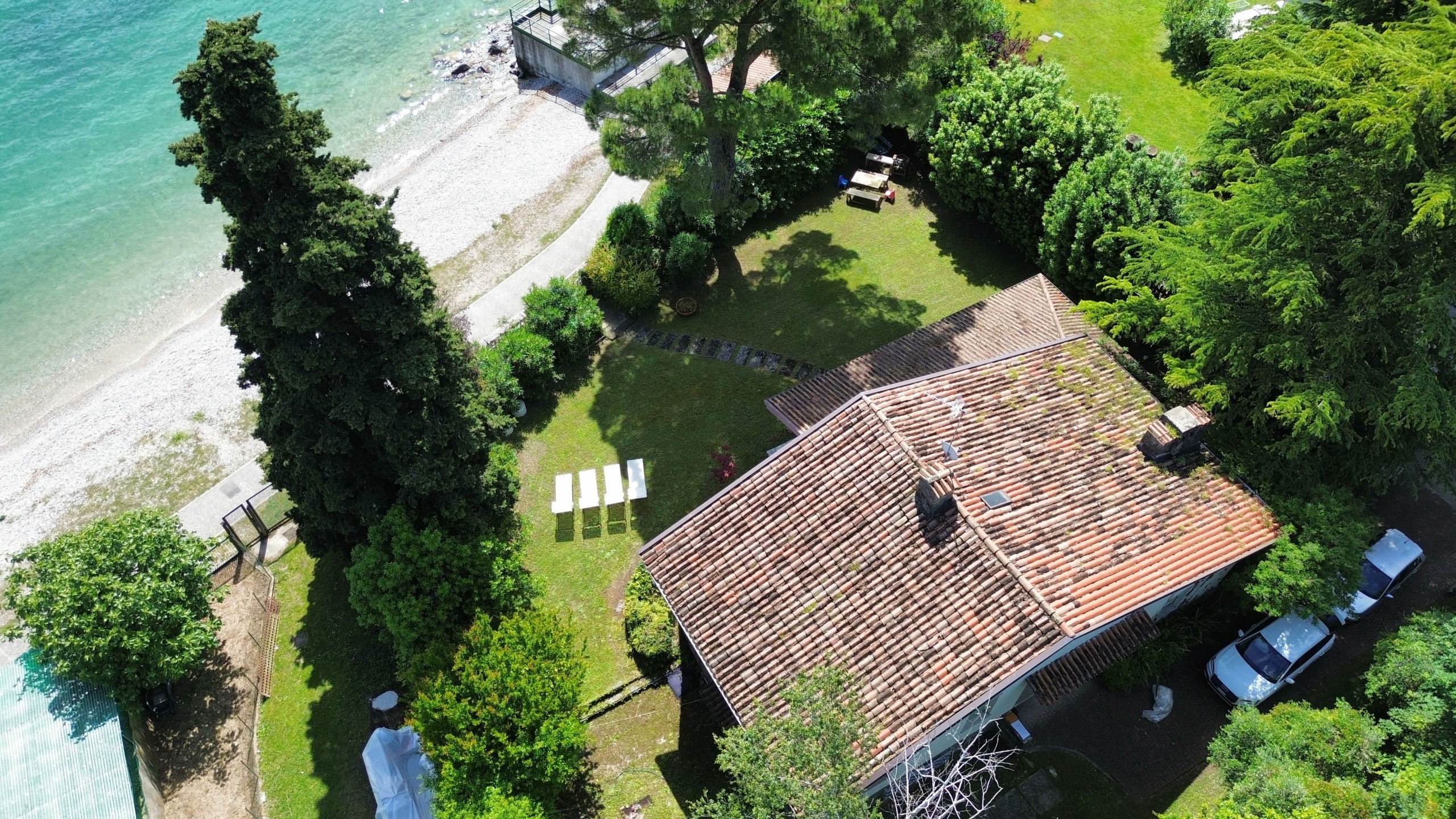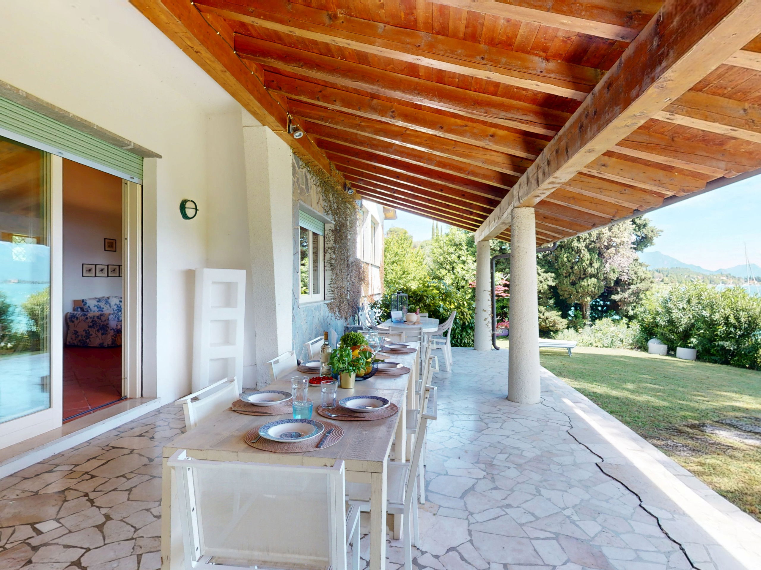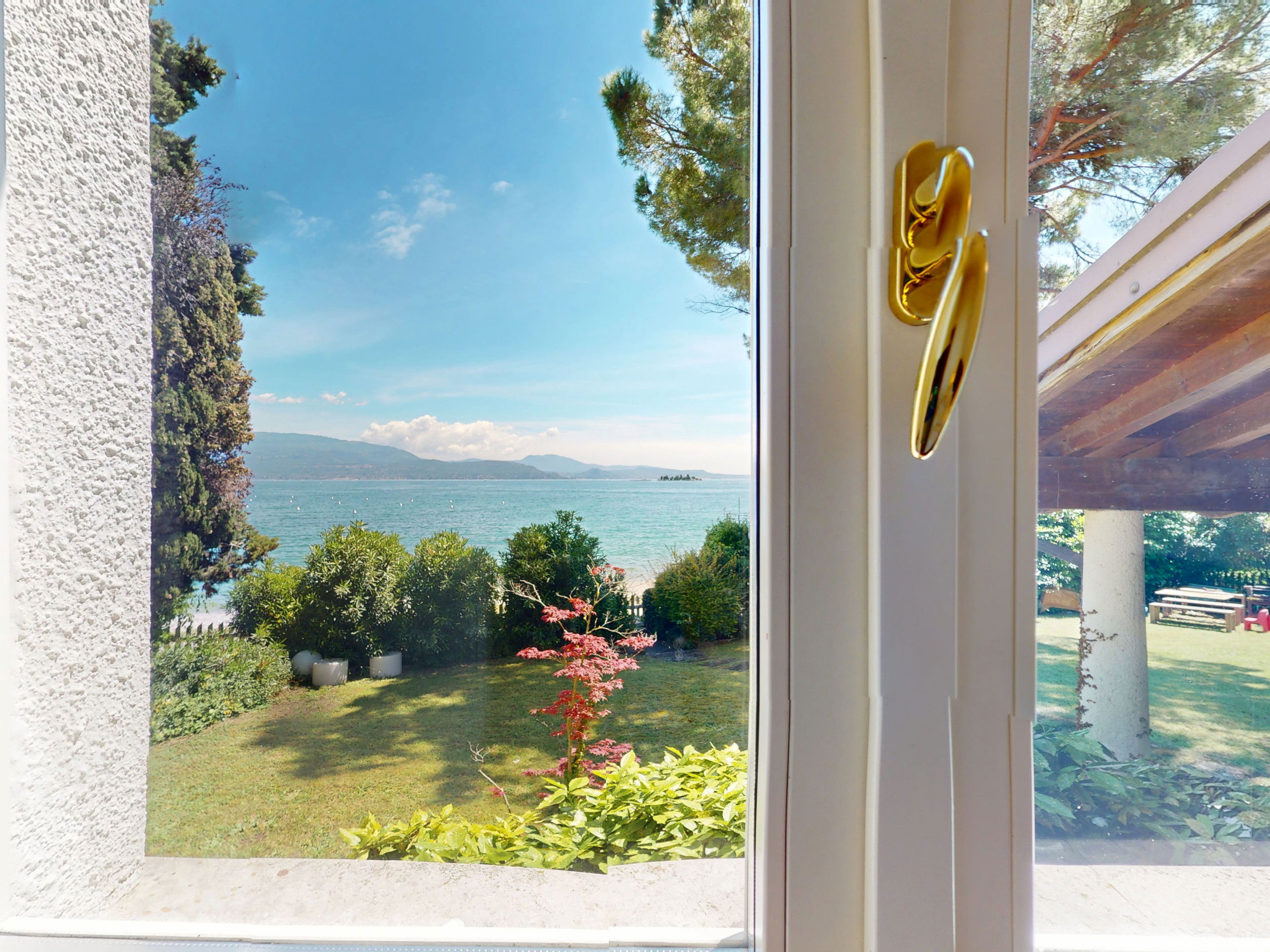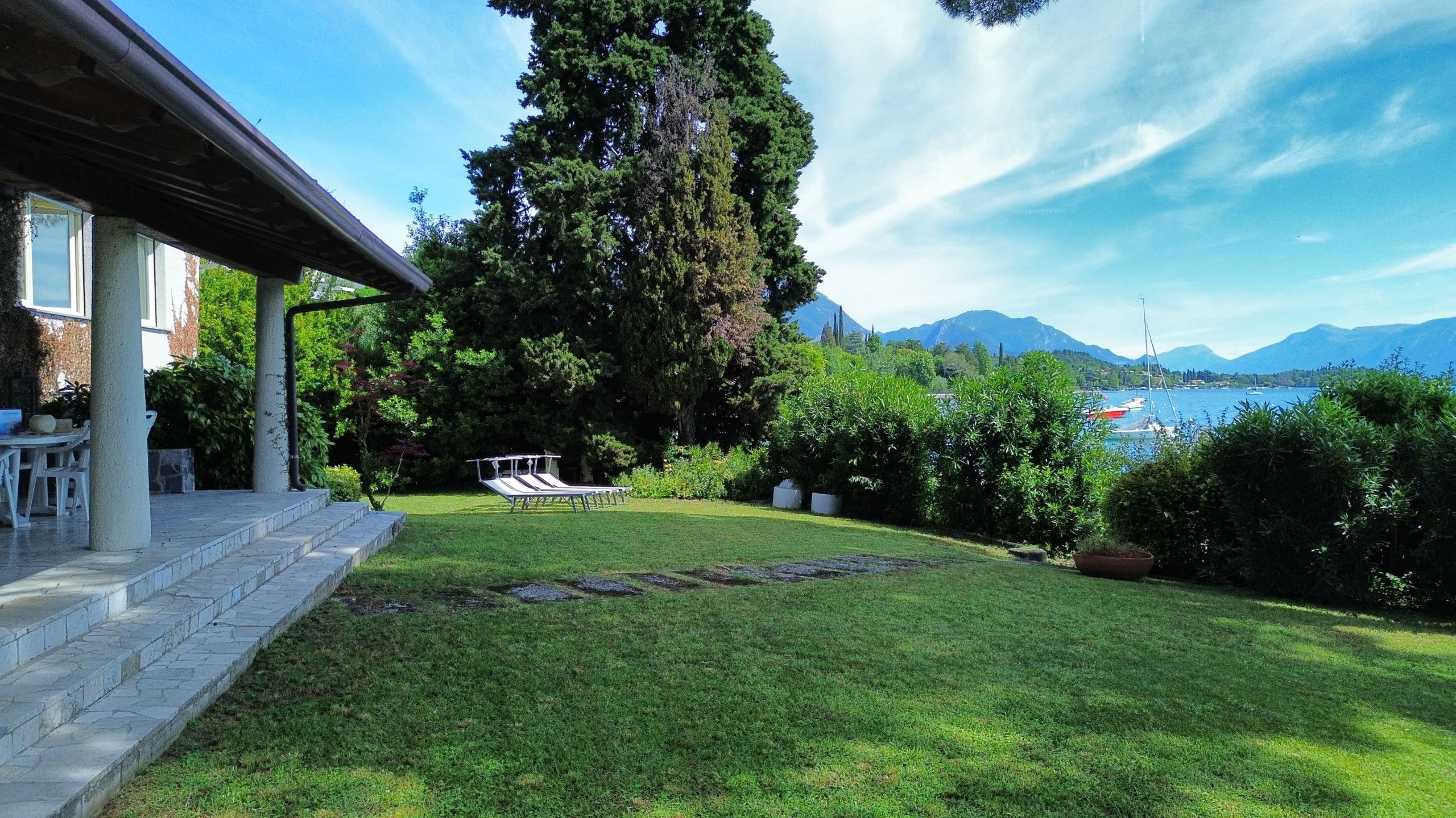 The heart of the house is the large external porch: furnished, spacious, overlooking a garden with direct access to the beach. A magical place to enjoy breakfast in the morning, relax at sunset or dine under the stars, immersed in the natural beauty of the most prestigious area of Lake Garda.