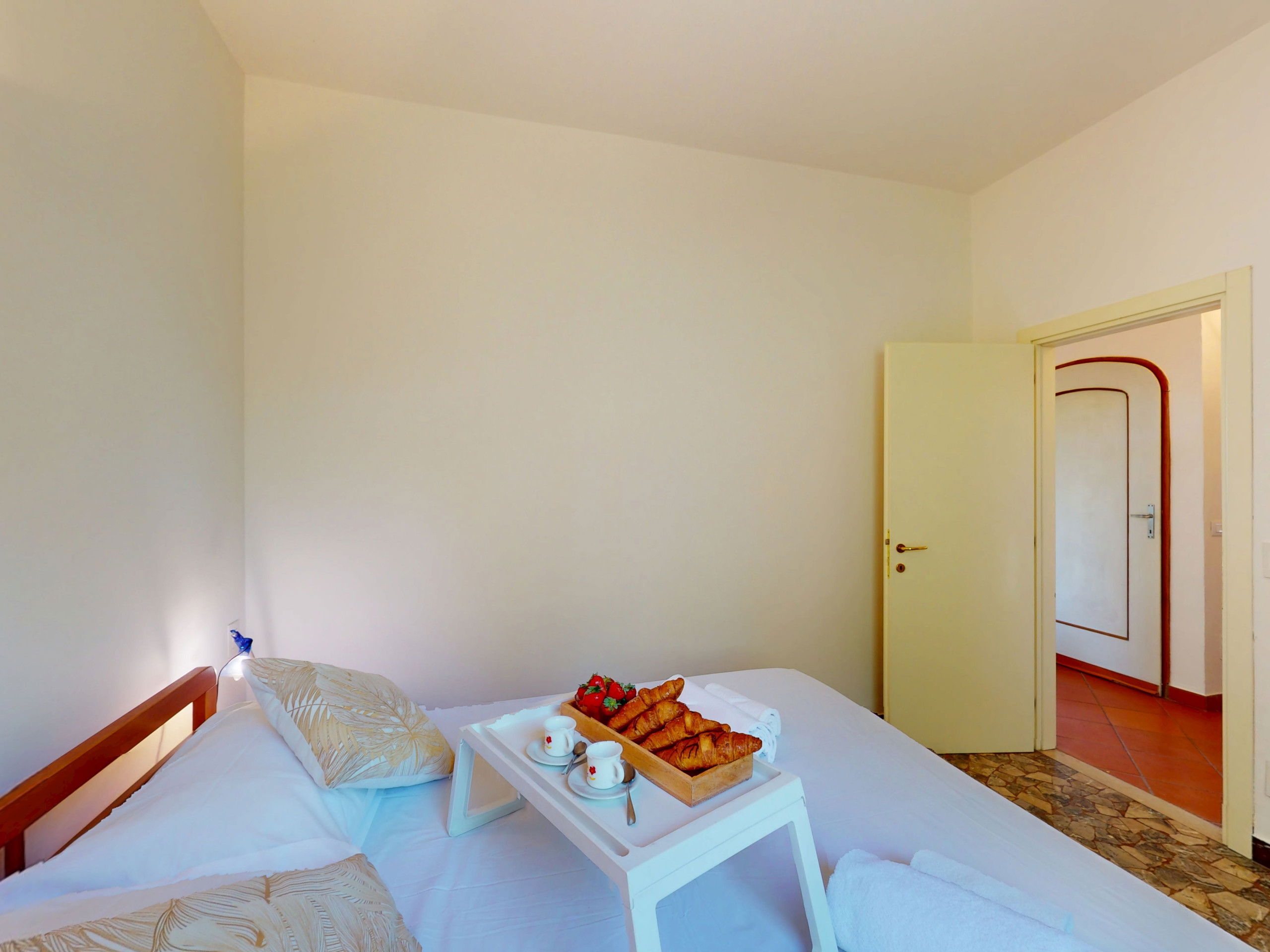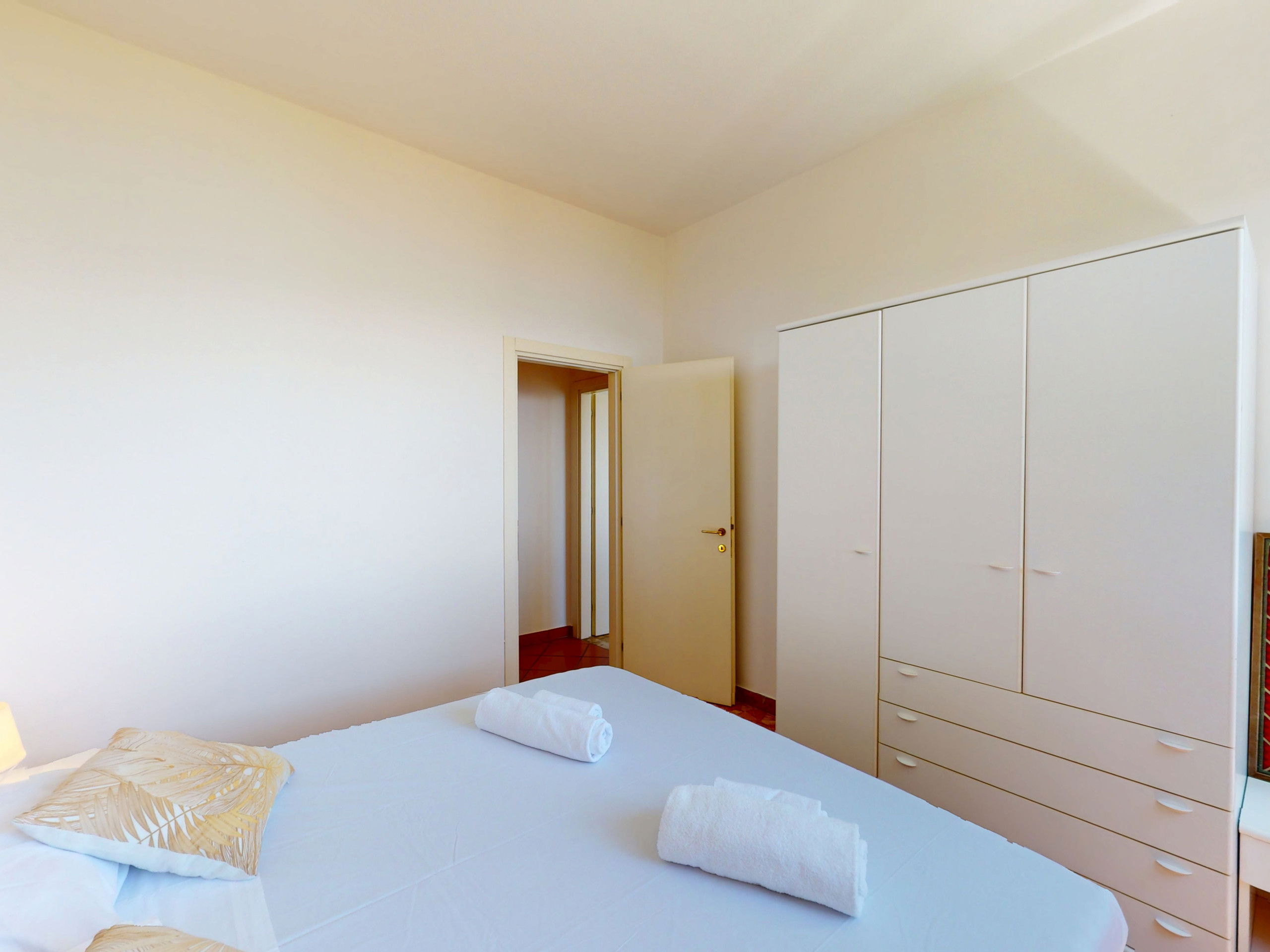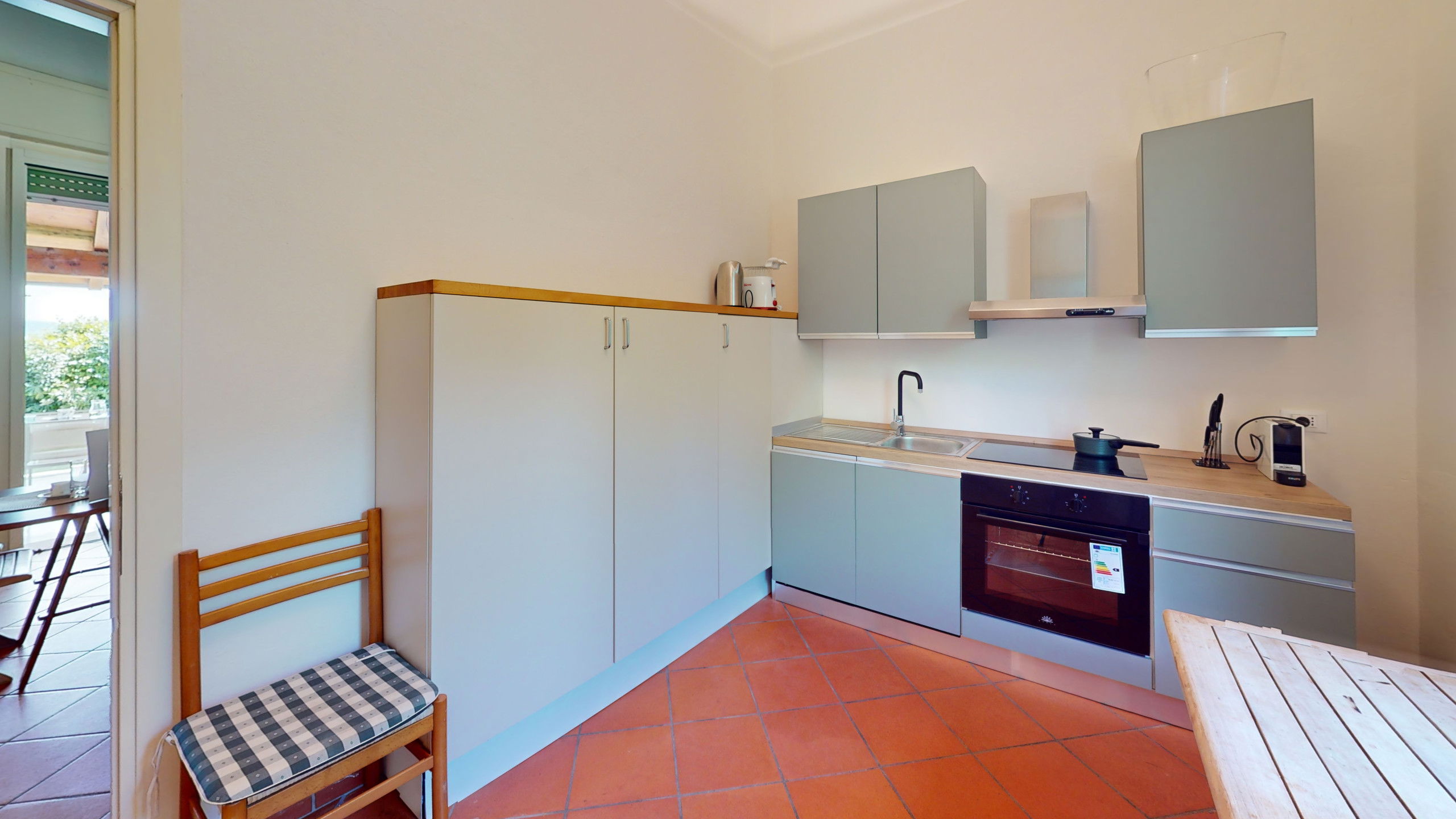 The kitchen, fully equipped with a dishwasher and separate from the rest of the living area, is perfect for those who love to cook even on holiday.
