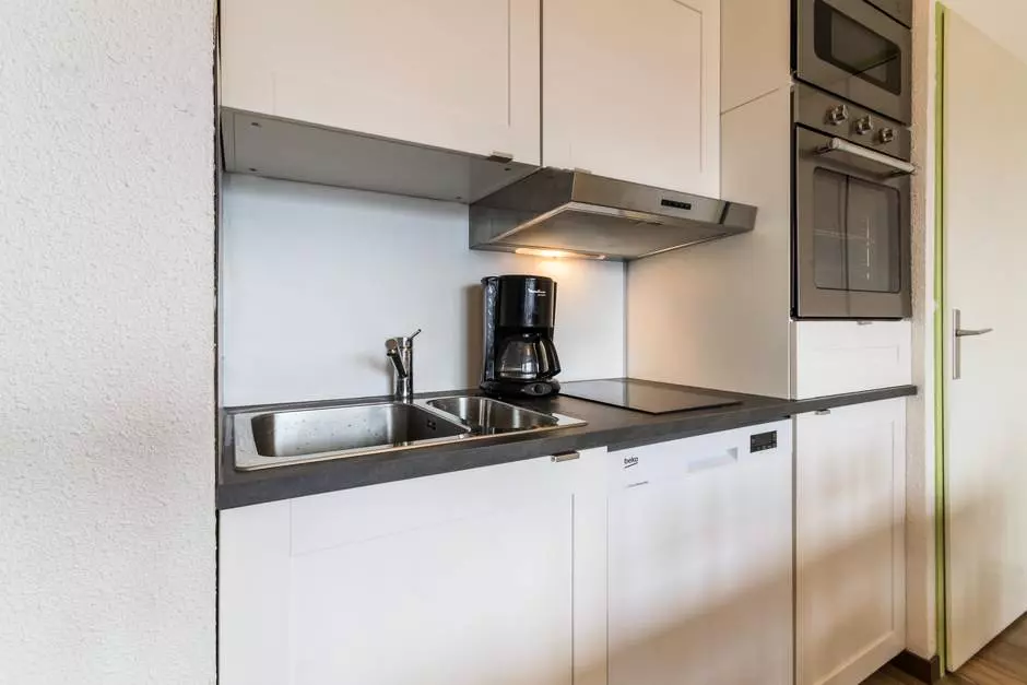 The open kitchen has 2 ceramic hobs, an oven, a dishwasher and a filter coffee maker.