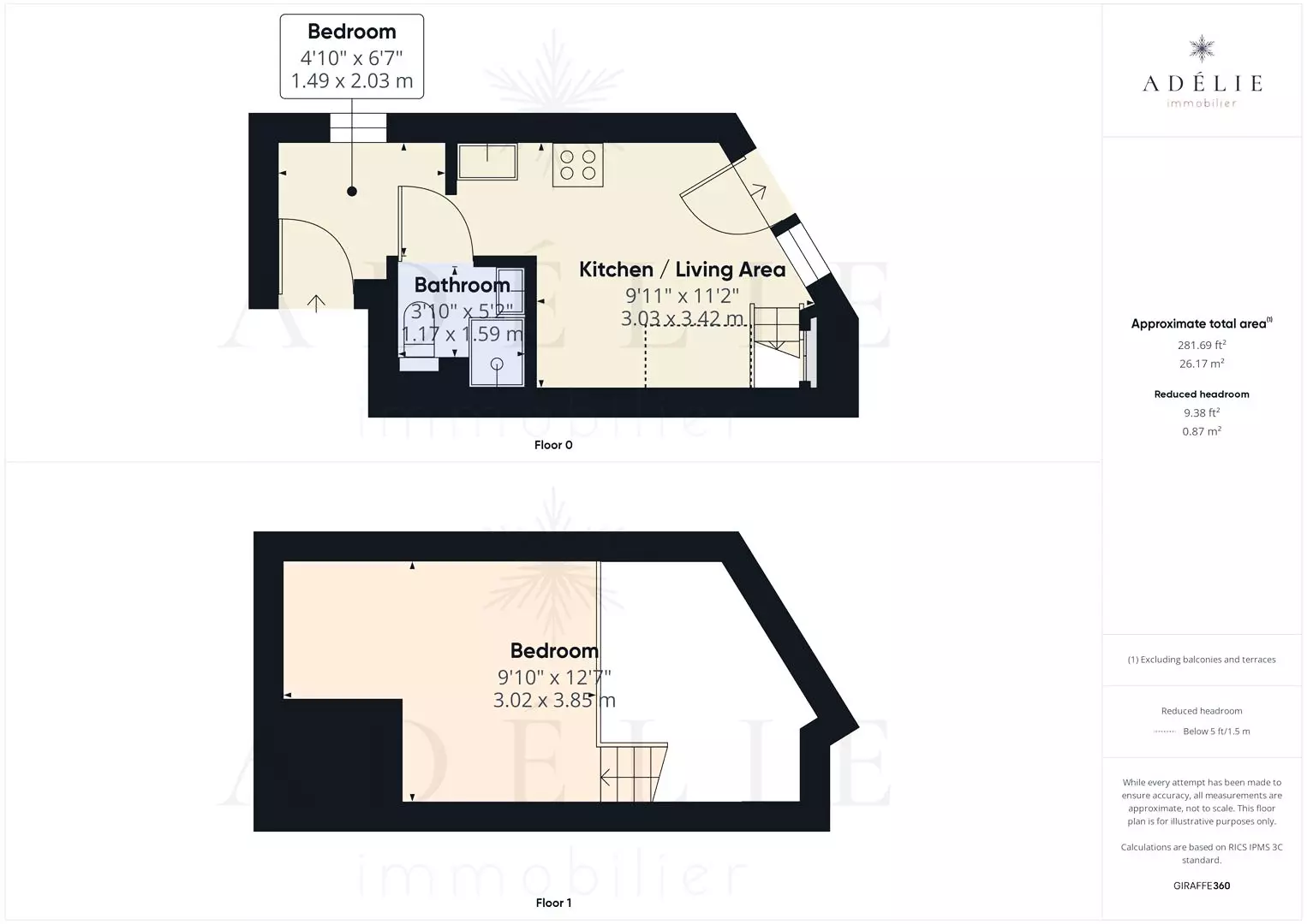 BQB418: MEZZANINE STUDIO for 4/5 people and rated 2*, 26 m2 located on the 4th floor with elevator.