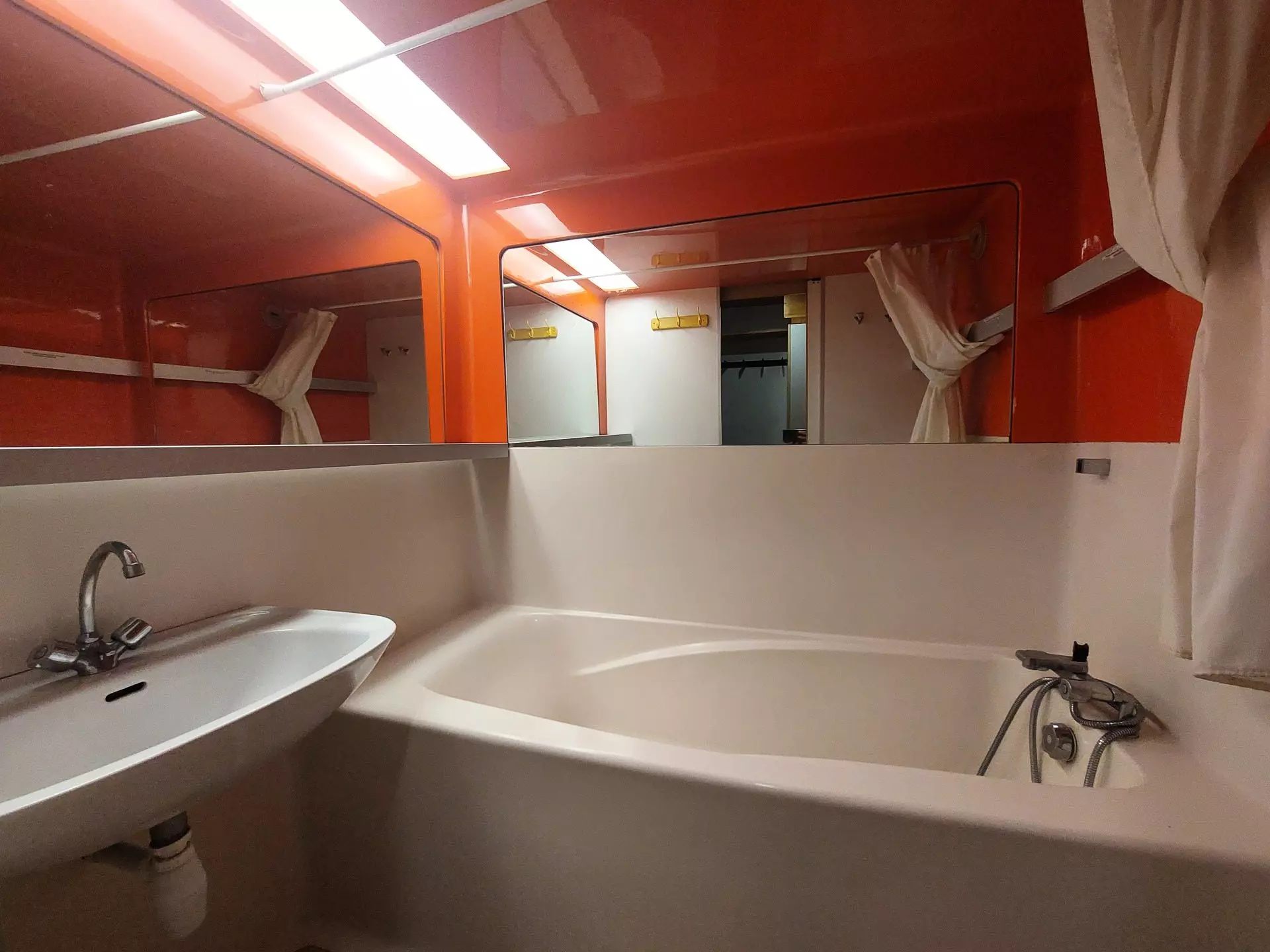 Upstairs, a toilet with a washbasin.