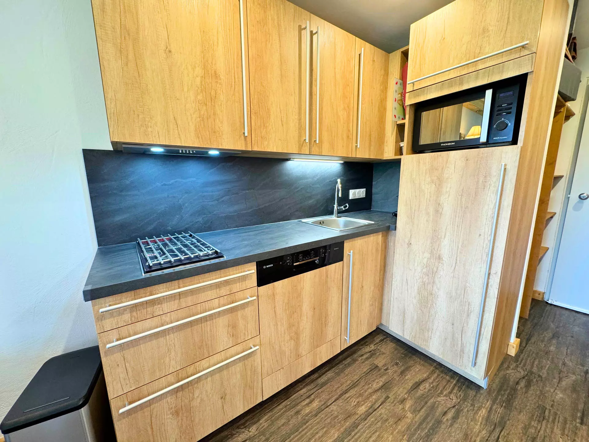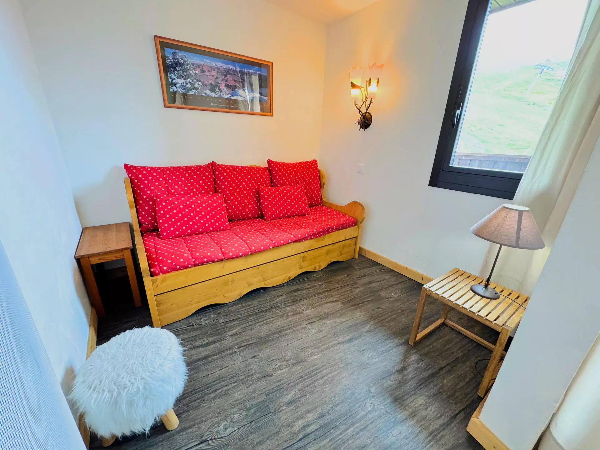 Soldanelles Residence building B (No. 312), 2 rooms for 4 people 28m², on the 3rd floor with elevator, balcony facing South/South-East, residence at the foot of the slopes. Space in covered parking (No. 12) for 1 car, max height 2.20m, underground parking access badge.