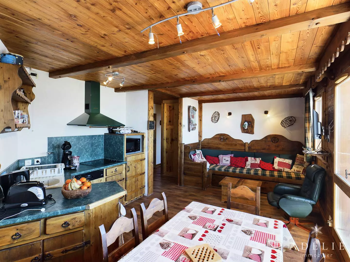 Fully equipped kitchen: ceramic hob, refrigerator, dishwasher, microwave.