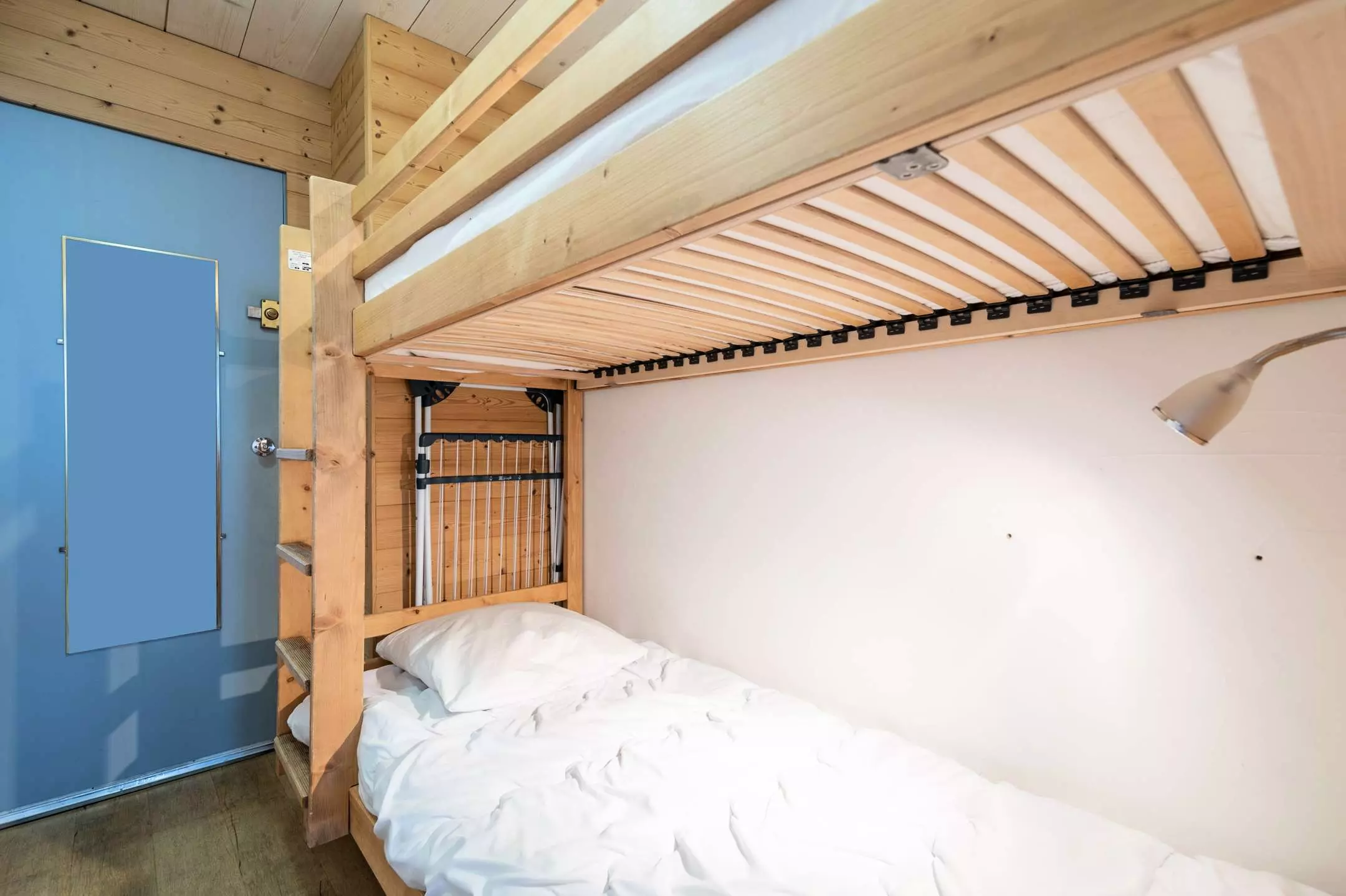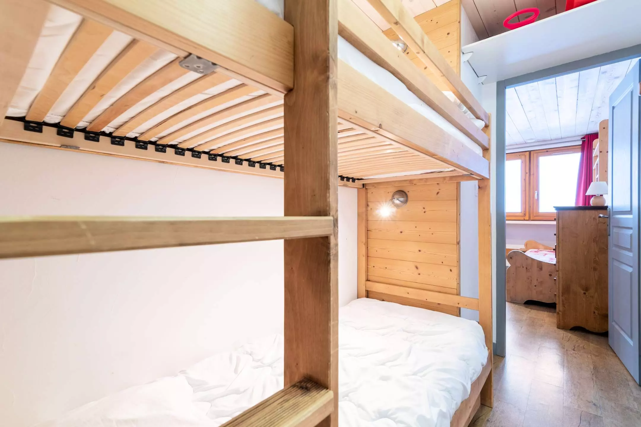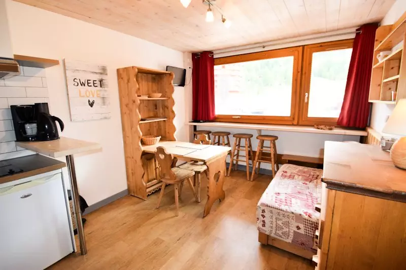 Studio Cabin 3/4 pers, 21m2, South exposure (no balcony), view of the slopes, level 1 with elevator. American kitchen in living room: 2 ceramic hobs, refrigerator, combination oven, dishwasher - Living room: dining area, TV, 2 pull-out beds (bench) - Cabin: in the entrance 2 bunk beds (80cm), - Bathroom: shower, WC included. Bedding: 2 single duvets, 1 double duvet - End of stay cleaning, sheets, towels and ski passes optional. Bright studio, very well exposed, south-facing. Floors: plastic - NON-SMOKING APPT AND PETS NOT ALLOWED