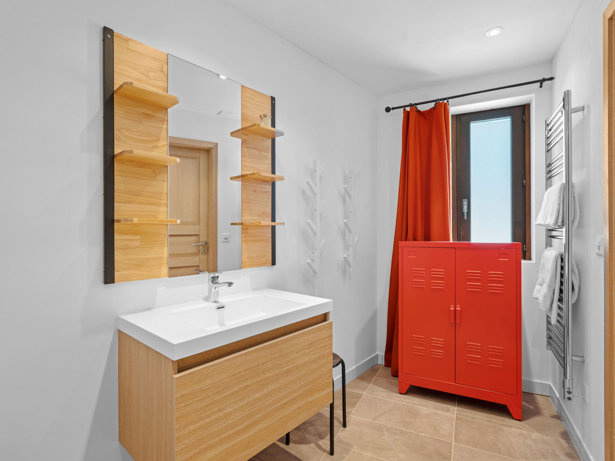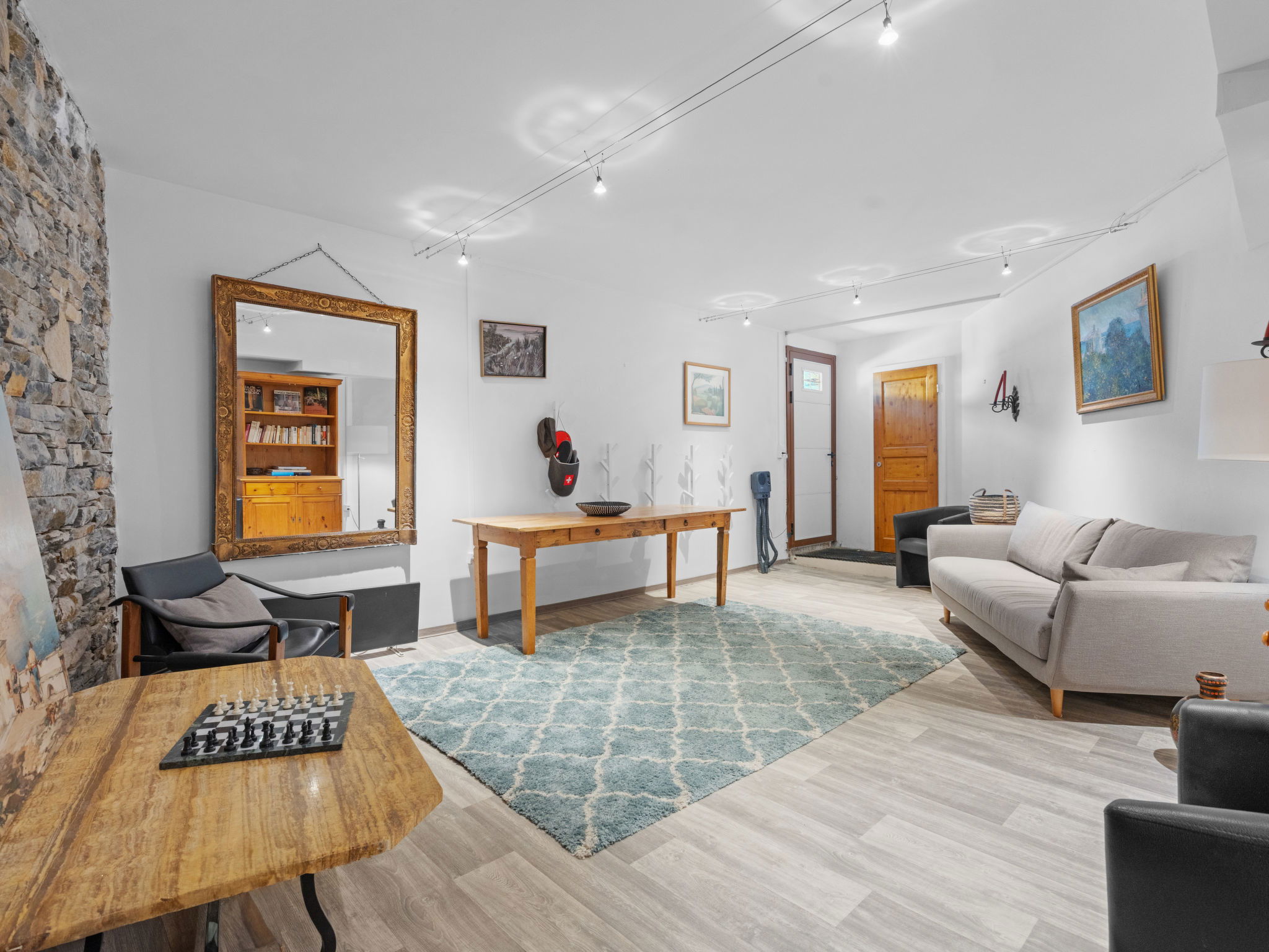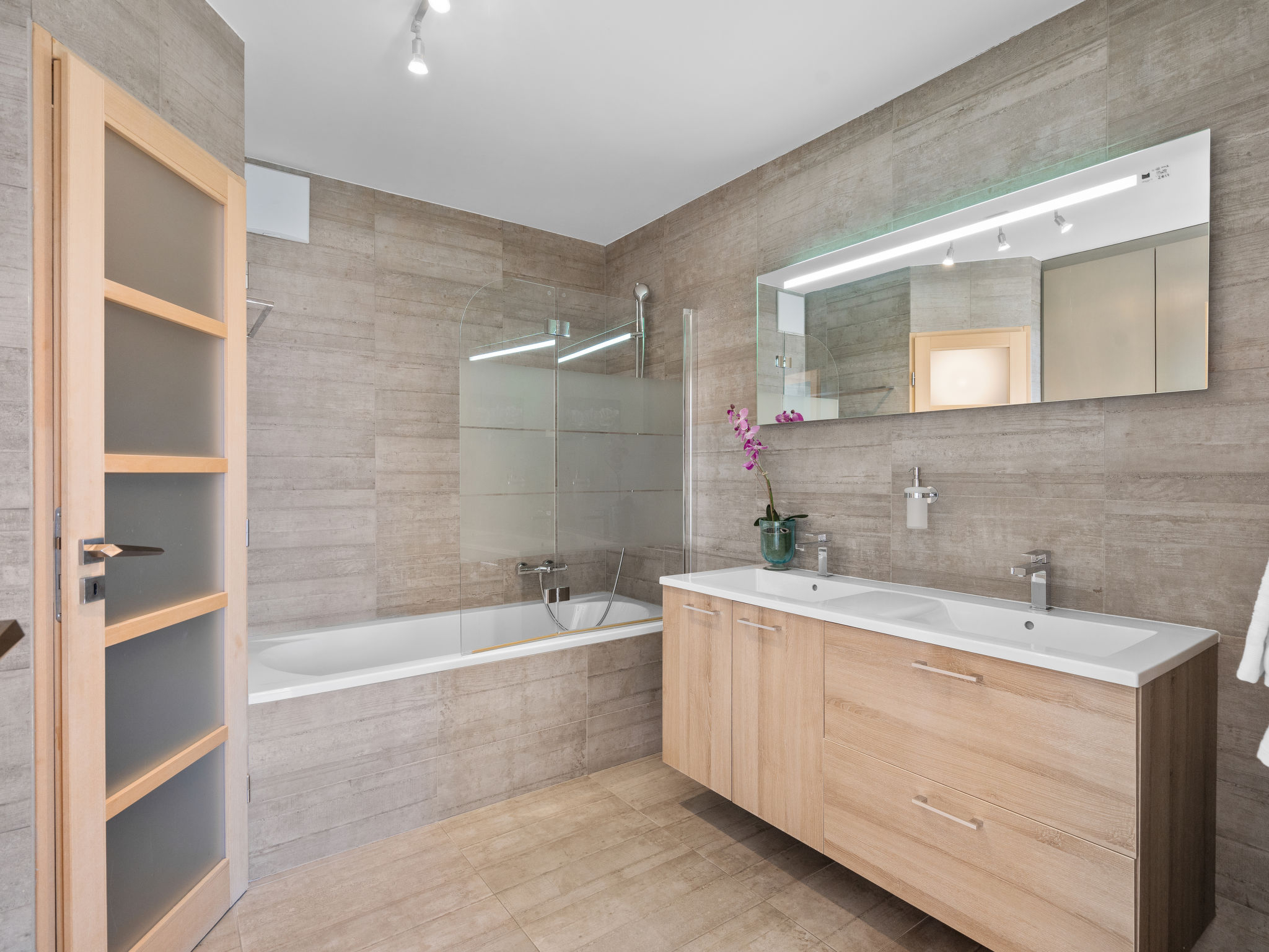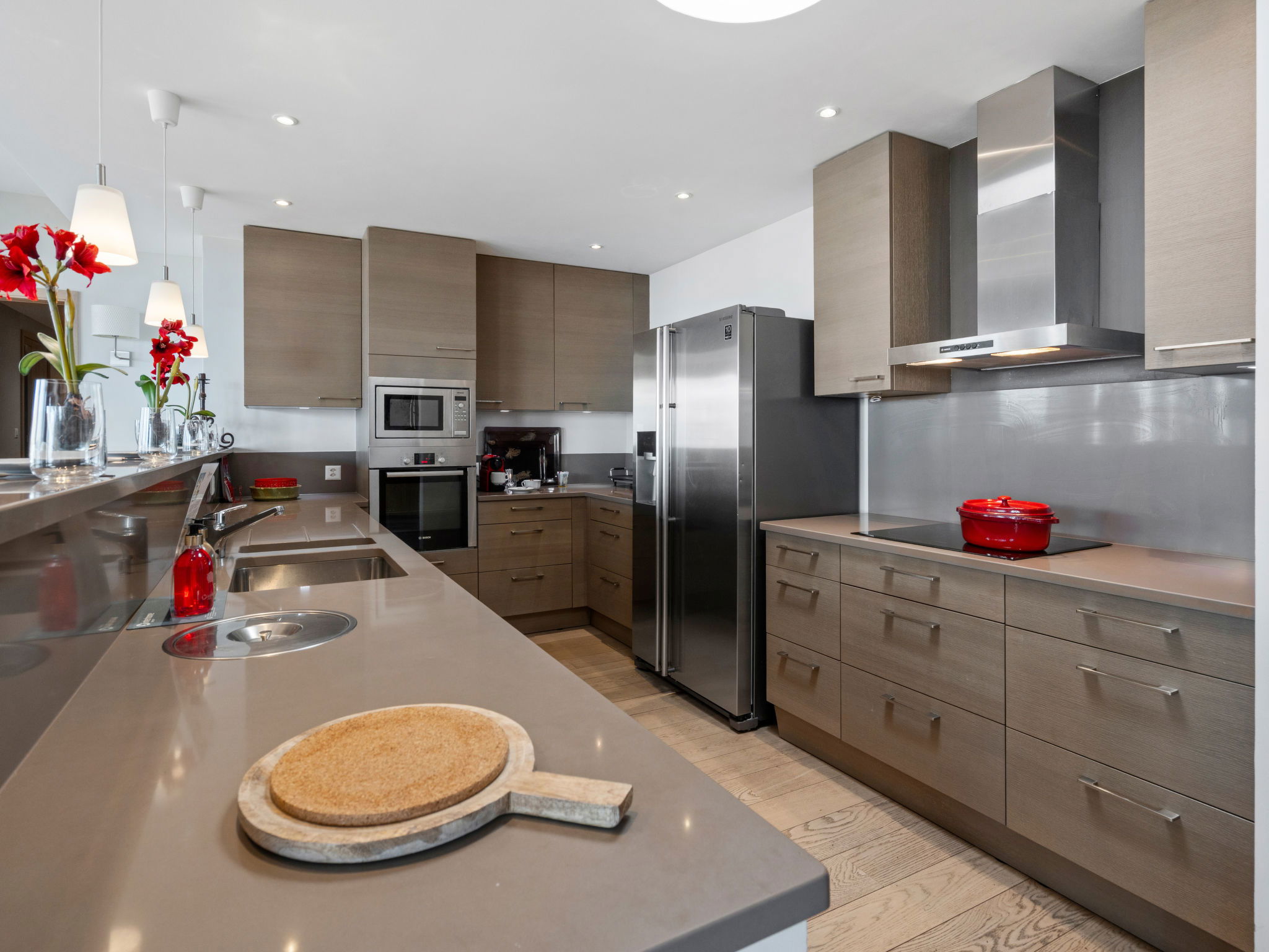 "Jeanne D'Arc LOFT COMBI", 10-room maisonette 350 m2, south facing position. Spacious, comfortable and tasteful furnishings: large living/dining room with open-hearth fireplace, dining table and cable TV. Exit to the terrace. 1 room with 1 french bed (160 cm, length 200 cm), bath/WC, double hand-basin and cable TV. 1 room with 2 beds (80 cm, length 200 cm), shower/WC. 1 room with 2 beds (80 cm, length 200 cm), shower/WC. Exit to the terrace. 1 room with 2 beds (90 cm, length 190 cm), shower/WC. 1 room with 1 french bed (160 cm, length 200 cm), bath/WC and double hand-basin. Exit to the terrace. 1 room with 1 double bed (2 x 90 cm, length 200 cm), shower/WC. Exit to the terrace. Open kitchen (oven, dishwasher, 4 ceramic glass hob hotplates, toaster, kettle, microwave, freezer, electric coffee machine, Capsules for coffee machine (Nespresso) extra, raclette grill, fondue Set (chinoise)) with bar. Sep. WC. On the lower ground floor: (spiral staircase) large playroom with bar. Large lounge. Sep. WC, Sauna. Large terrace 50 m2, south facing position, large terrace 50 m2, south facing position and, east facing position. Terrace furniture, barbecue (portable). Very beautiful panoramic view of the lake, the mountains, the valley and the countryside. Facilities: washing machine, dryer, iron, hair dryer. Internet (WiFi, free). Garage space n 21 (1 car) at 350 m, height 200 cm, width 290 cm. Please note: suitable for families. Non-smoking house. Private entrance, no lift. Combination (connecting door) from 2 apartments. Electric stairlift available.