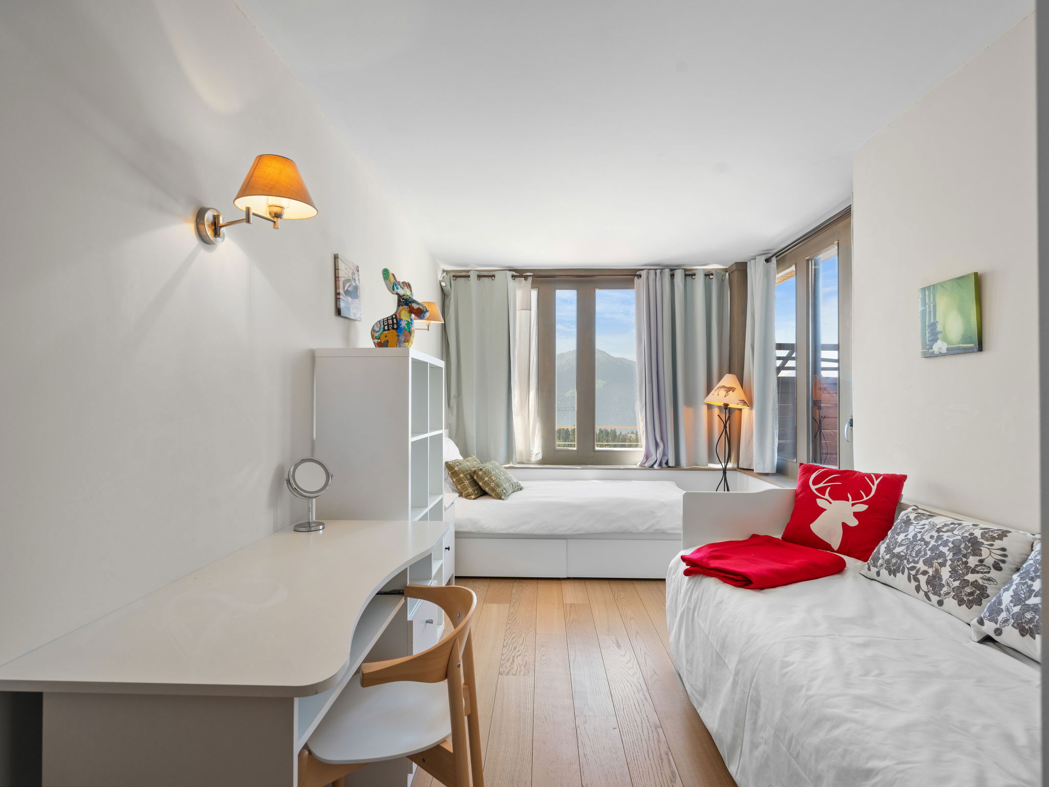 Very beautiful, cosy residence "Jeanne d'Arc". 200 m from the centre of Crans-Montana, in a sunny position, excellent location: right in the centre but still quiet, 20 m from the lake, 650 m from the skiing area, south facing position. For shared use: indoor pool heated (90 m2, seasonal availability: 01.Jan. - 18.Apr. and 01.Jun. - 31.Dec. pool opening hours: 08:30-20:00). Tennis (01.Jun. - 30.Sep.). In the house: lounge, WiFi, sauna (extra). Lift, storage room for skis, central heating system. Parking (limited number of spaces). Shop 500 m, supermarket 400 m, restaurant 150 m, bar 50 m, 5 minute walk to the centre, bus stop "Lac Grenon" 350 m, railway station "Funiculaire Montana Gare" 1.2 km, bathing lake "Moubra" 1.2 km. Golf course (18 hole) 1.7 km, tennis 1.2 km, riding stable 1.6 km, skisport facilities 650 m, cross country ski track 1.7 km, ice rink 500 m, children's playground 250 m. Nearby attractions: Casino 500 m. Well-known lakes can easily be reached: Moubra 1.2 km, Etang Long 1.2 km, Grenon 20 m. Please note: ski bus (free of charge). Additional accommodations can be booked. The swimming pool (about 26°) is closed for 30 days for cleaning in Spring. Sauna: opening and schedule same as the swimming pool.