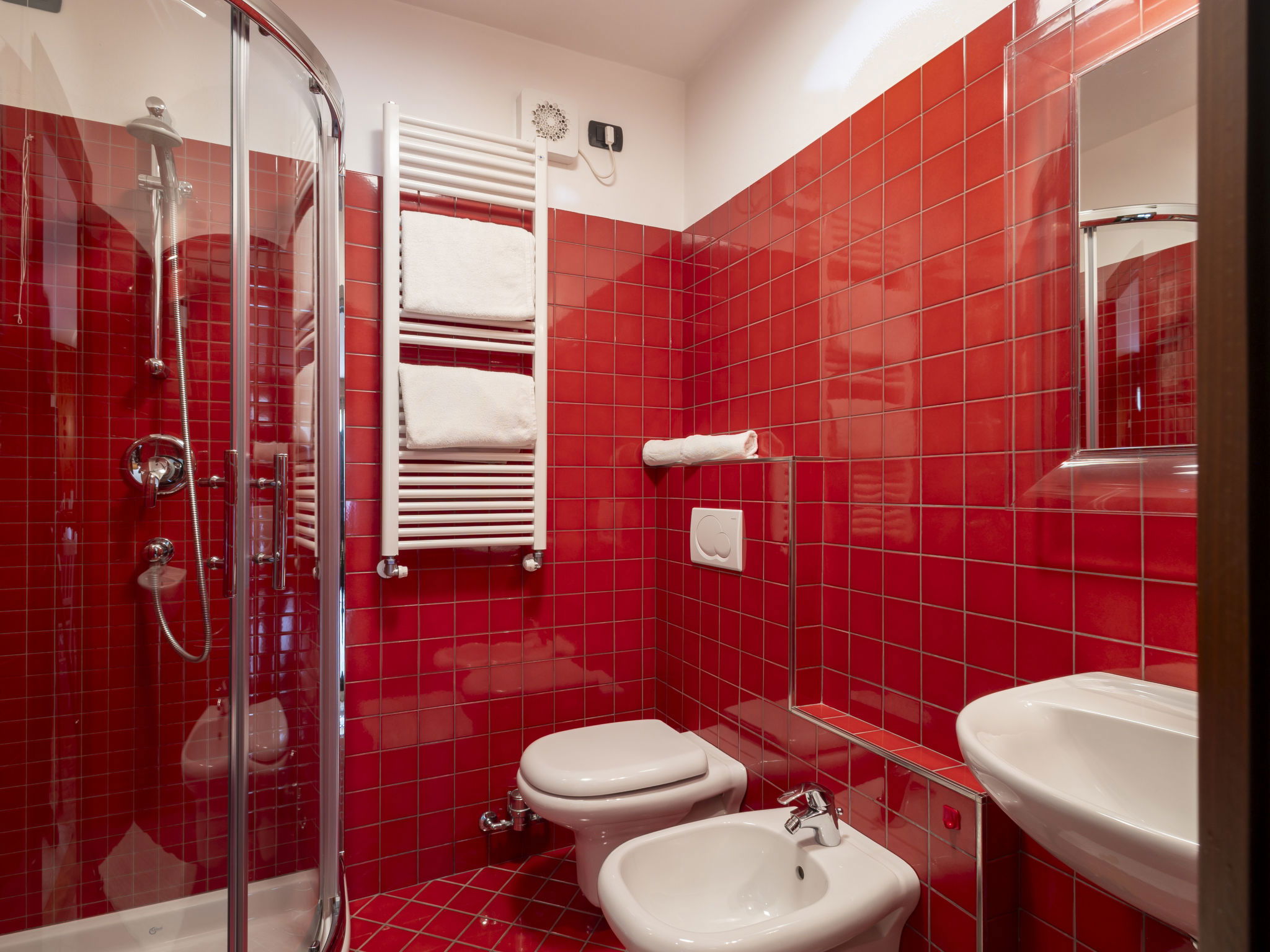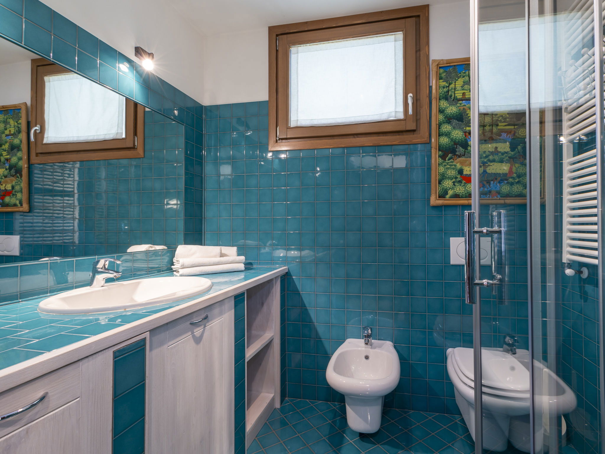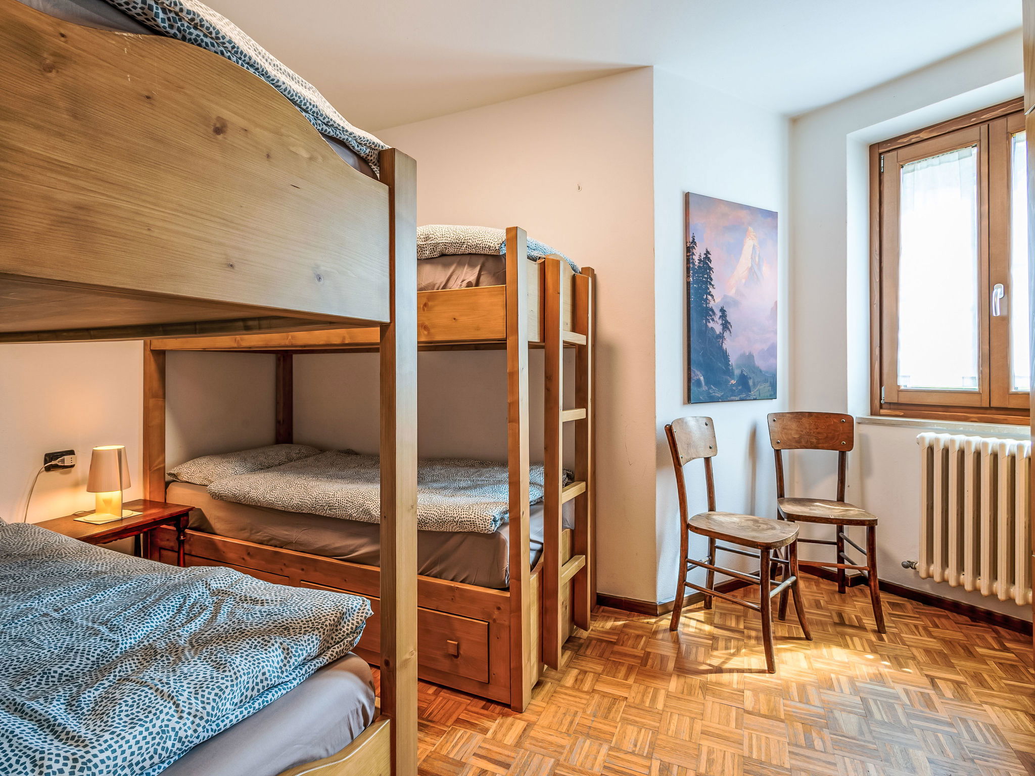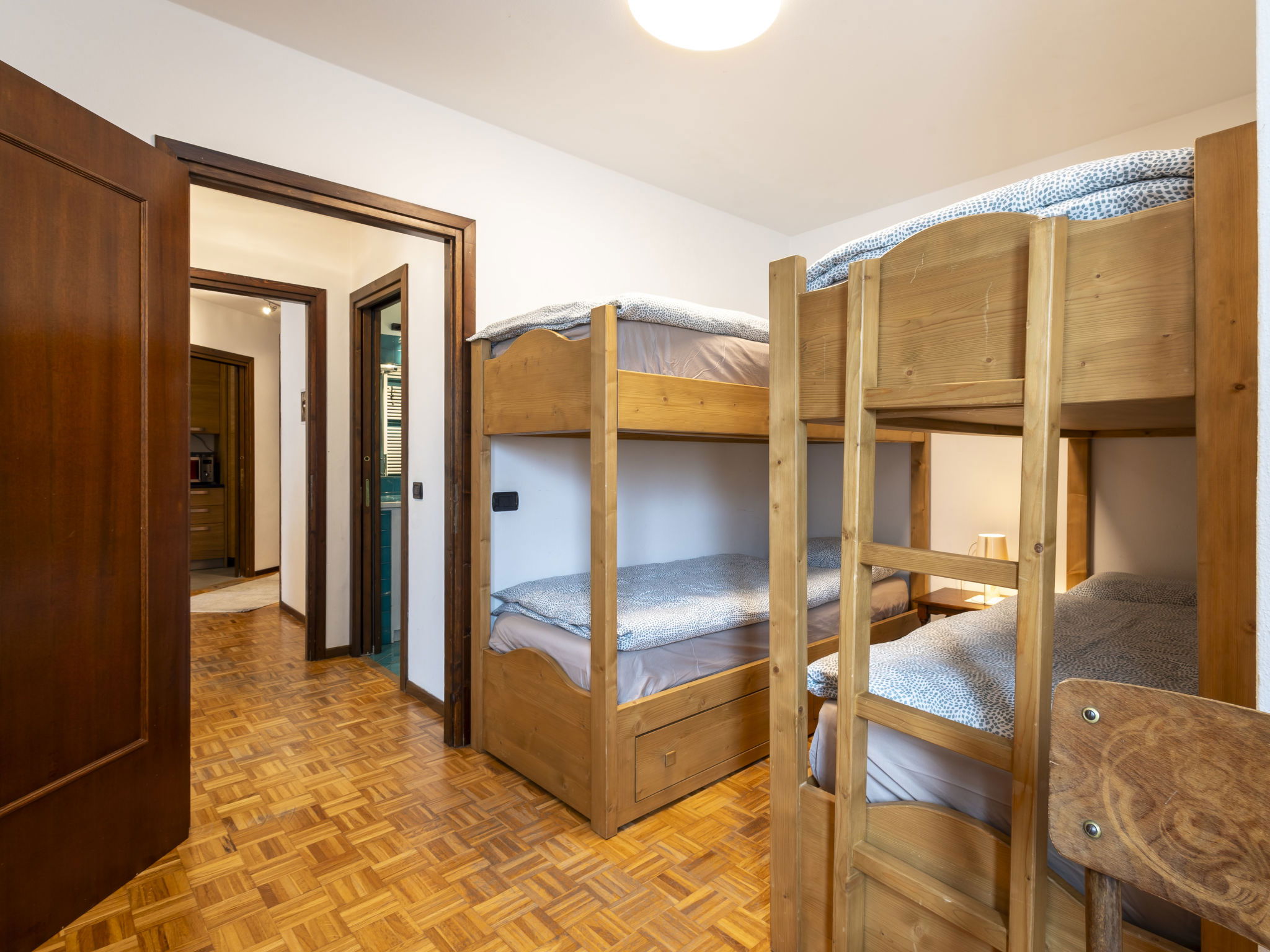 3-room apartment 75 m2, on the ground floor, south facing position. Bright, practical and comfortable furnishings: living/dining room with dining table and TV. Exit to the terrace. 1 room with 2 x 2 bunk beds. 1 double bedroom. Exit to the terrace. Small kitchen (oven, dishwasher, 4 induction hot plates, toaster, kettle, microwave, freezer, electric coffee machine, Capsules for coffee machine (Nespresso) free). 2 showers/bidet/WC. Heating. Parquet floors. Terrace. Terrace furniture. View of the mountains and the garden. Facilities: washing machine, children's high chair, baby cot, hair dryer. Internet (WiFi, free). Please note: suitable for families. Non-smokers only. Maximum 2 pets/ dogs allowed. Fire extinguisher. IT014009C26UW6E9PD