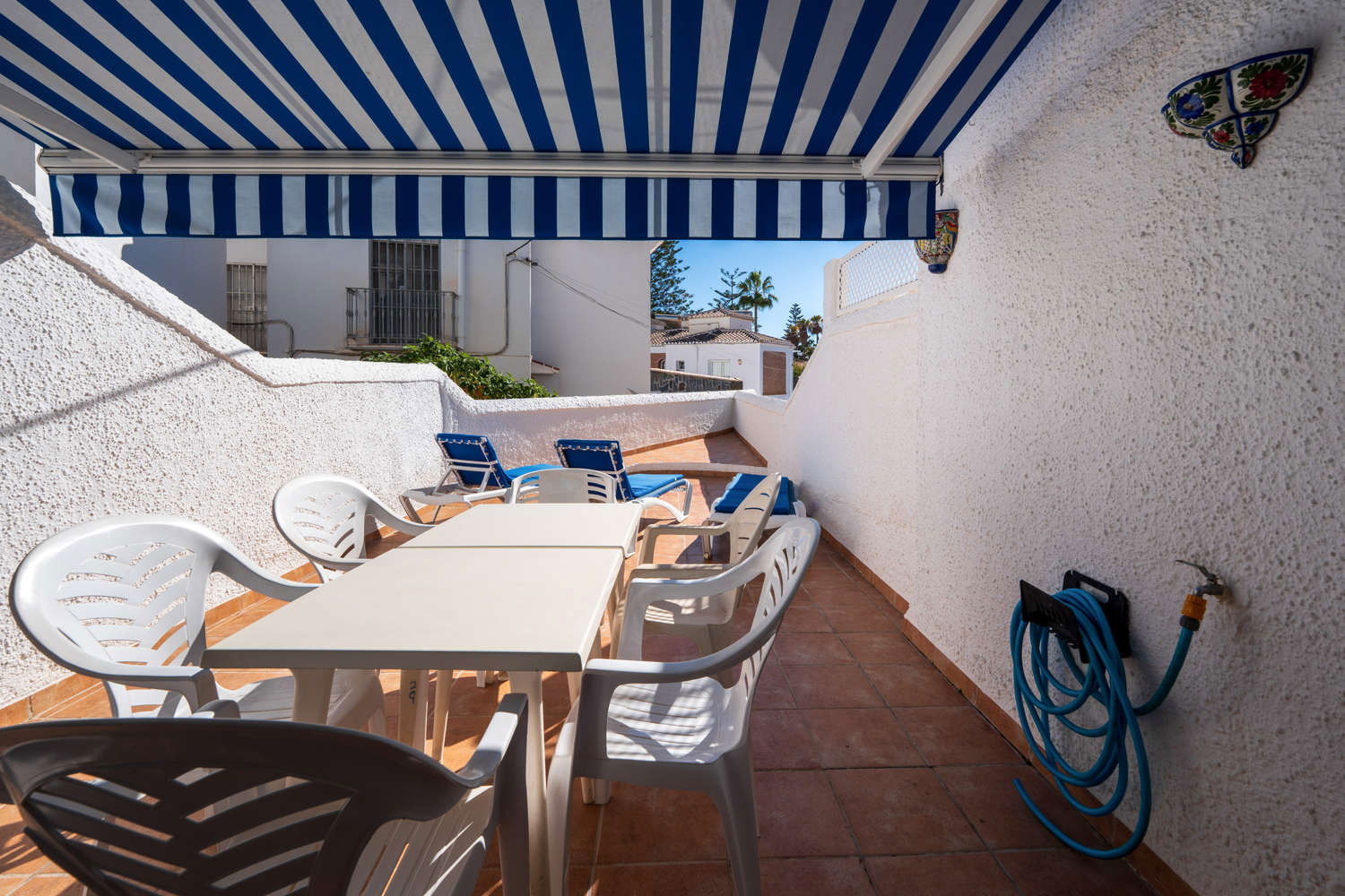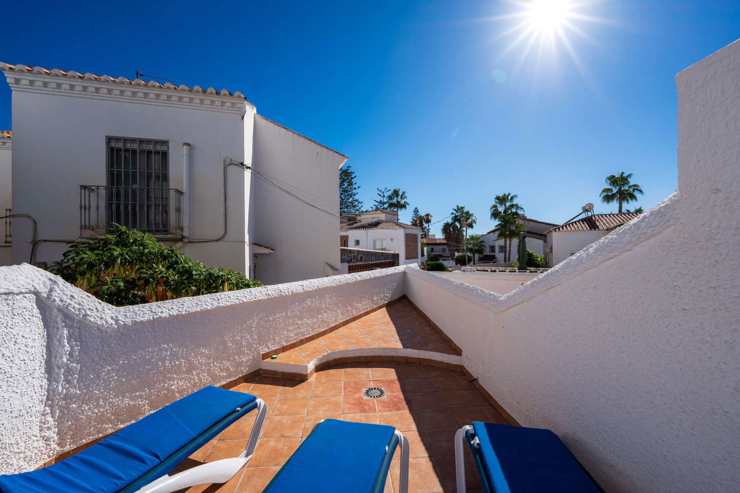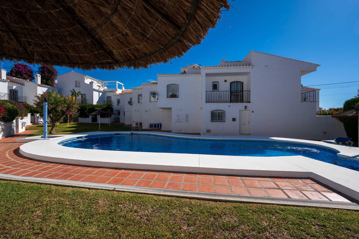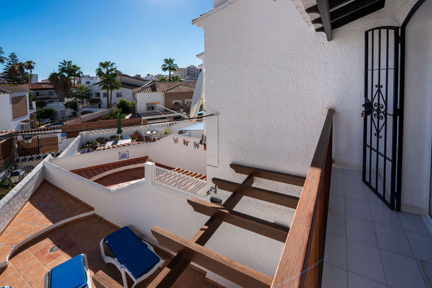 Semi-detached house in the Parador Nerja area with private terrace and swimming poolEnjoy the comfort of this house located in one of the most sought-after areas of Nerja. Upon entering, you will find a space designed for practical living: you can prepare breakfast in your fully equipped open-plan kitchen and step directly onto the terrace with sun loungers to enjoy the morning sun without leaving home. This semi-detached property combines the spaciousness of a family home with proximity to the town's key amenities, ideal for those seeking independence and sunshine in an established residential area. Functional layout on two levels for 4 peopleThe house has 80 m² optimised for relaxation. The 2 bedrooms with single beds are positioned to ensure privacy, supported by a full bathroom with bathtub and an additional toilet, which streamlines family logistics in the mornings. The kitchen has an oven, washing machine and dishwasher, allowing for long stays in complete comfort. The living room, equipped with Wi-Fi for teleworking and satellite TV, is a cool meeting place thanks to the air conditioning system. Private 15 m² terrace and access to communal swimming pool The private outdoor area is the distinguishing feature of Los Pinos 29. The terrace is large enough for al fresco dining or relaxing on the sun loungers. For swimming, the development offers a well-maintained communal swimming pool. It is important to note that the complex is divided into two areas, so to access the pool area you will need to cross the street, a journey of just a few seconds that guarantees acoustic separation between the swimming area and your accommodation. Why choose Los Pinos 29 for your holiday?✔ Strategic location: It is located just 600 metres from Burriana Beach, avoiding the steeper slopes of other areas.