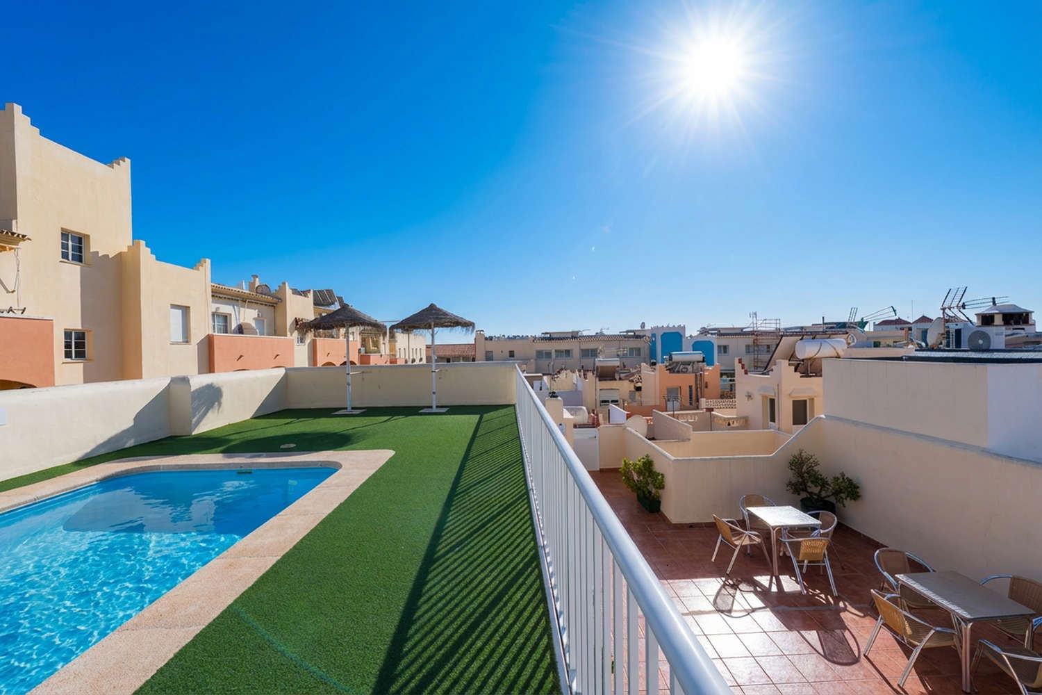 On the upper floor you can enjoy the community pool with sun beds for a relaxing sunbath and to take a refreshing swim.