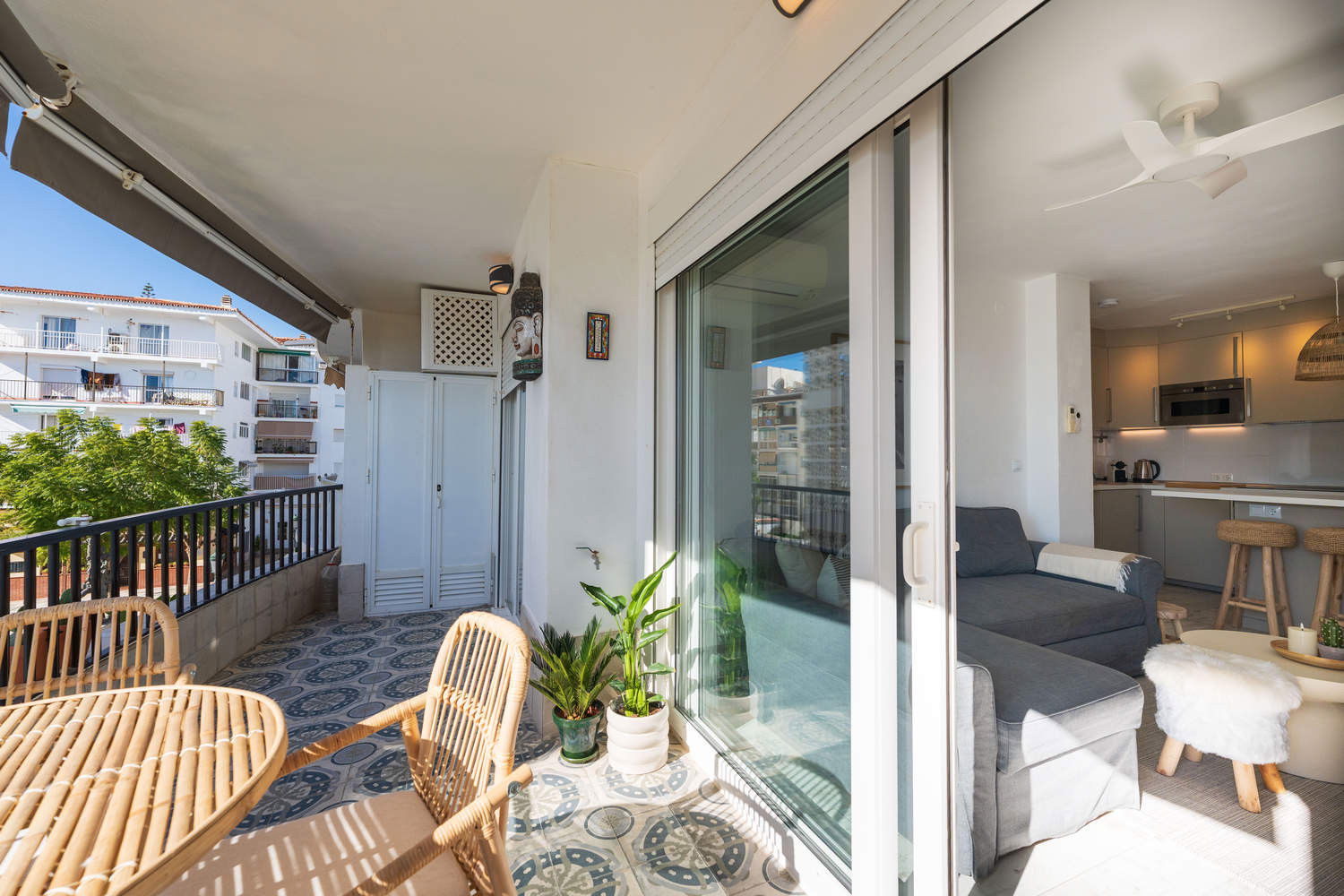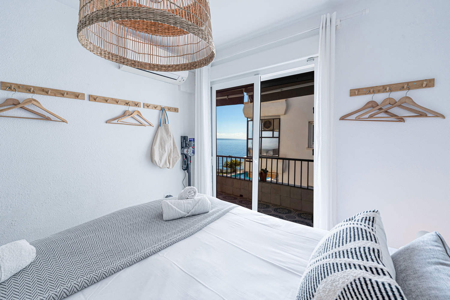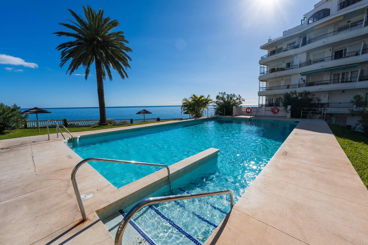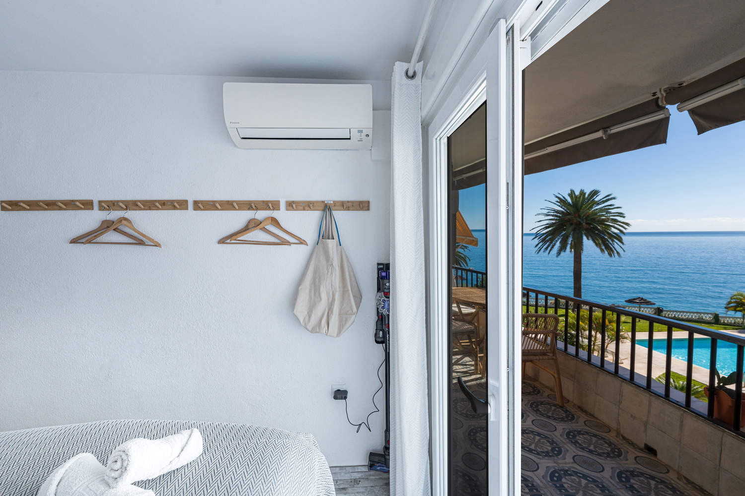 Enjoy a wonderful, newly renovated flat in Nerja with spectacular views of the sea and the pool, located in the exclusive Conjunto Acapulco Playa complex. Perfect accommodation for two people, just a few metres from El Salón Beach and the Balcón de Europa.