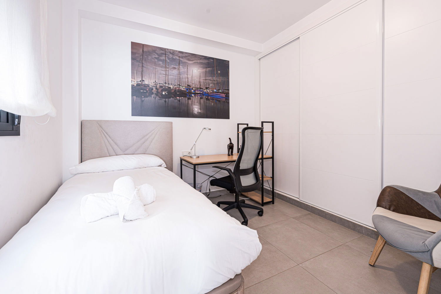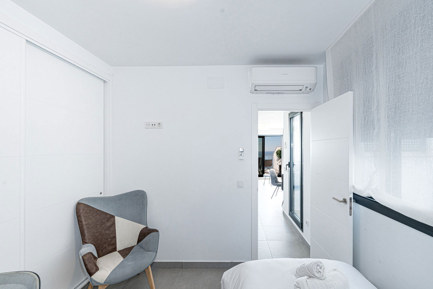 From the ground floor you will be greeted by a bright living room that opens onto the spacious terrace with panoramic views that will take your breath away. Also on this floor, you will find a bedroom with a comfortable single bed and a practical desk, ideal for those moments when you need a quiet space to work or relax.