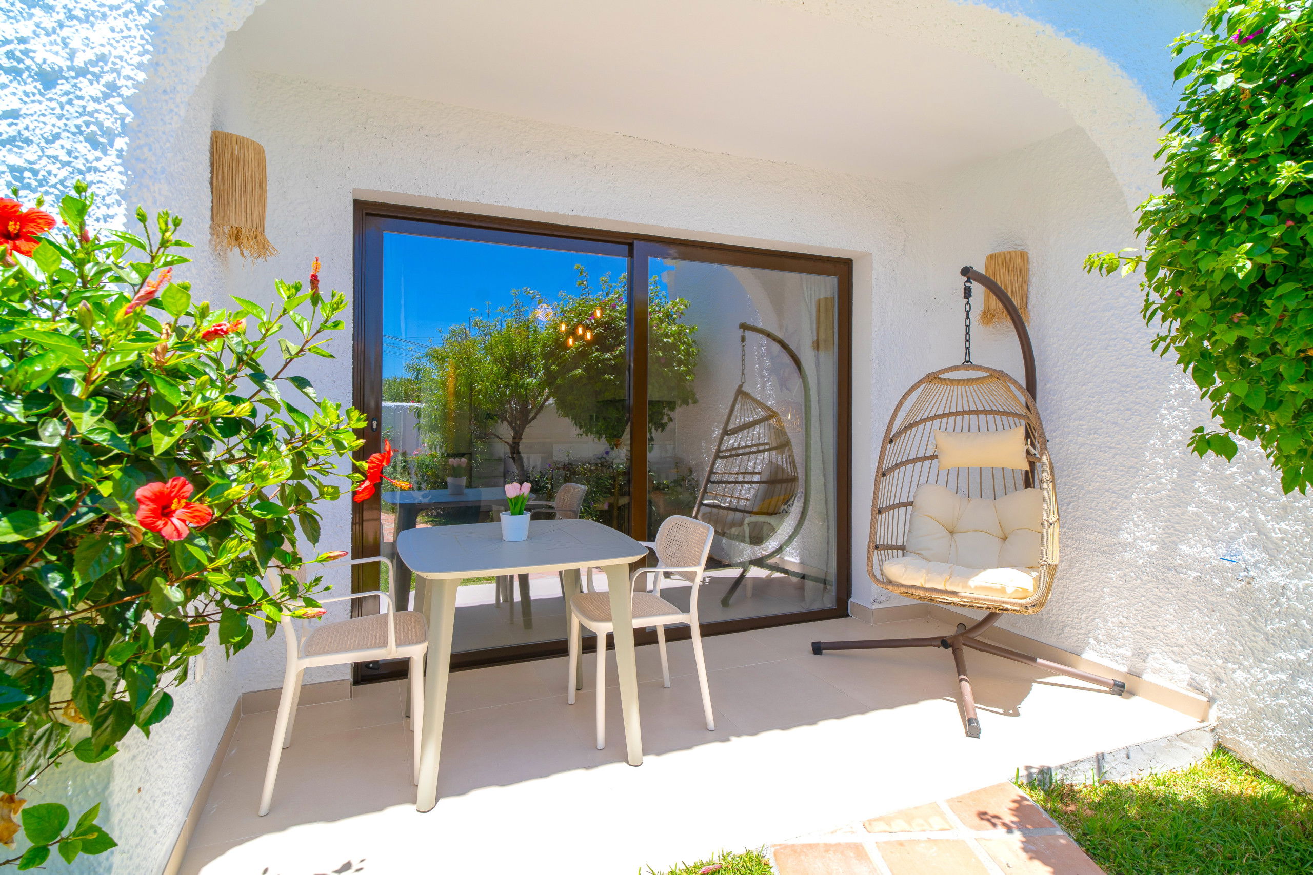 The heart of this flat is its stunning 40 square metre private garden, facing southwest. Here, you can soak up the sun on comfortable sun loungers, relax on a hanging lounge chair or enjoy alfresco meals and drinks at an elegant outdoor table. This space is perfect for relaxing and enjoying the Mediterranean climate in total privacy.