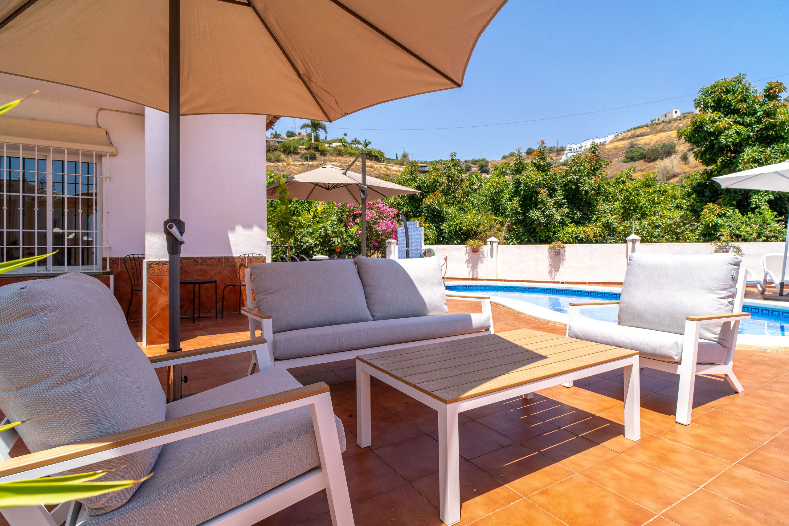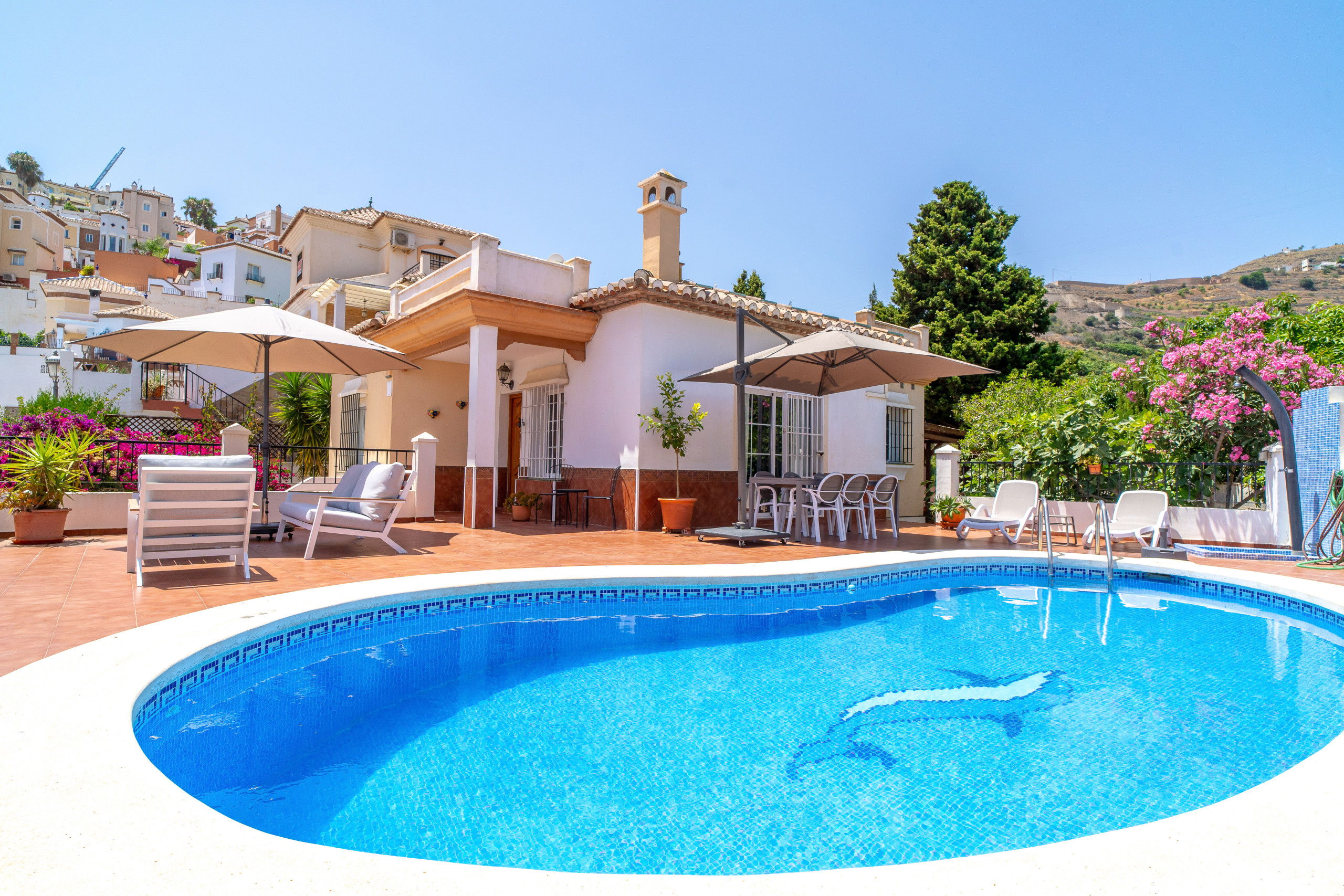 Imagine walking down to the peaceful Vilches beach in just 5 minutes (500 m) to witness a spectacular sunrise; in this area, the Mediterranean light is simply on another level, painting the horizon with unique colours every evening.Single-level Holiday Home designed for FamiliesDistributed over a single floor, Villa Calidum offers practical and comfortable living throughout the interior. Its layout enhances ease of movement and makes it especially convenient for families with children. The villa features a master bedroom with a king-size bed and en-suite bathroom, a second bedroom with two single beds, and a third with a double bed. The separate kitchen is fully equipped with a dishwasher and washing machine, ideal for long-term stays where convenience is a priority.Private Swimming Pool and Premium Outdoor LivingThe villa opens up to the landscape through a bright living room that connects directly to the terrace and private swimming pool. The outdoor area has been recently upgraded with premium sun loungers and parasols, creating a luxury solarium experience with beautiful sea and mountain views. On the side, a wooded garden area provides a cool retreat with a stone barbecue and outdoor dining table, perfect for shaded lunches and relaxed evenings under the stars.Why choose Villa Calidum for your Holidays in Nerja✔ Privileged Views: Panoramic sea views and a perfect orientation to enjoy both sunrises and sunsets.